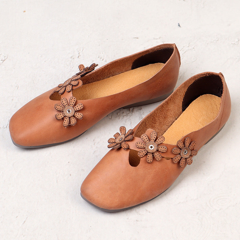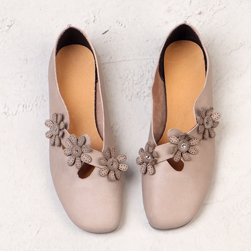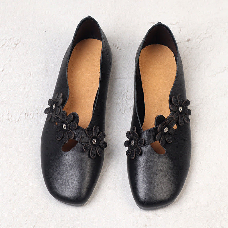 Chic Women's Soft Leather Flats – Artistic Floral Decorative Shoes