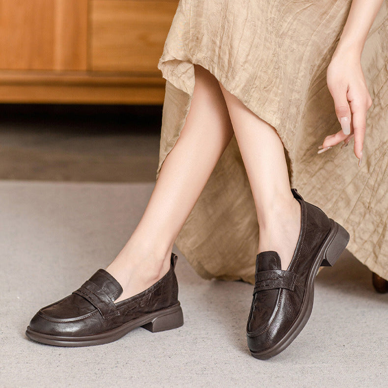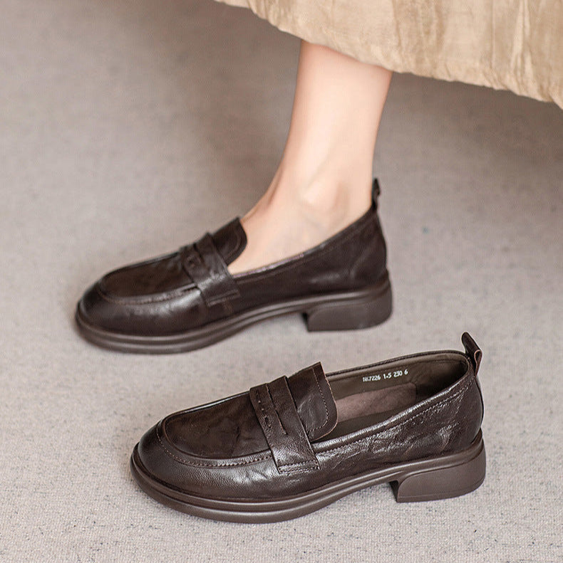 Classic Women's Loafers – Ruched Leather Sole Casual Shoes