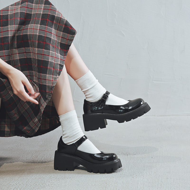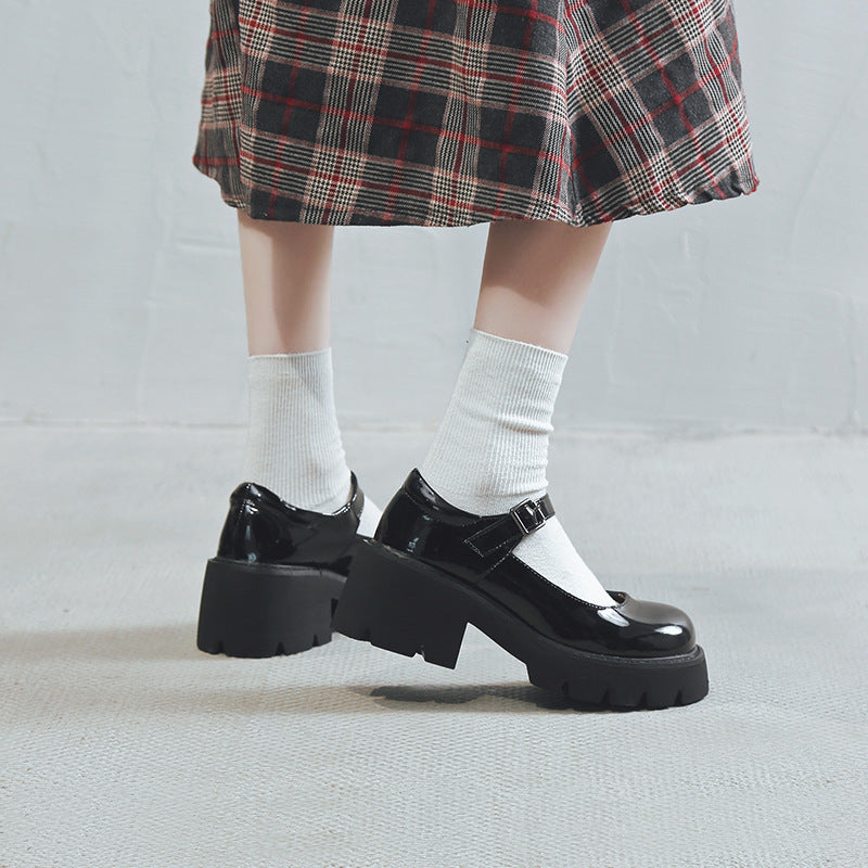 Step into daring sophistication with these Classic Women's Patent Leather Chunky High Mary Jane Heels. Their glossy patent finish and bold chunky heel command attention, while the iconic Mary Jane strap adds a rebellious twist to the classic college look. Elevate your style with confident elegance that turns every hallway into your runway.