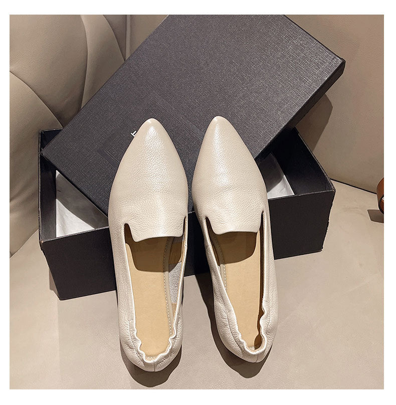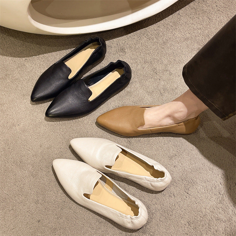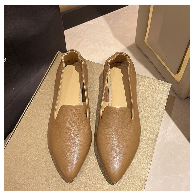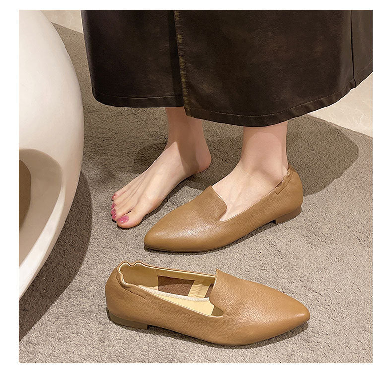Comfortable Women's Leather Slip-On Flats – Pointed-Toe Everyday Shoes