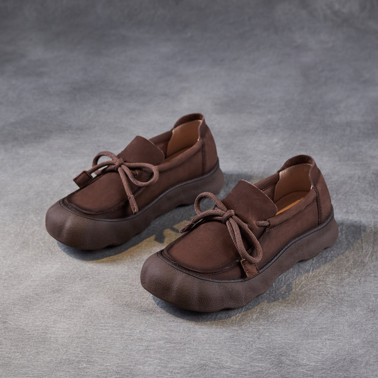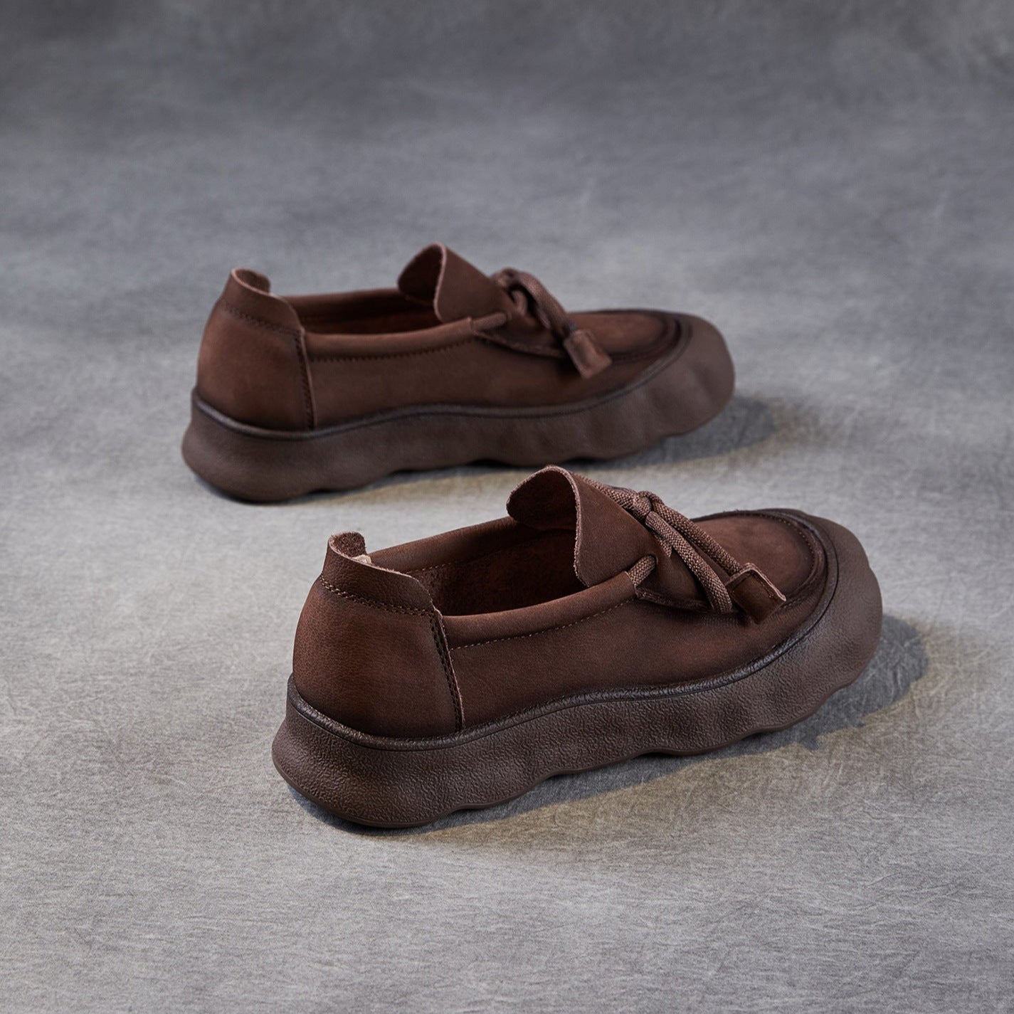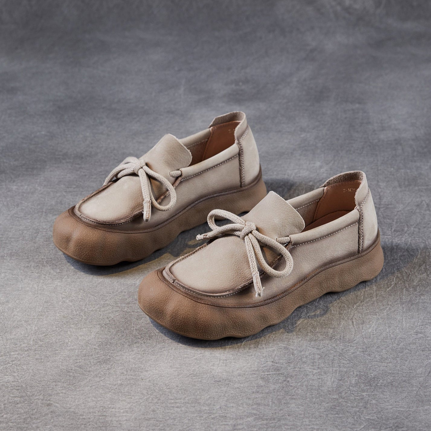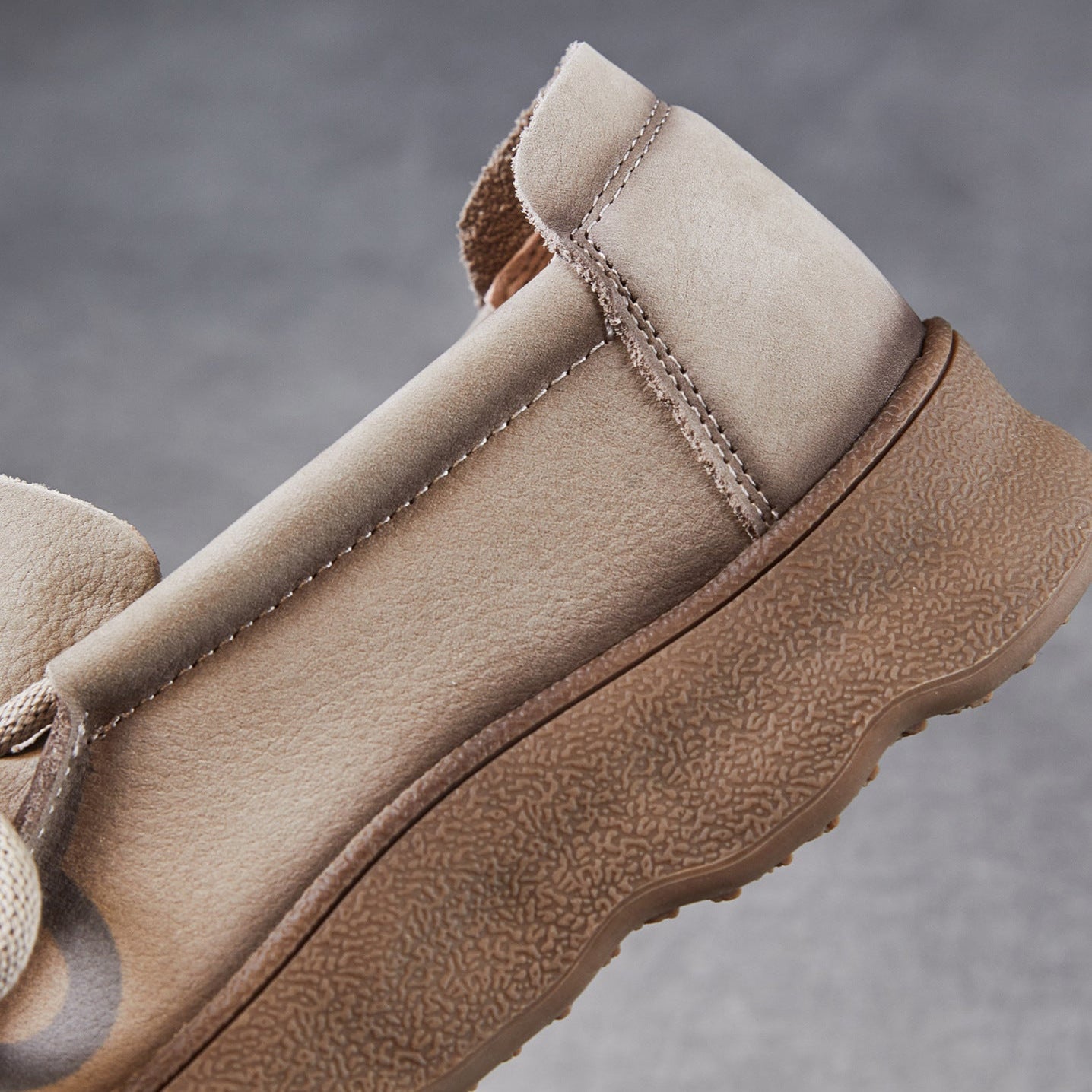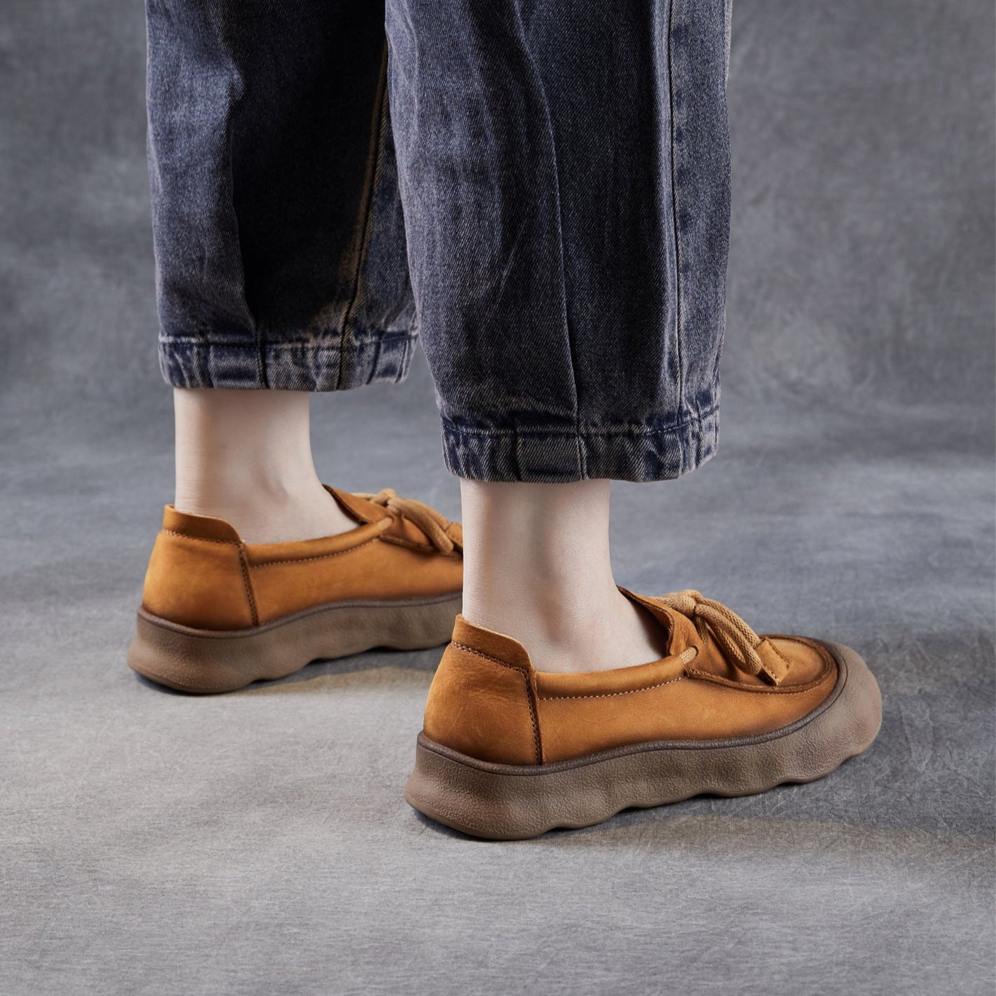 Comfortable Women's Soft Leather Round-Toe Lace-Up Walking Shoes