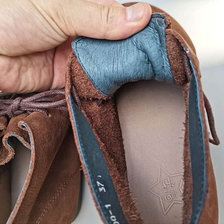 These vintage-inspired ankle boots feature soft first-layer cowhide leather and a breathable unlined design for ultimate comfort. The flat beef tendon sole is lightweight, flexible, and perfect for all-day wear. With a lace-up front and side zipper, they combine classic forest-style charm with practical functionality. The roomy, relaxed fit makes them ideal for both narrow and wide feet — a perfect choice for effortless, natural style.