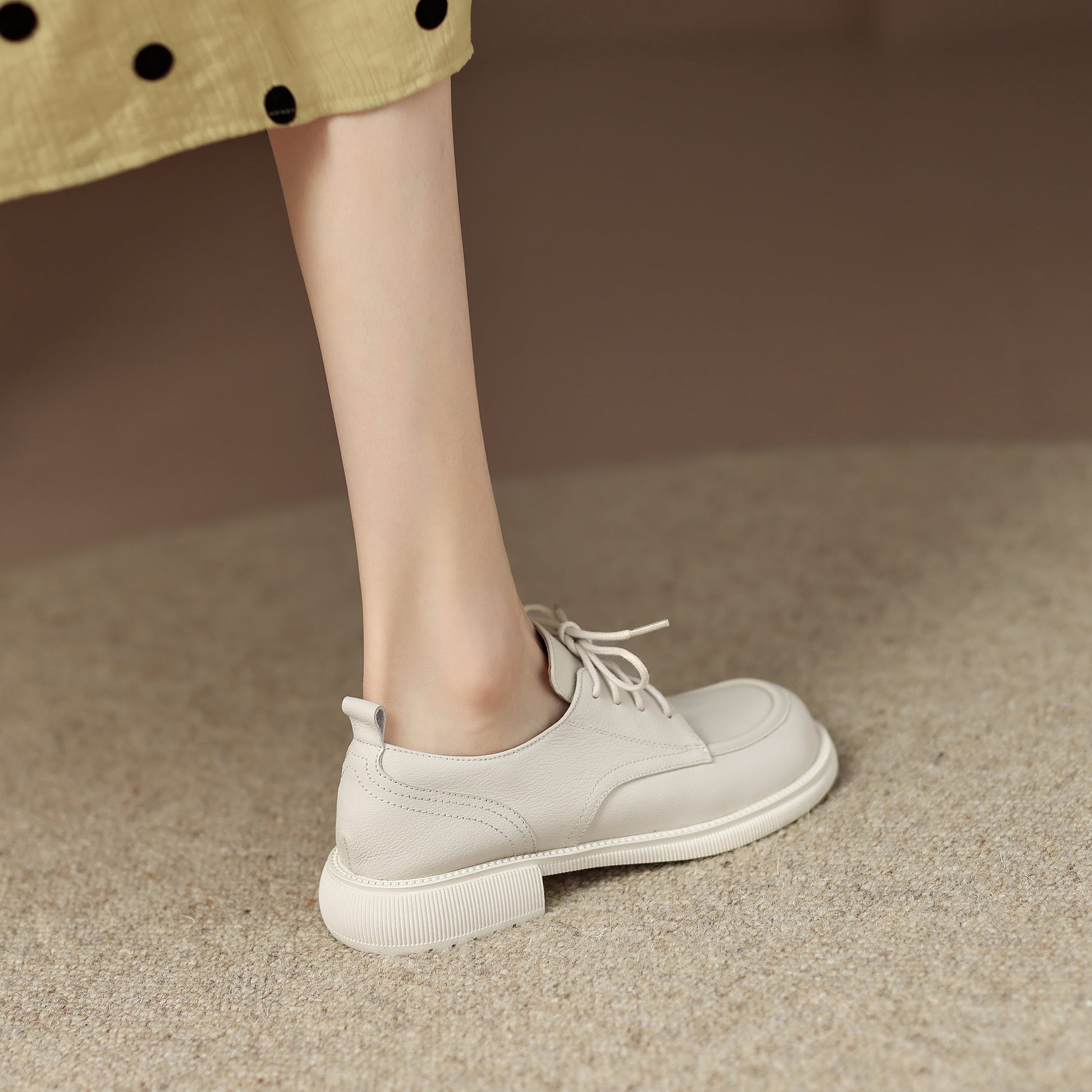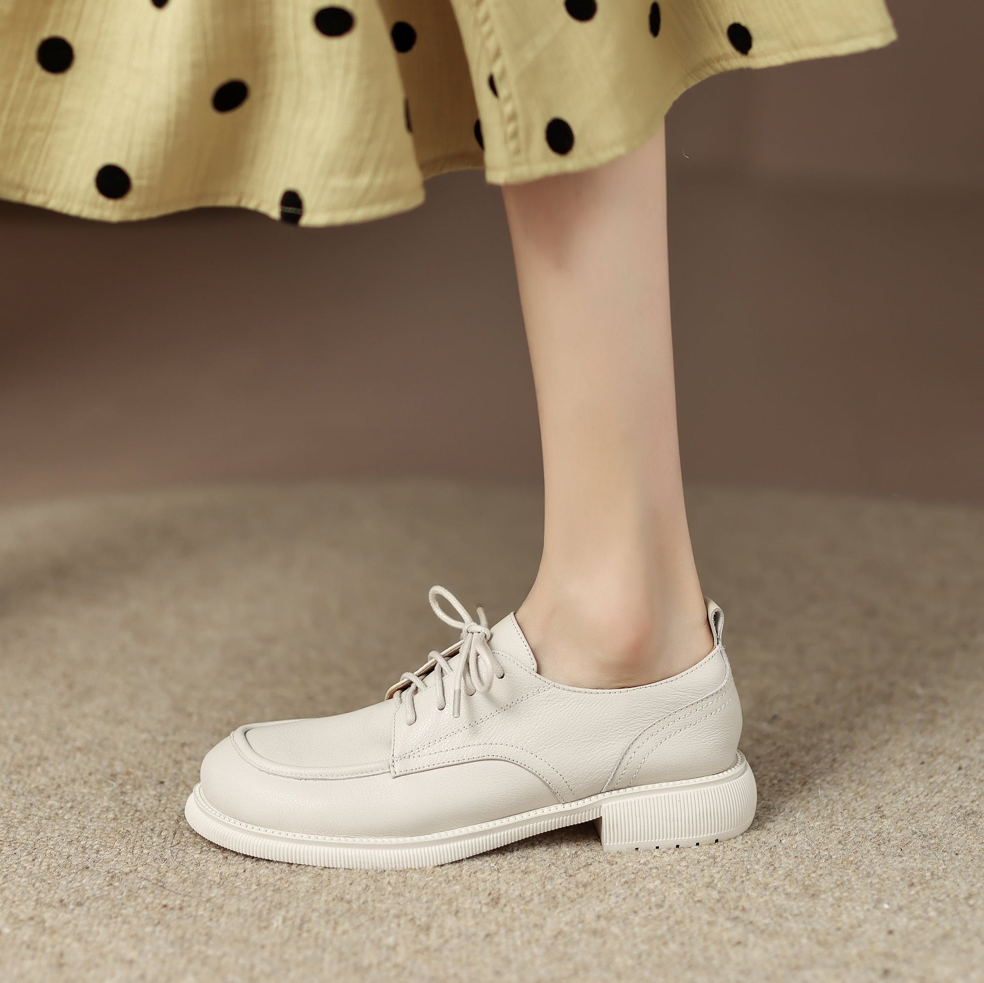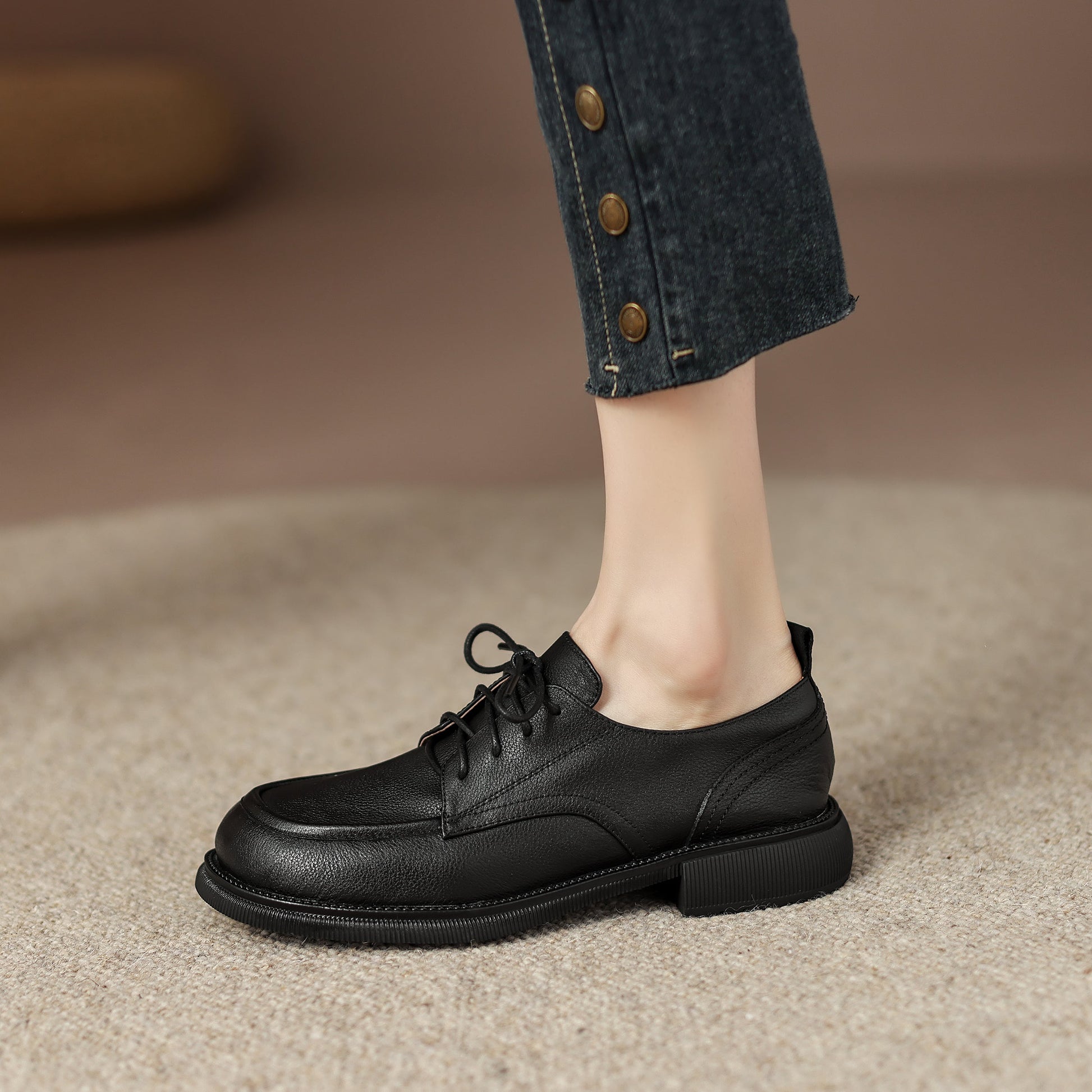 Handcrafted Women's Square-Toe Leather Lace-Up Low Heel – Casual Style
