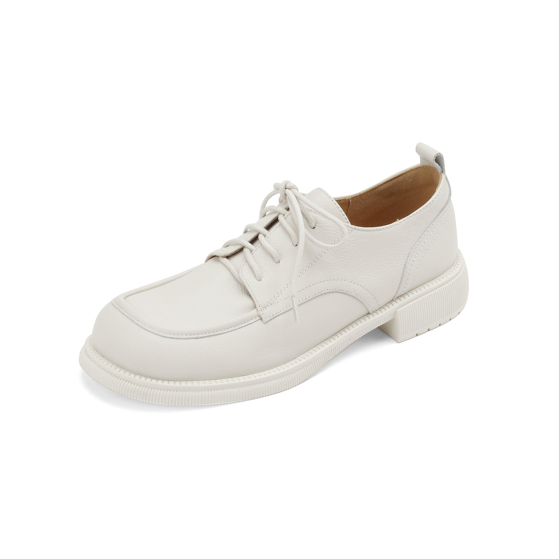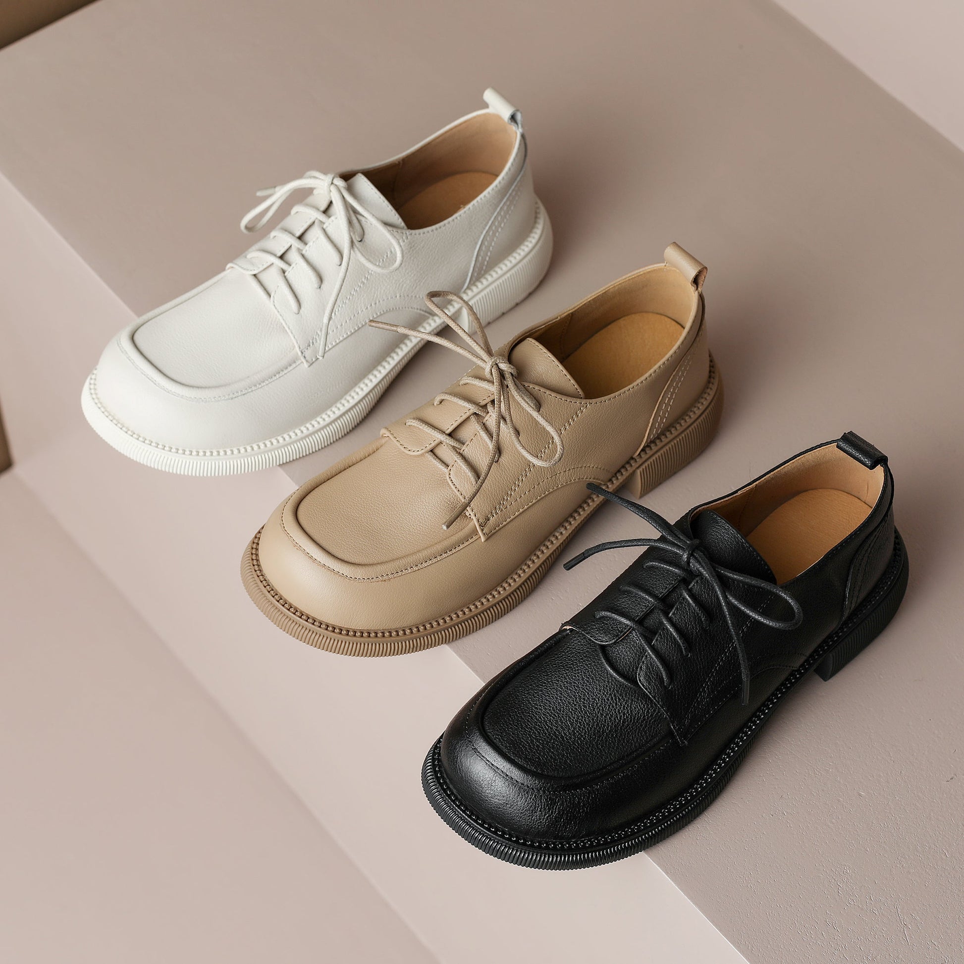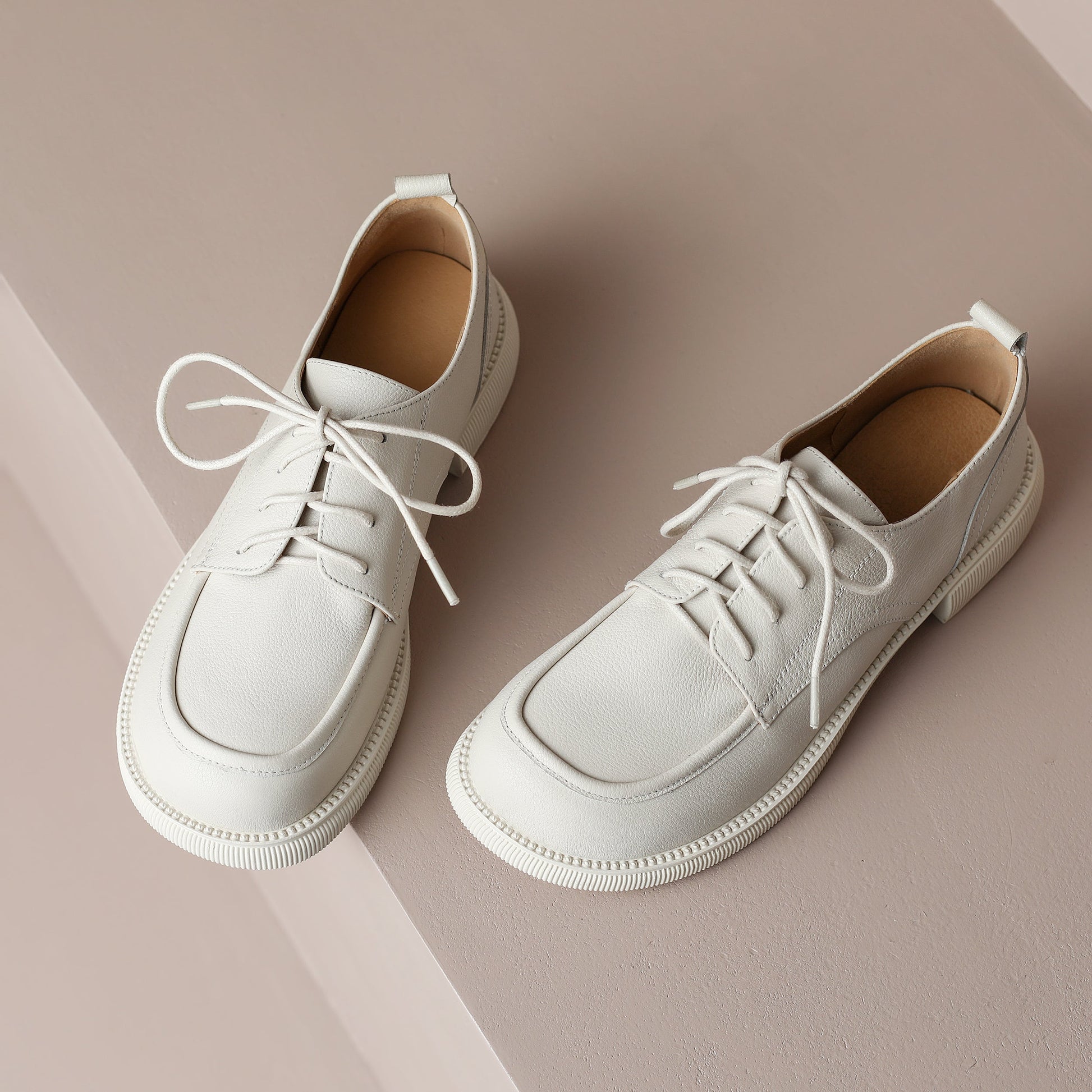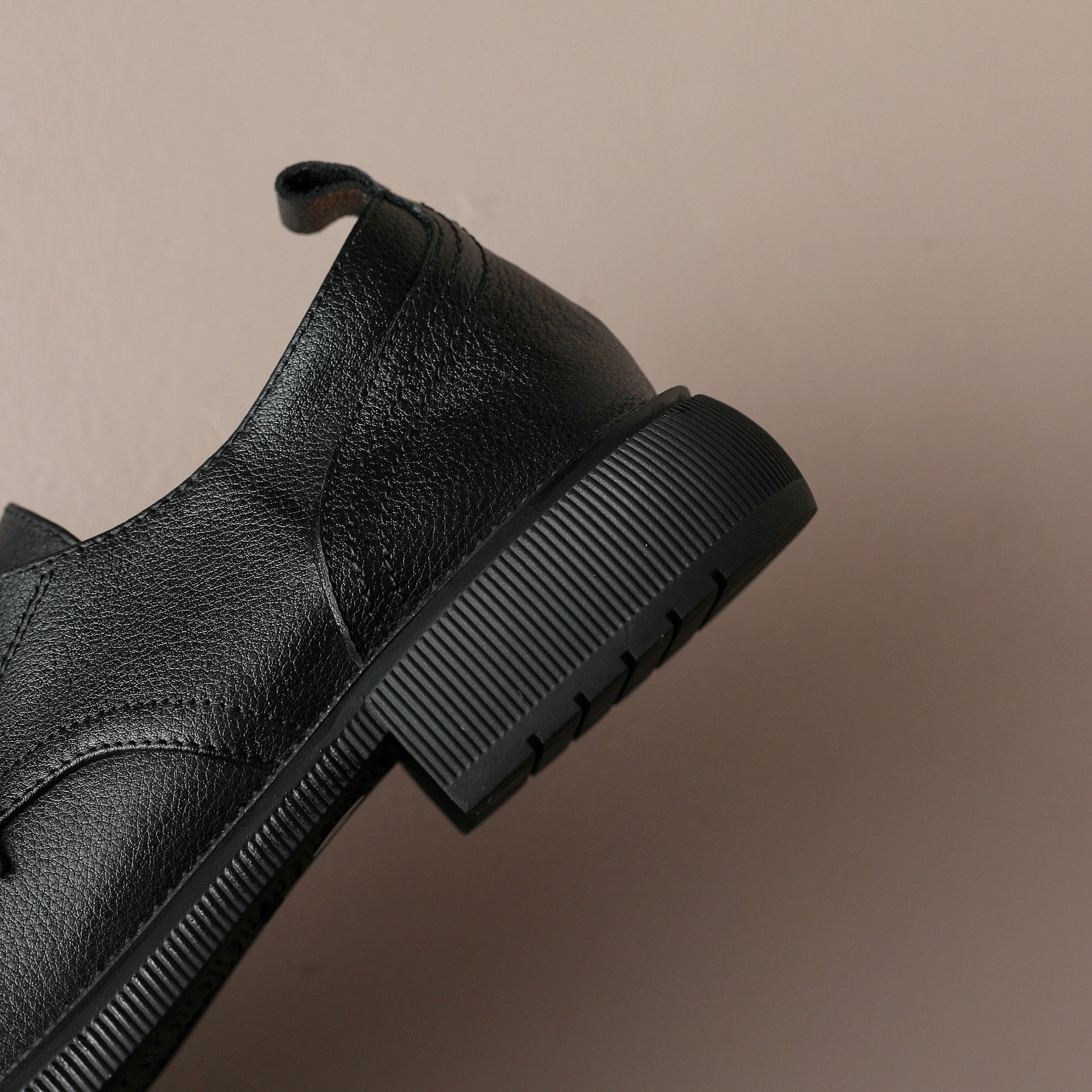 Handcrafted Women's Square-Toe Leather Lace-Up Low Heel – Casual Style