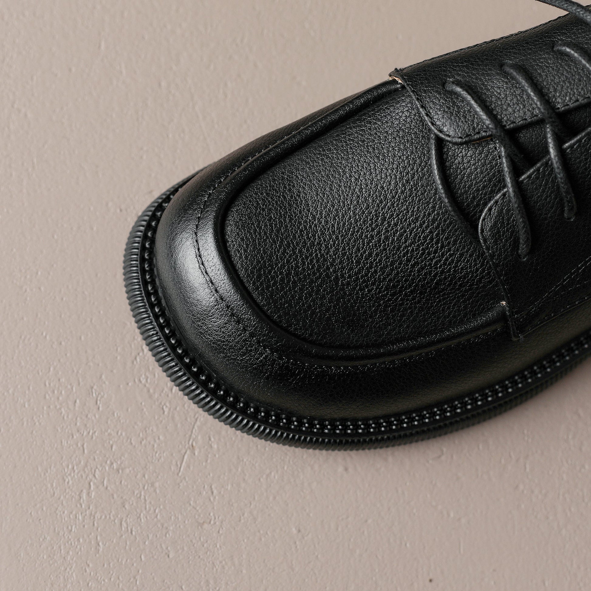 Break the mold with these Handcrafted Women’s Square-Toe Leather Lace-Up shoes. Featuring a low heel and bold square-toe design, they combine edgy style with everyday comfort. Perfect for those who dare to redefine casual, these leather shoes make a strong statement with every step.
