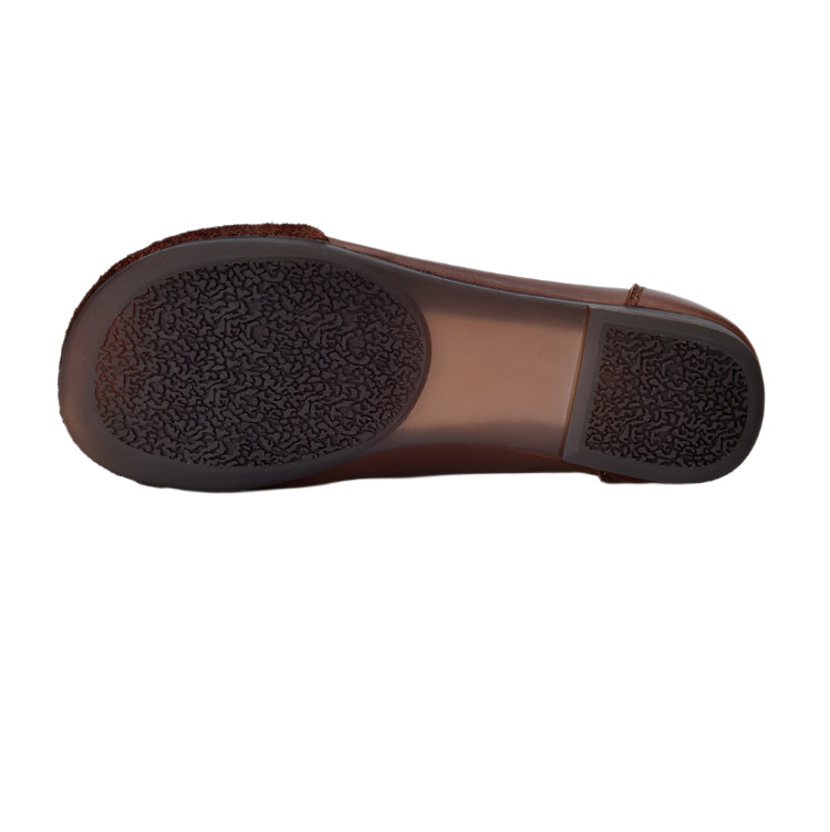 Handmade Leather Vintage Round Toe Patchwork Ballet Flat Shoes Women's Shoes