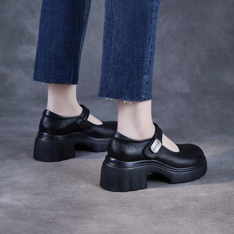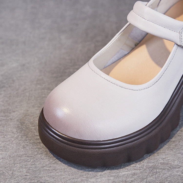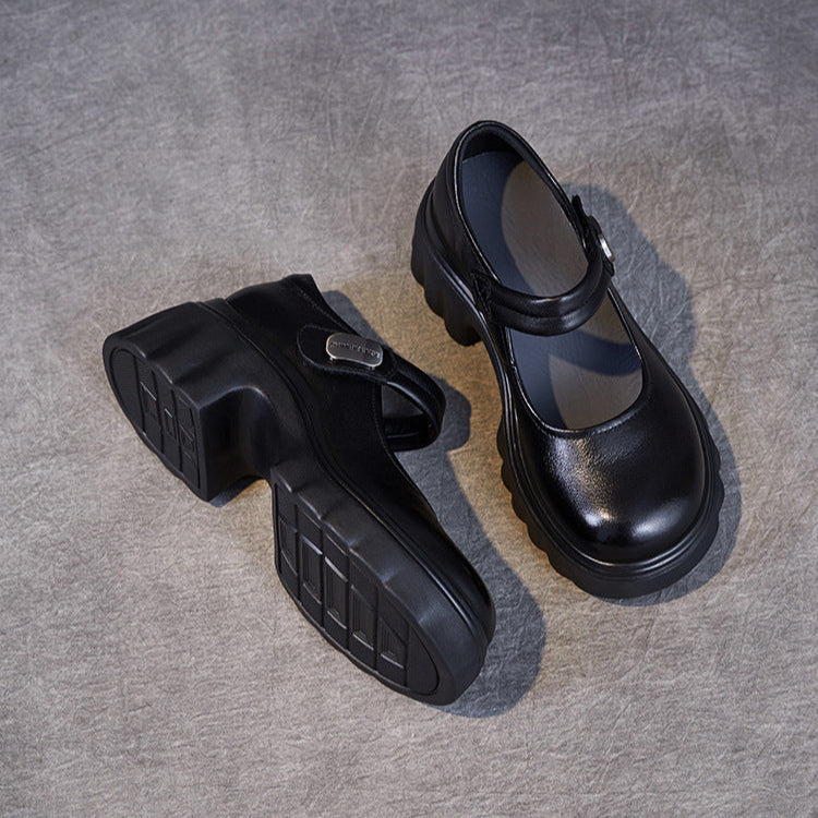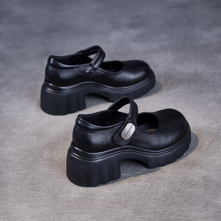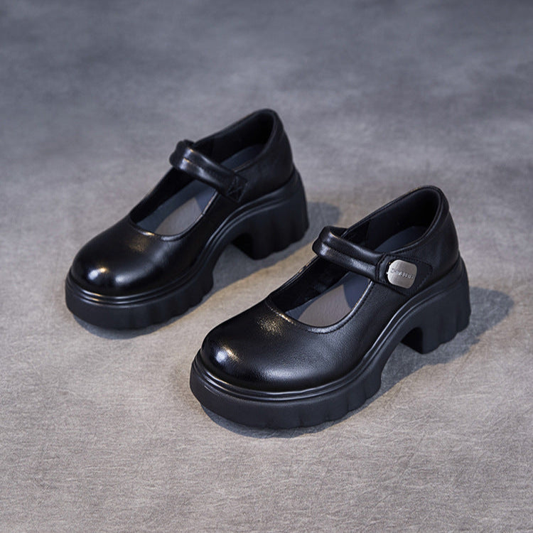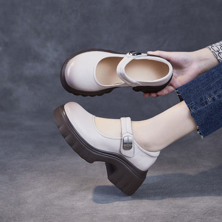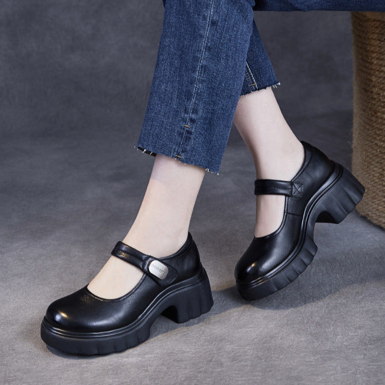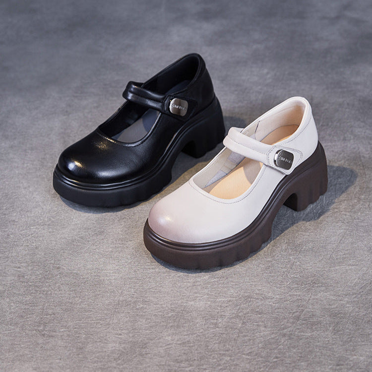 Luxury Leather Mary Janes for Women - Platform Heel with Velcro