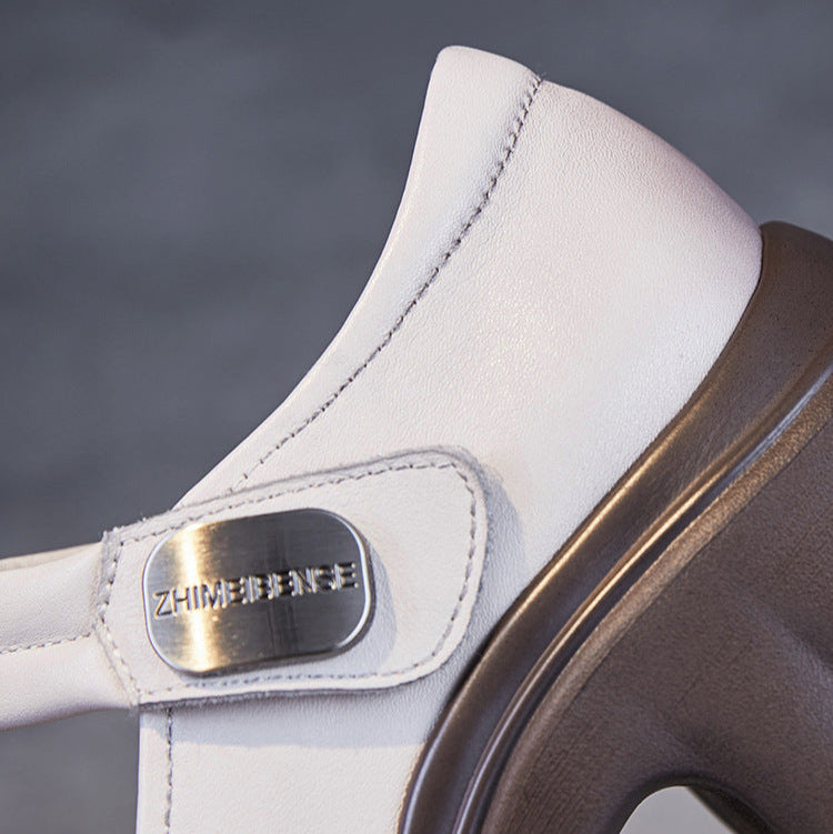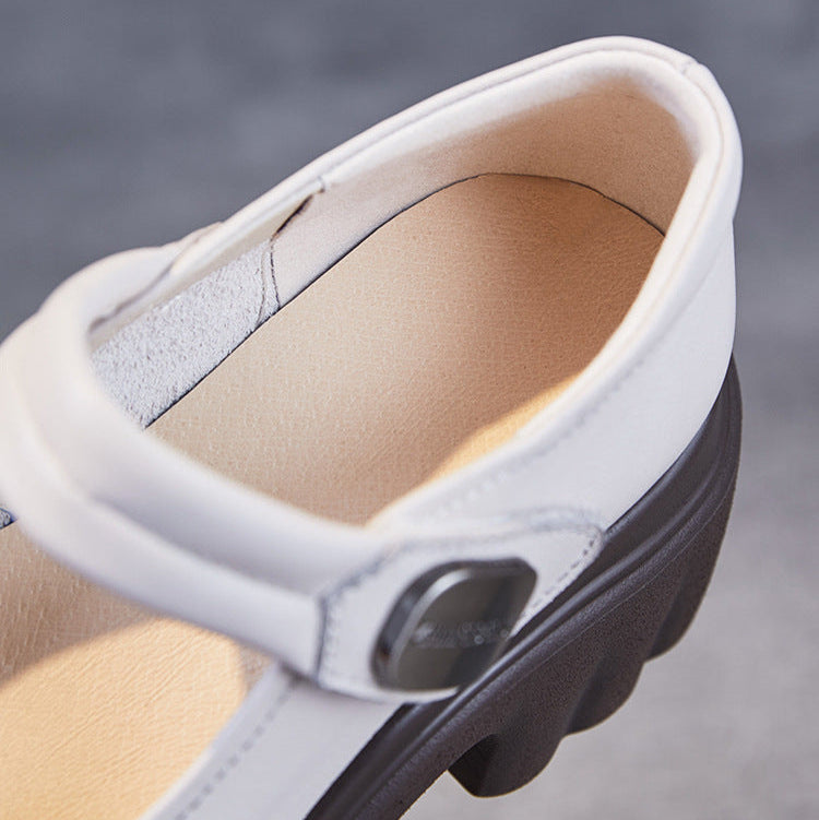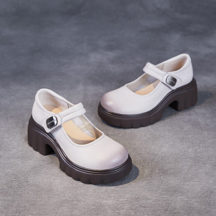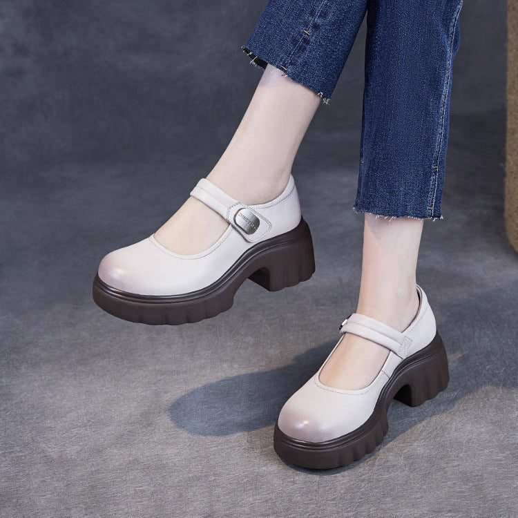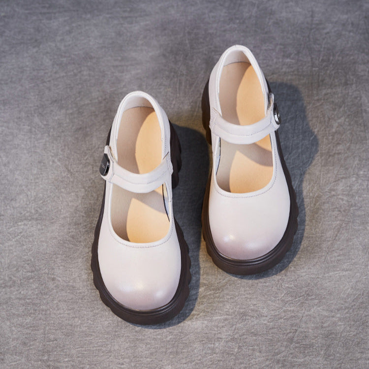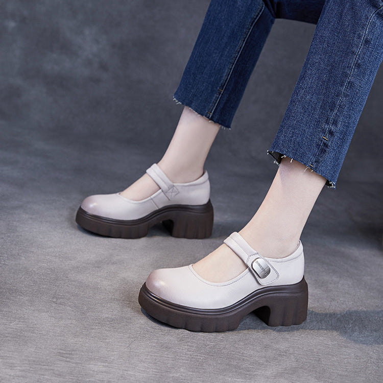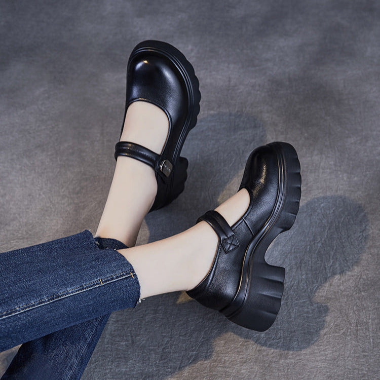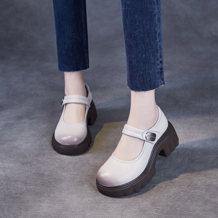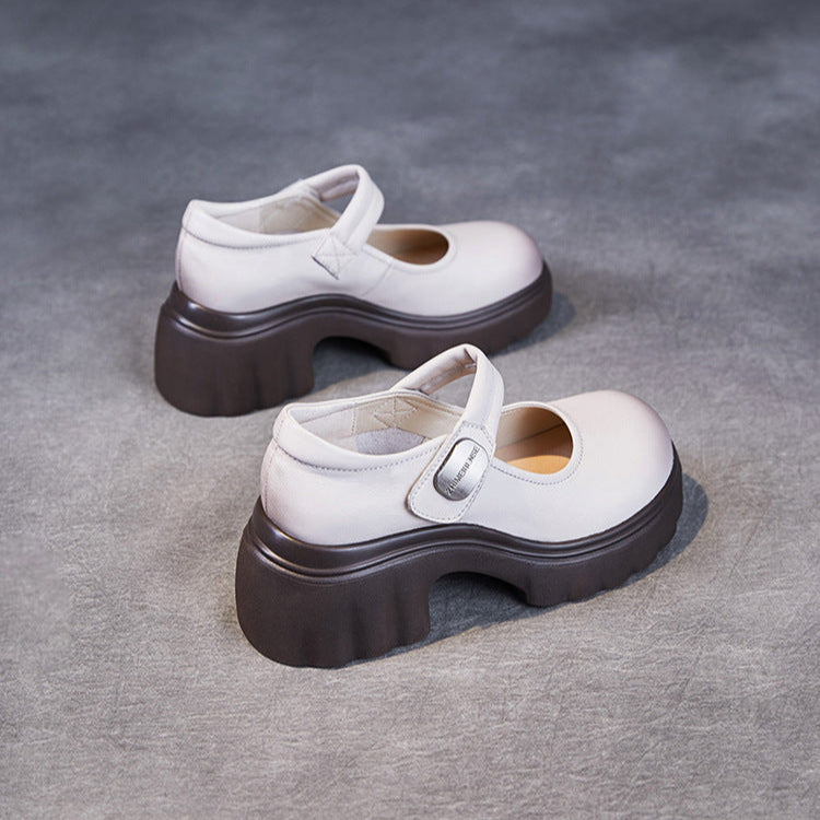 Luxury Leather Mary Janes for Women - Platform Heel with Velcro