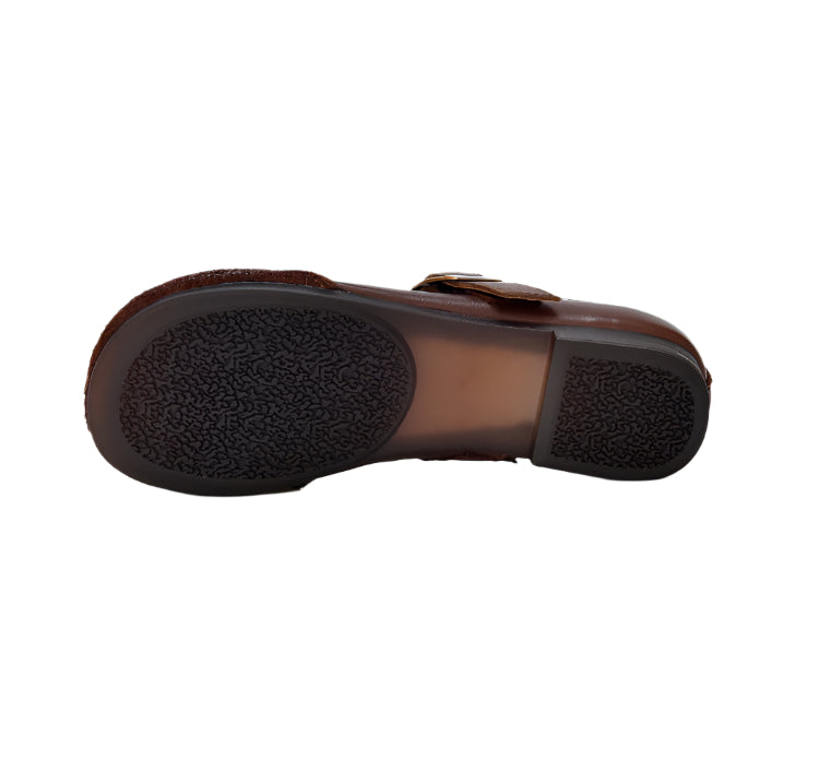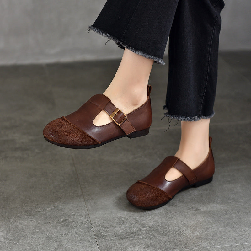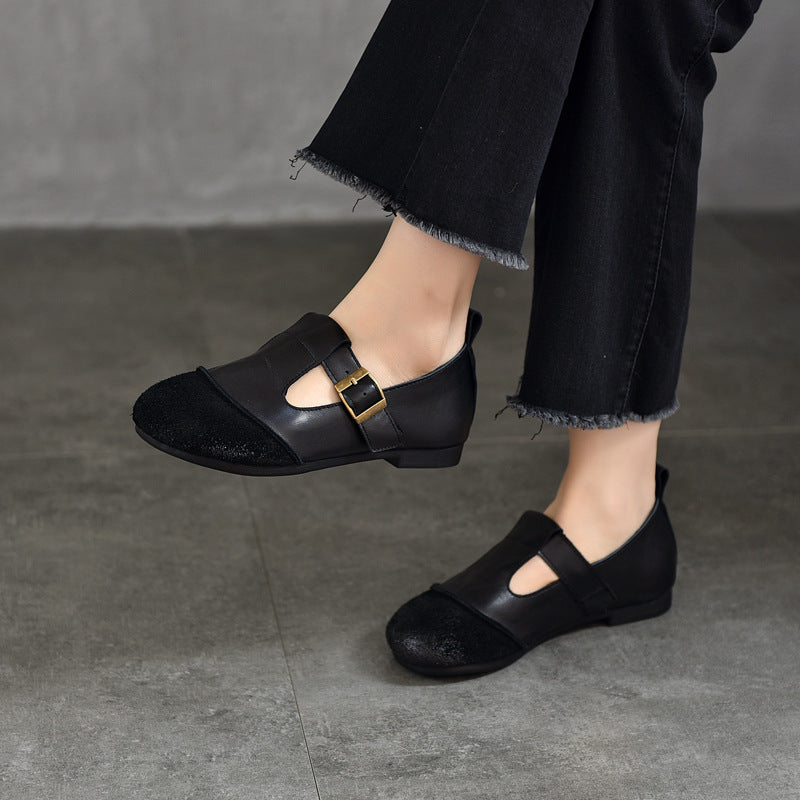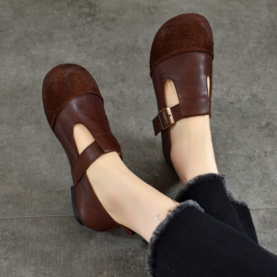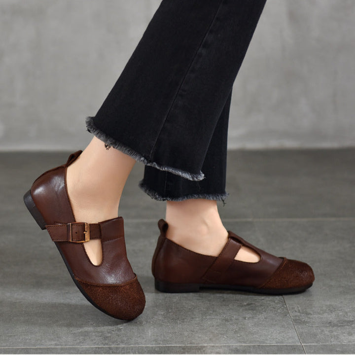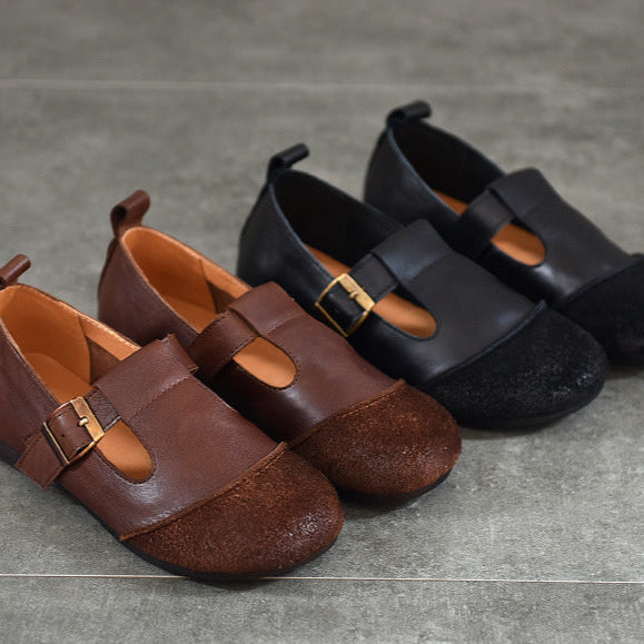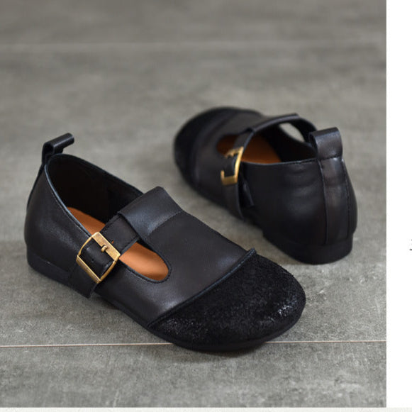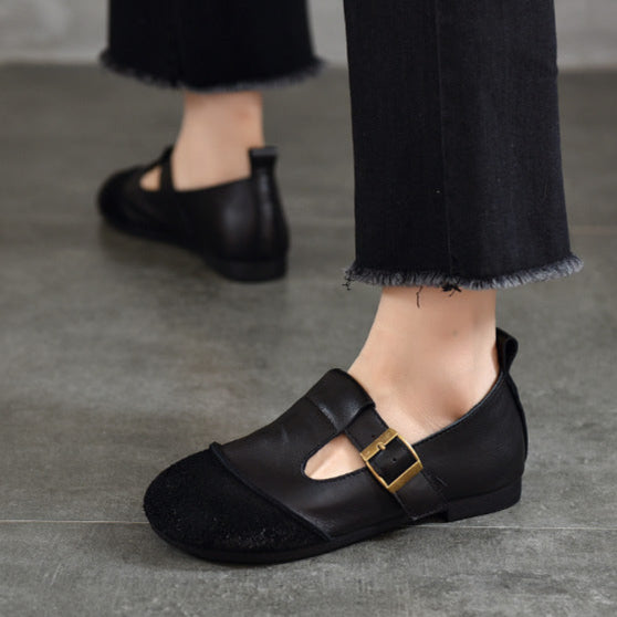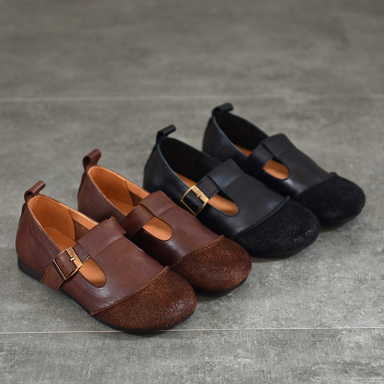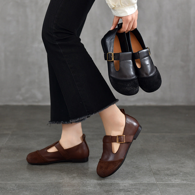 Vintage Handmade Leather Round Toe T Buckle Mary Jane Women's Shoes