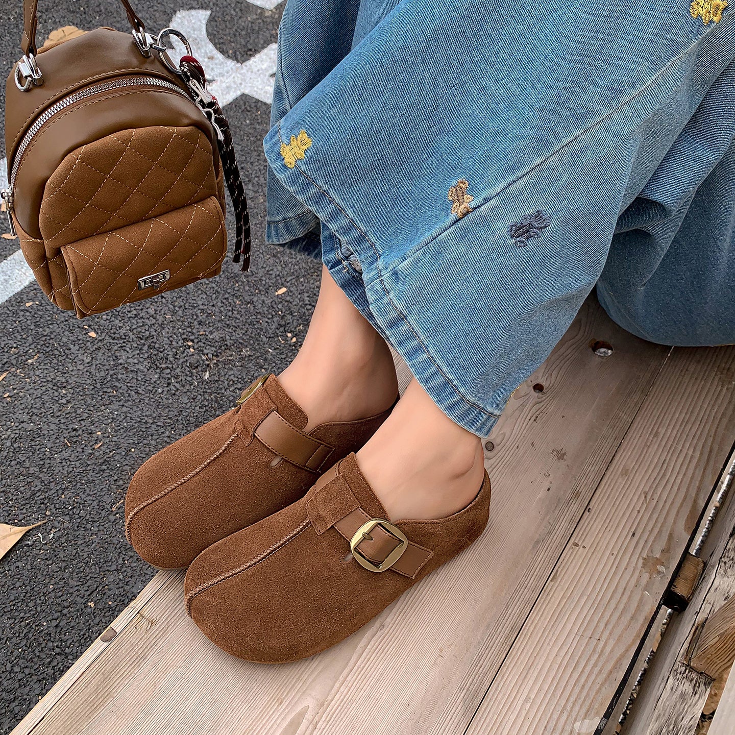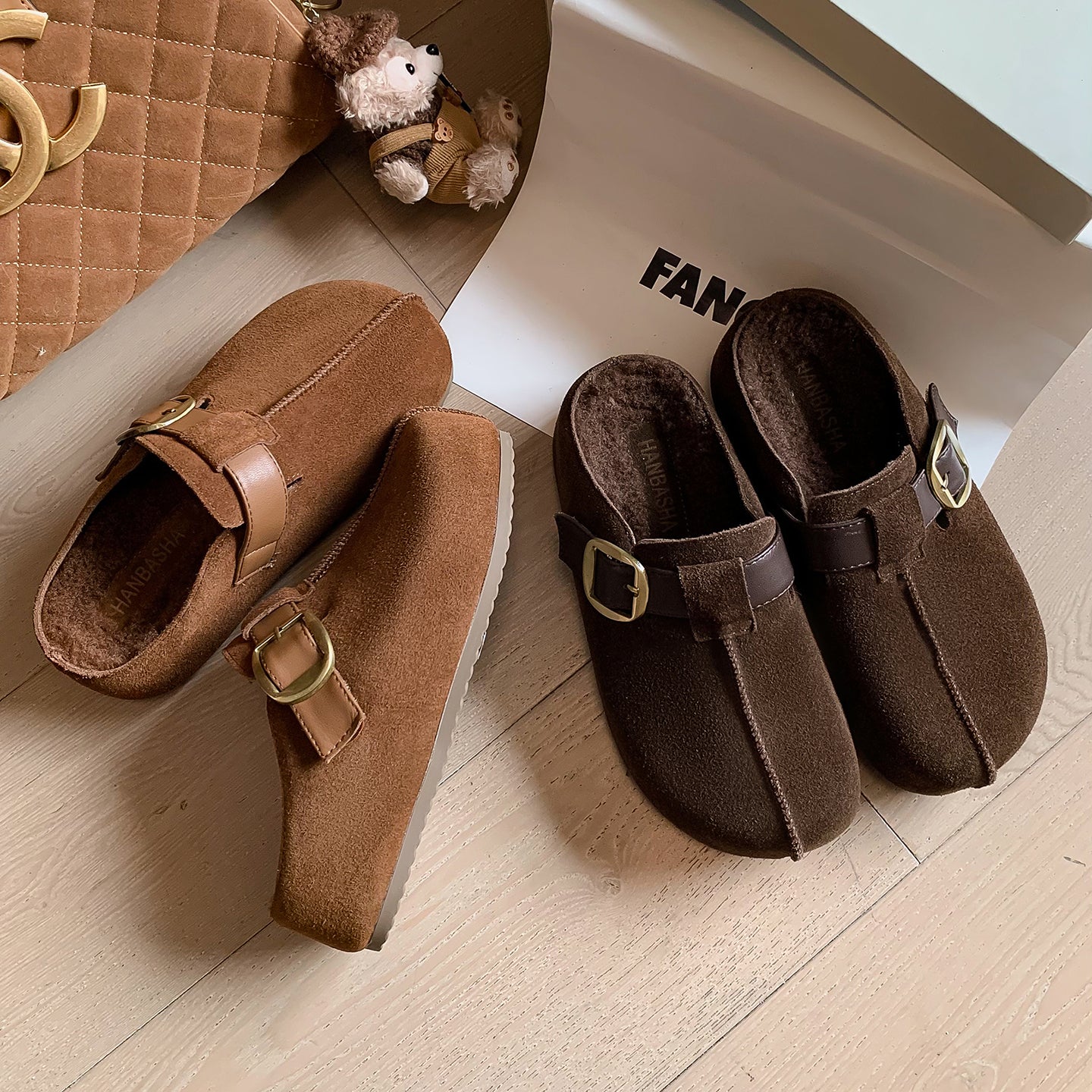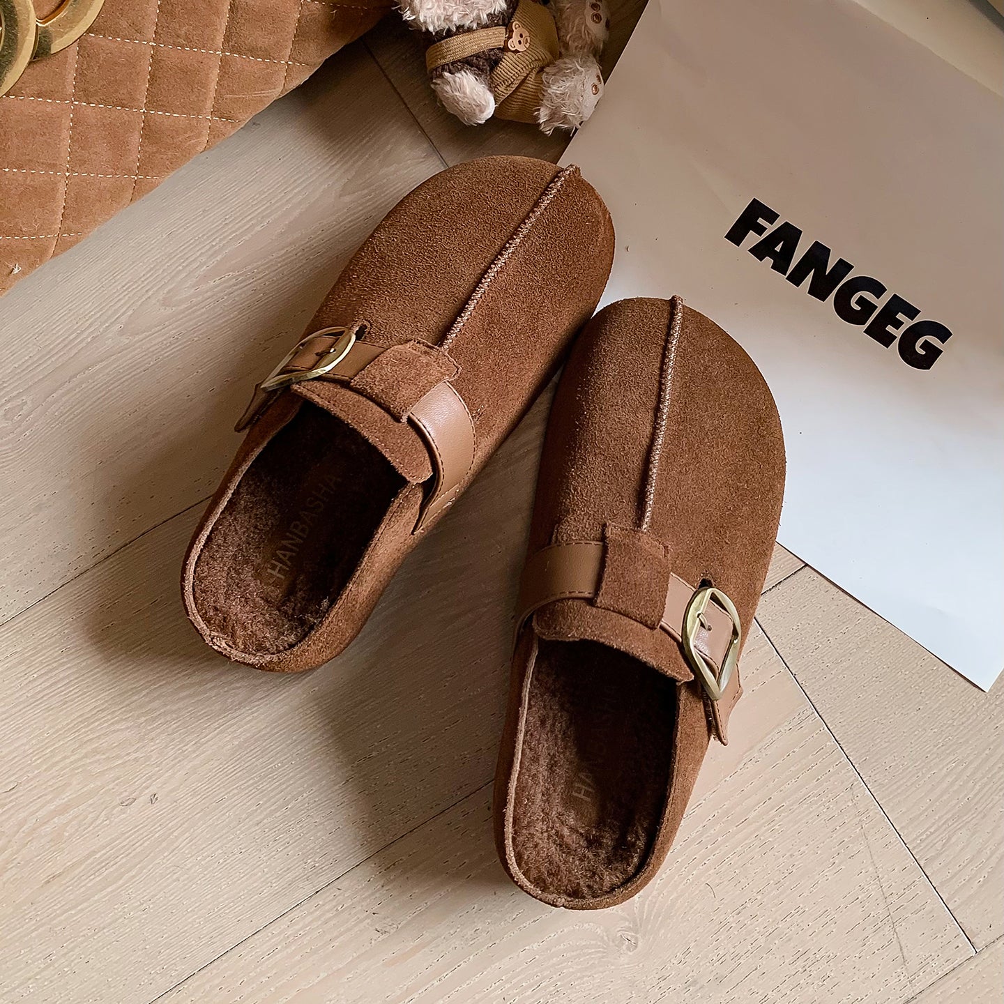 Warm Fur Lined Winter Mules for Women – Platform Slip-On with Buckle