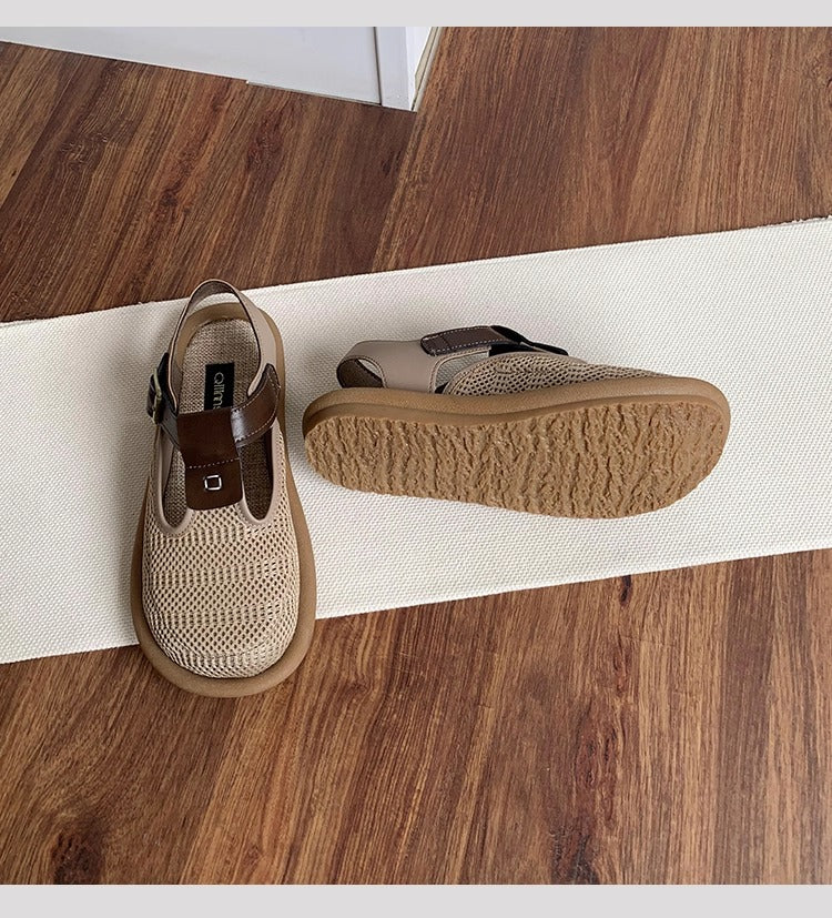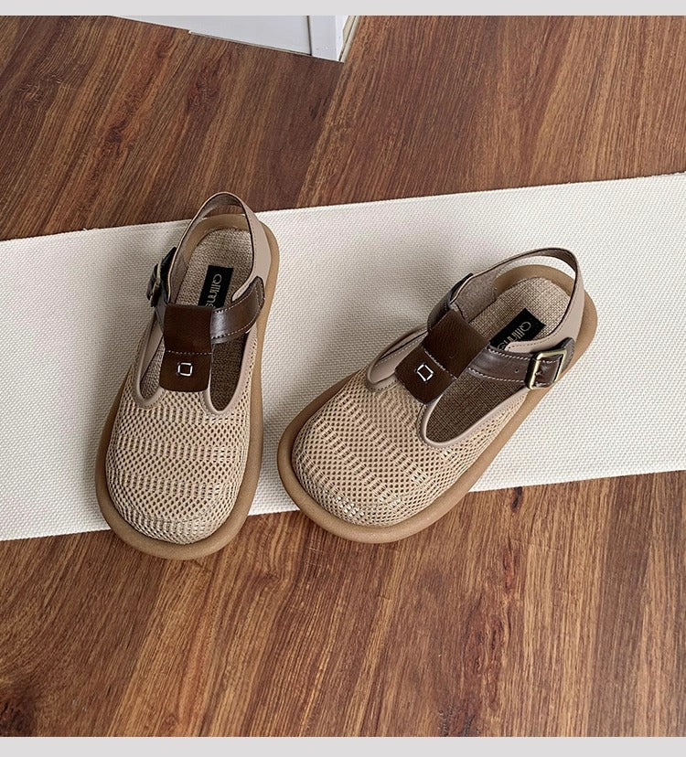 These summer sandals combine breathable mesh and durable PU for a lightweight, airy feel. Featuring a comfortable cloth lining and insole, with a 2.5cm rubber sole for gentle support and grip. The round toe and adjustable buckle closure ensure a secure and comfortable fit. Available in Beige, Khaki, and Black.