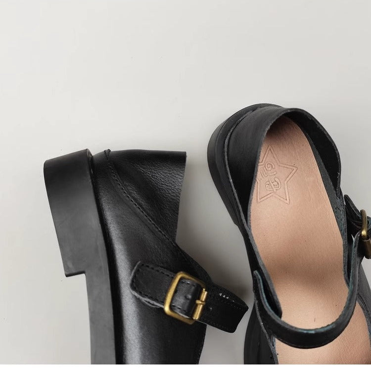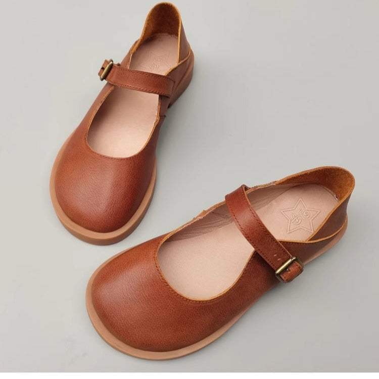 Women's Wide Toe Box Genuine Leather Mary Jane Flats – Buckle, Round Toe Shoes