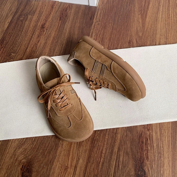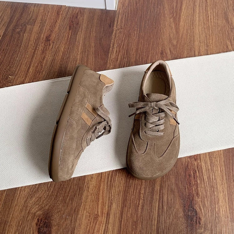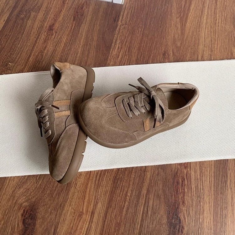Women's Casual Cow Suede Lace-Up Sneakers – Comfortable & Stylish
