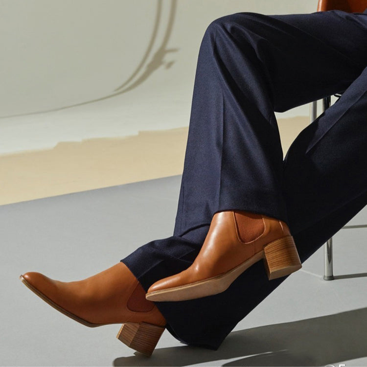 Women's Classic Chelsea Boots – Pointed Toe with Block Heel