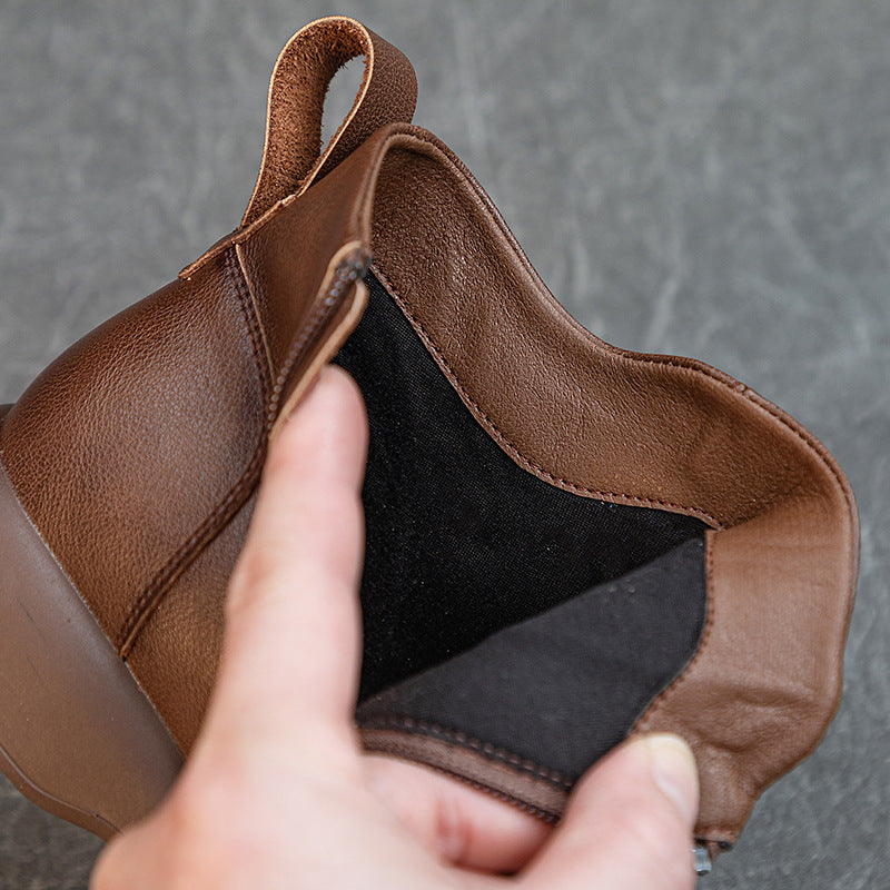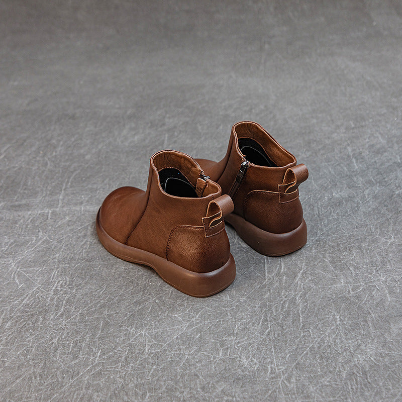 Women's Comfortable Leather Ankle Boots – Low Heel with Side Zipper