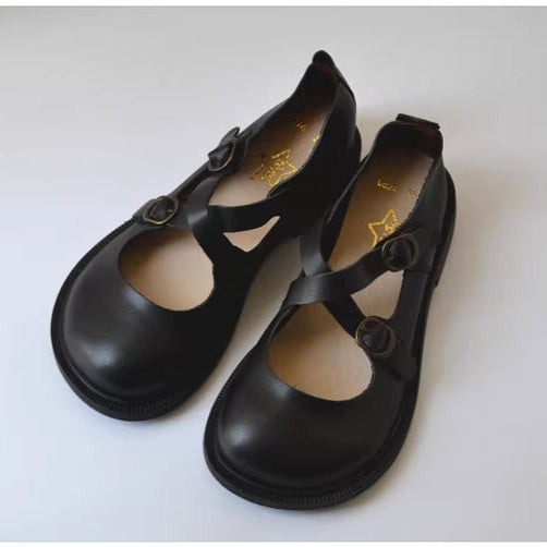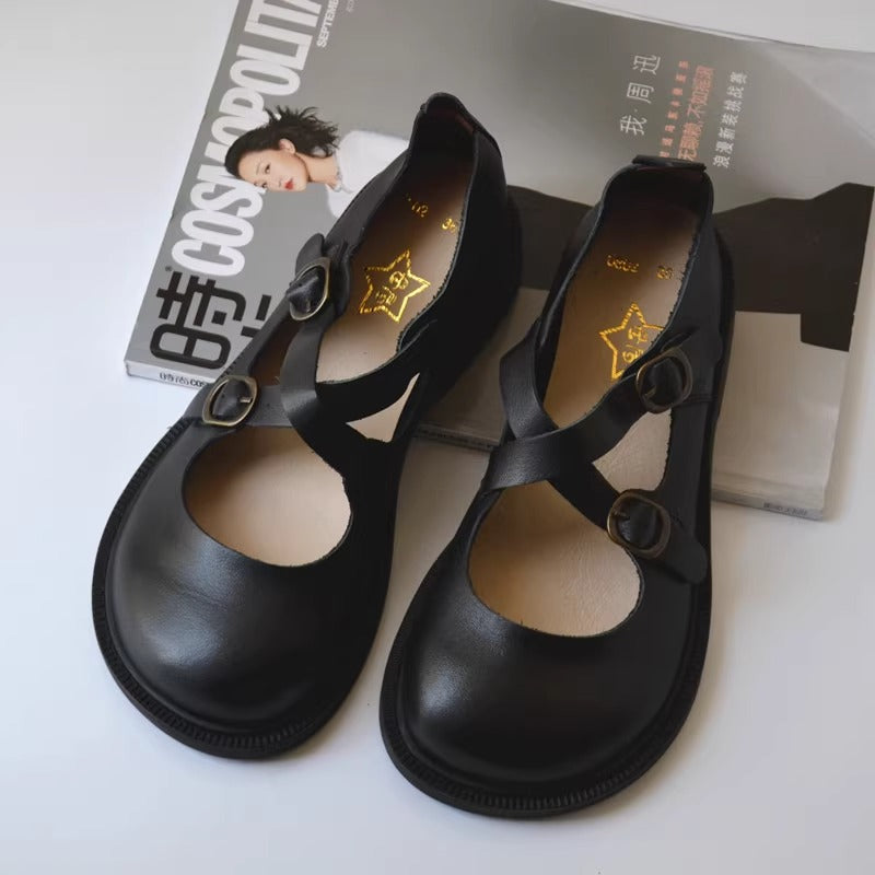 Experience ultimate comfort and style with our Women's Crossover Buckle Wide Toe Box Mary Jane Leather Flat Casual Shoes! Designed with a crossed buckle and a wide toe box, these leather flats provide maximum support and a spacious fit for all-day wear. Elevate your casual wardrobe with these must-have shoes!