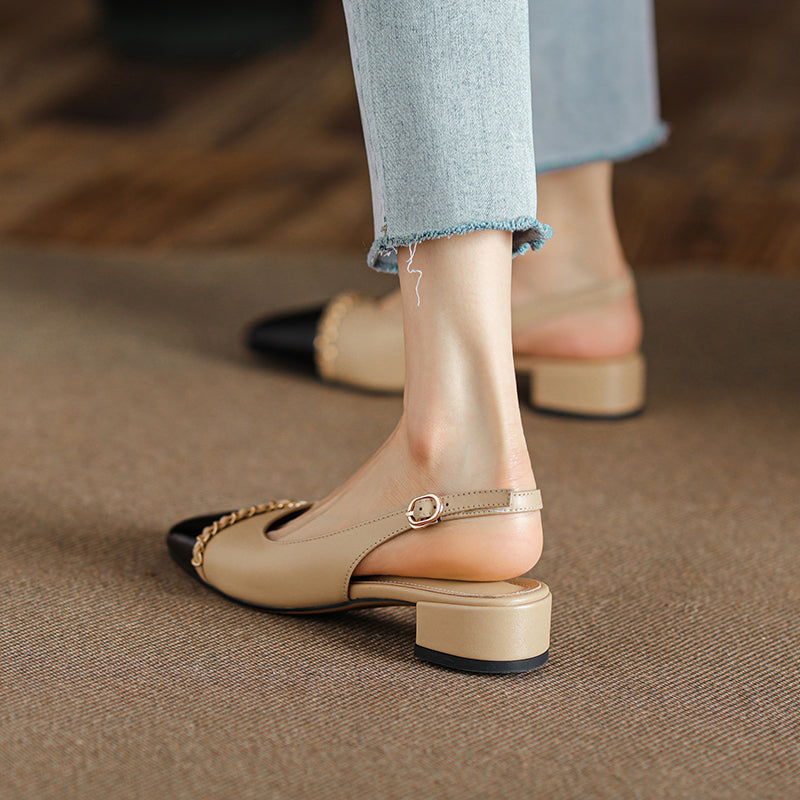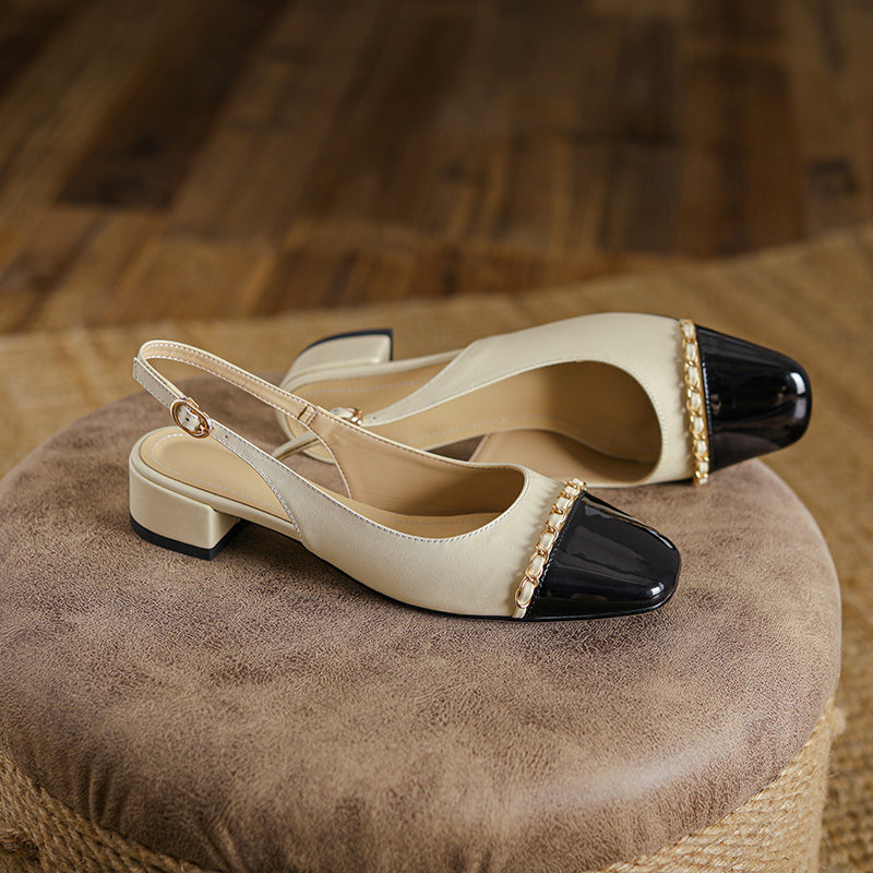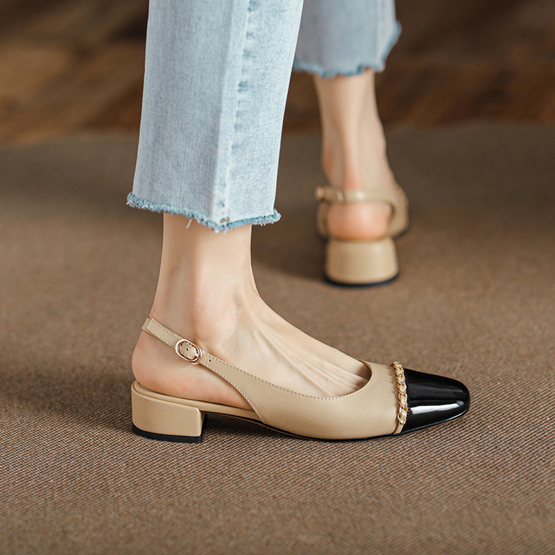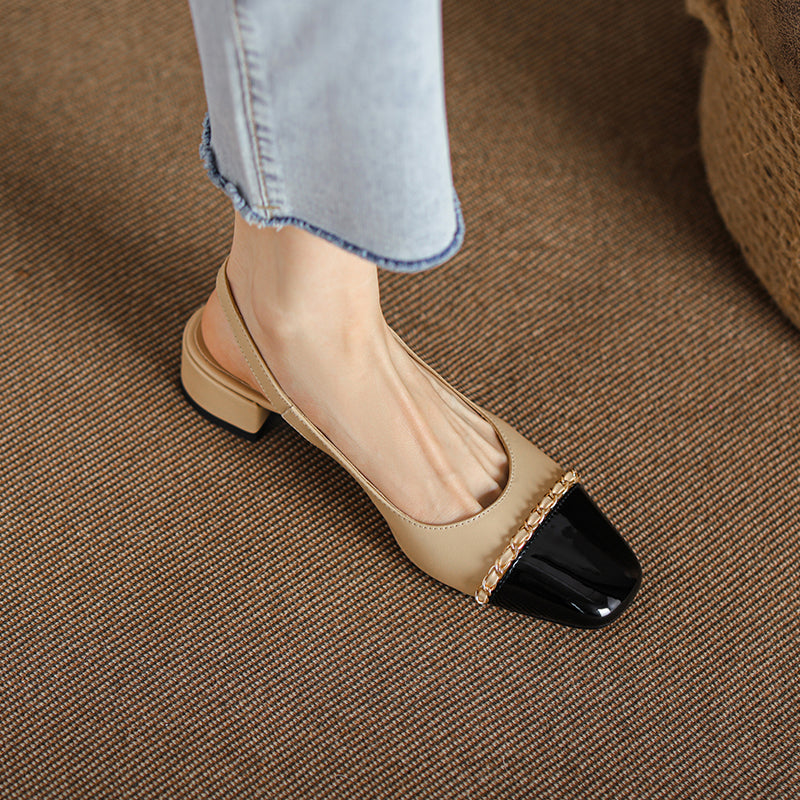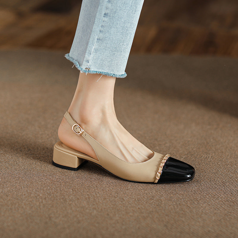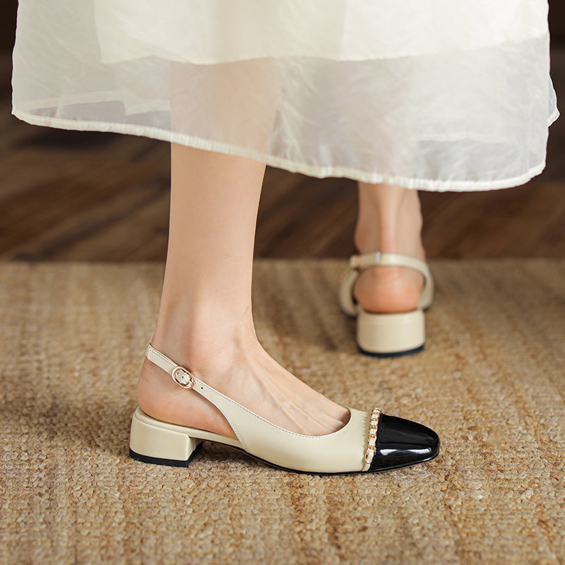 Women's Elegant Patchwork Slingback Low Heel Mary Jane Sandals