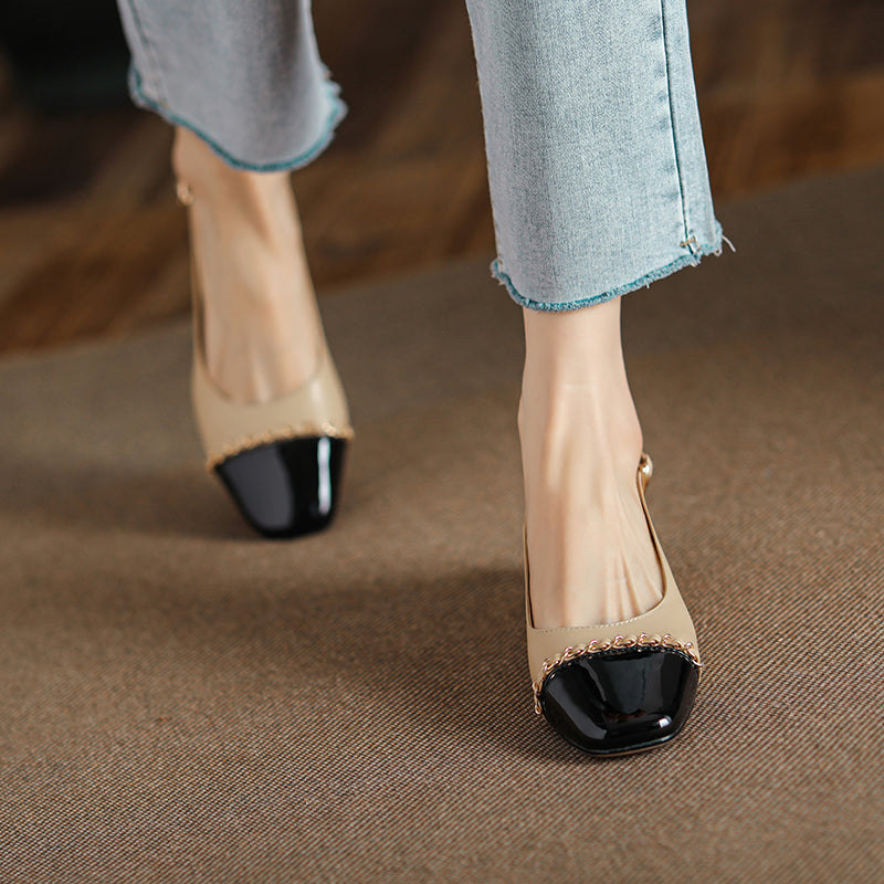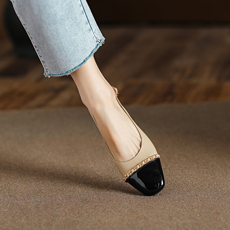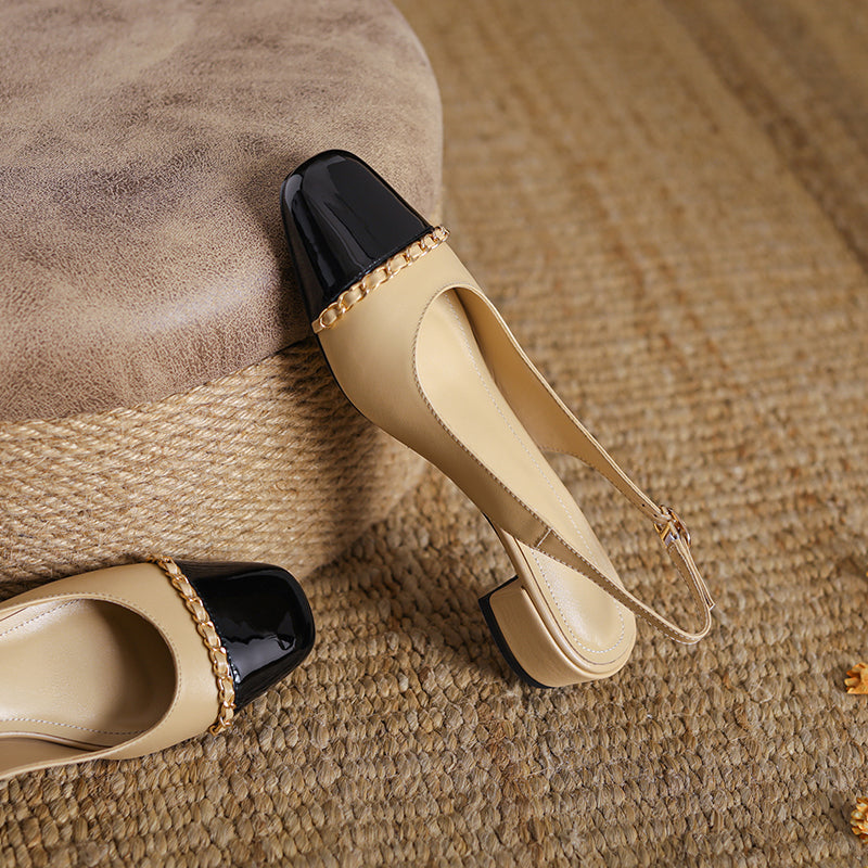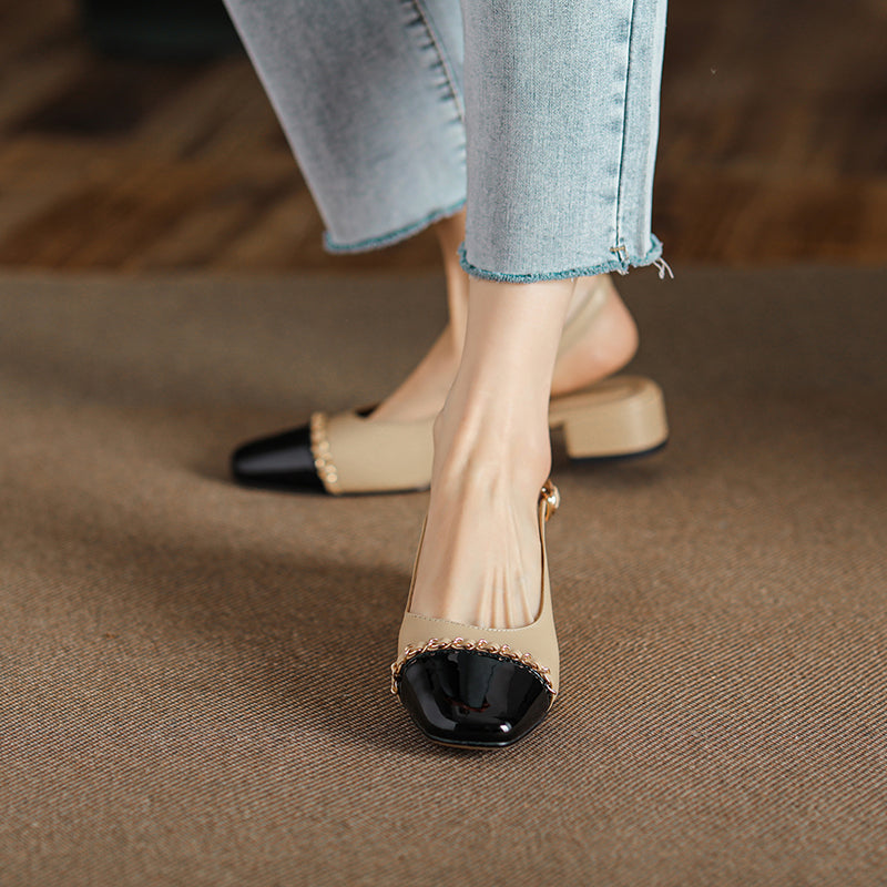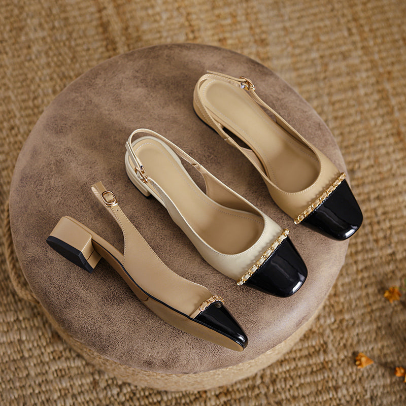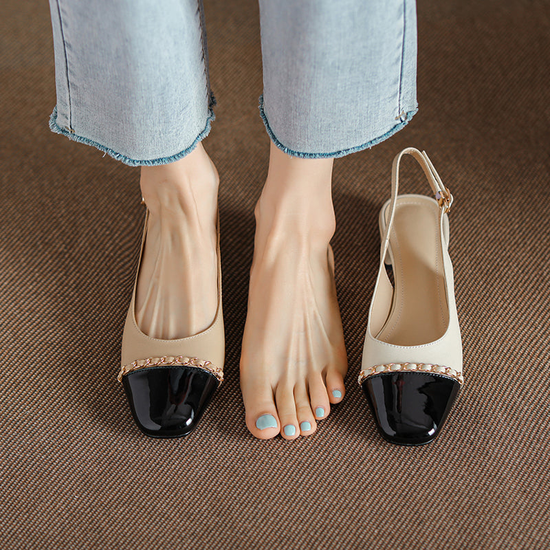 Women's Elegant Patchwork Slingback Low Heel Mary Jane Sandals