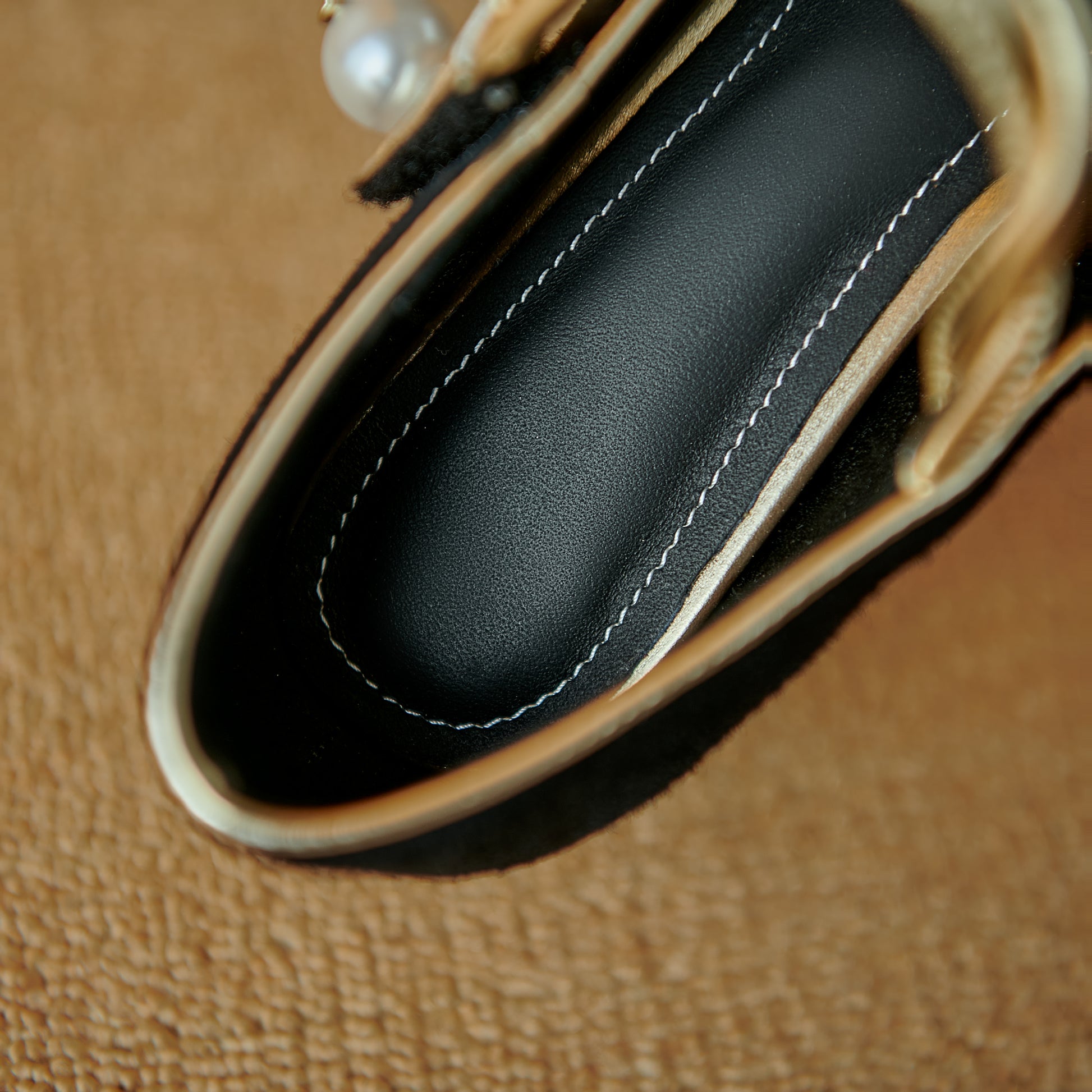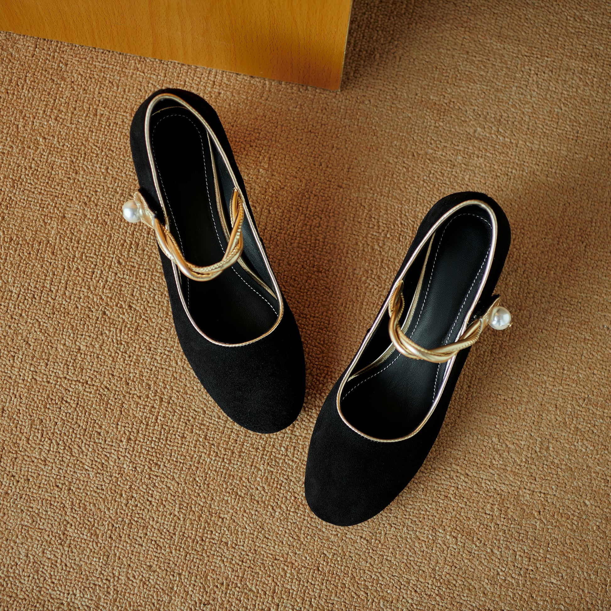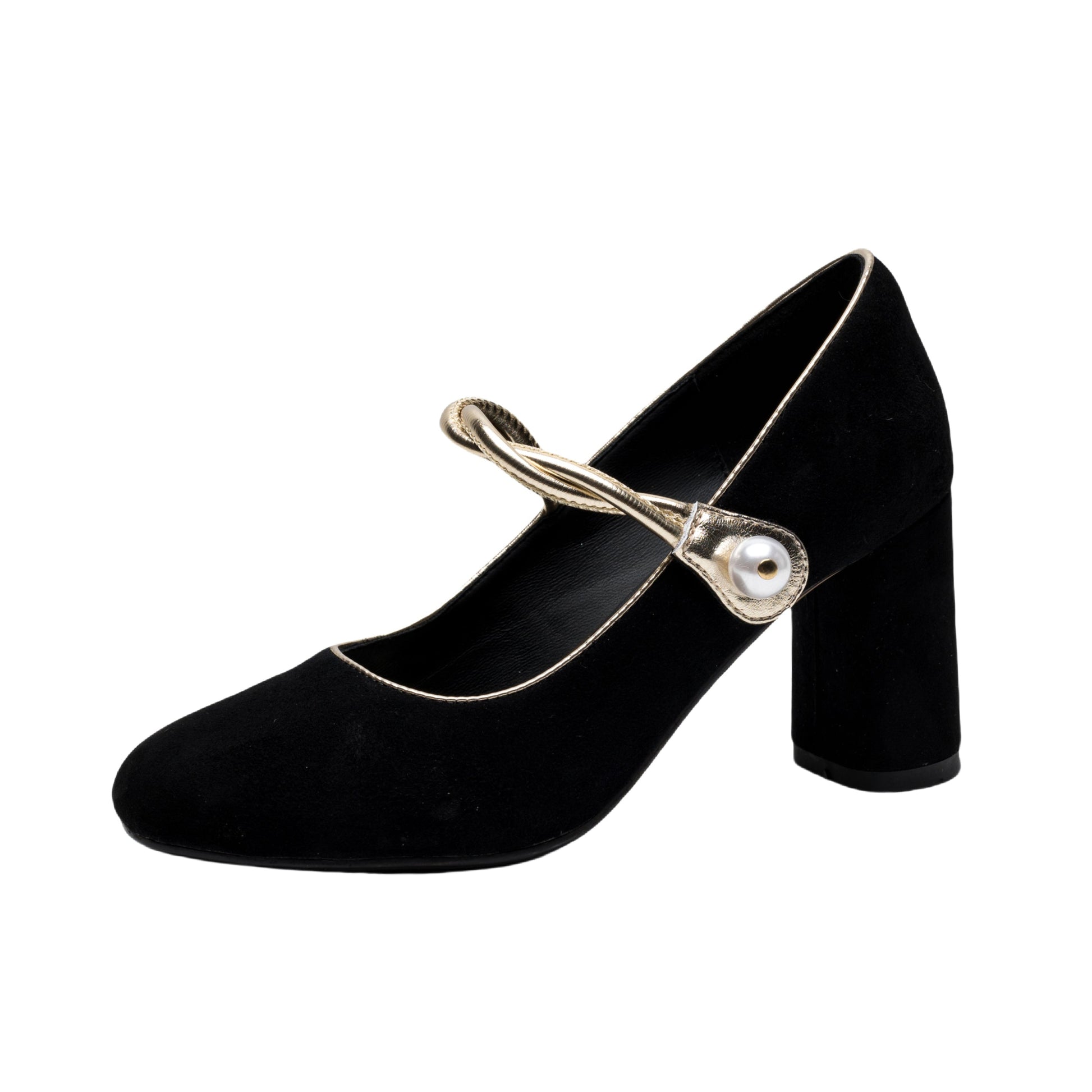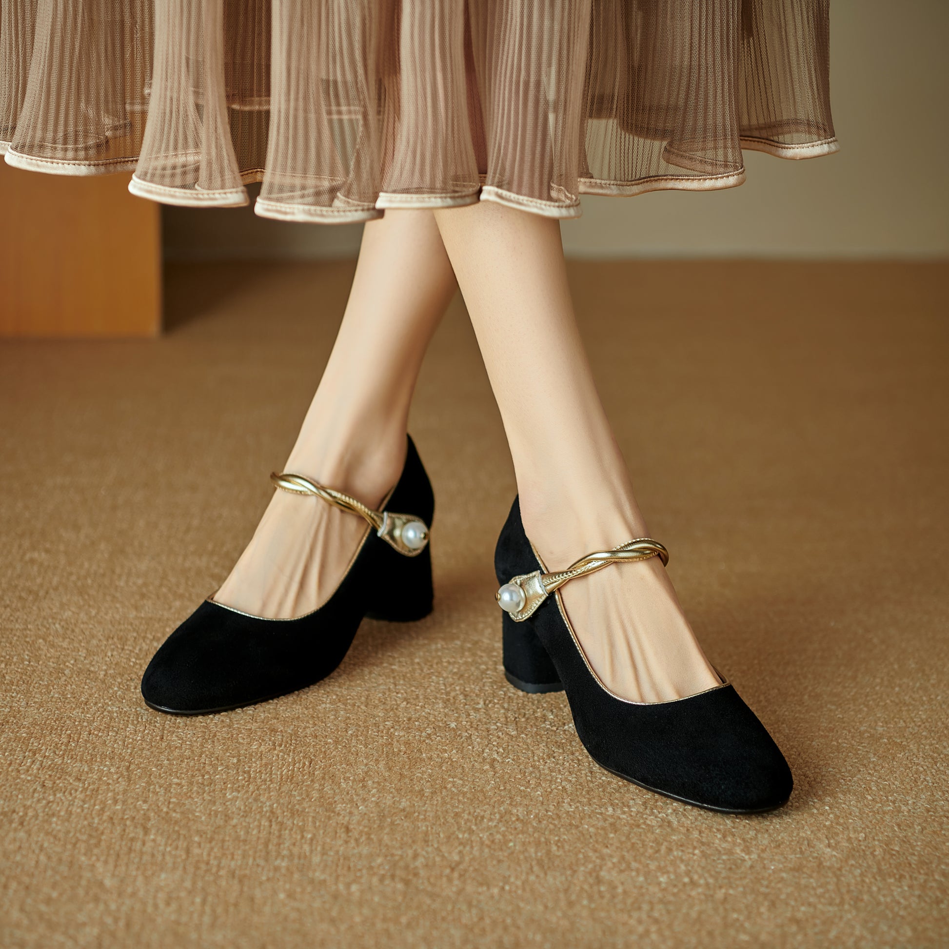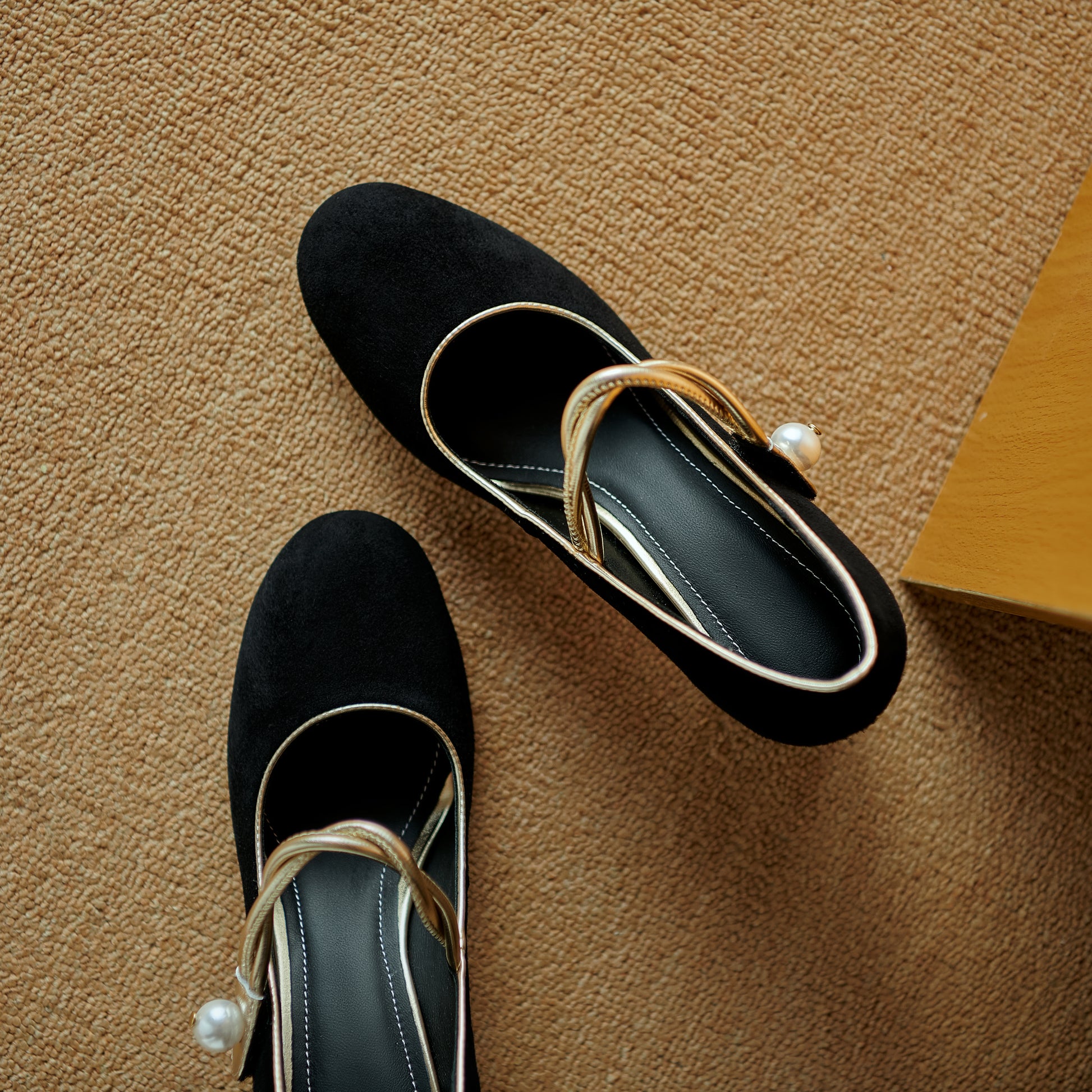 The ParisianPearl MaryJane is an exquisite women's pump that blends Parisian elegance with modern sophistication. Handcrafted from premium sheepskin suede, this luxurious design features matching sheepskin lining and insole for exceptional comfort. The 5.5cm/8cm block heel (please specify height) and flexible TPR sole provide stable elevation, while the rounded toe and pearl-embellished buckle create timeless femininity.