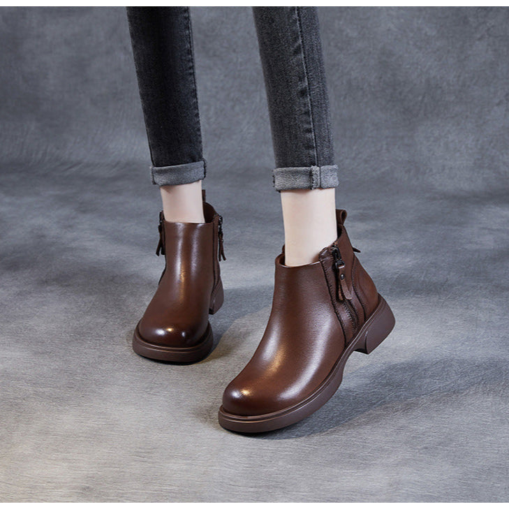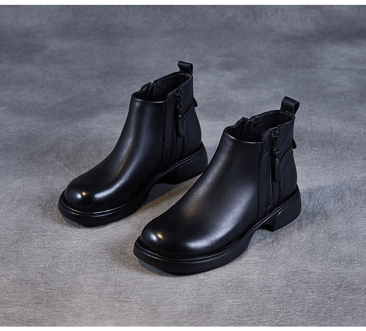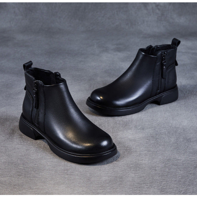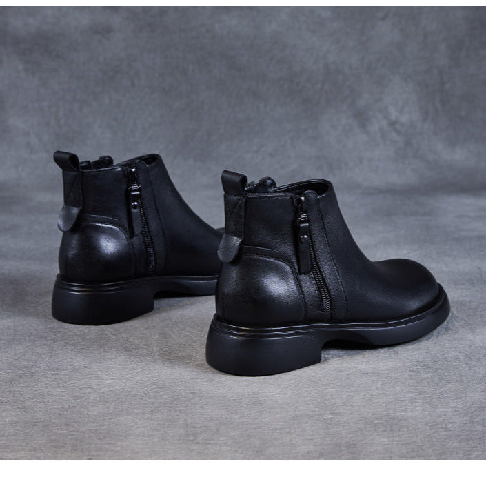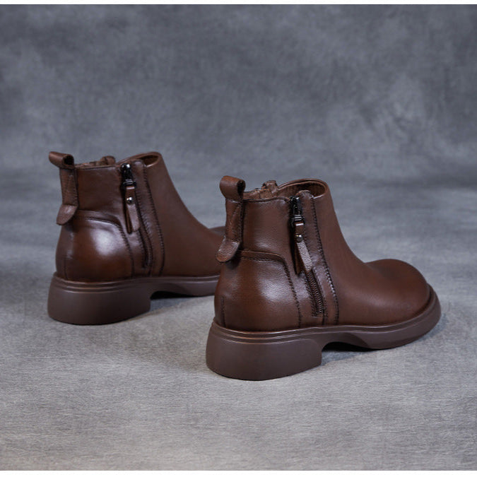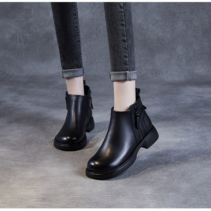 Women's Genuine Leather Casual Ankle Boots – Comfortable Double Zipper Design