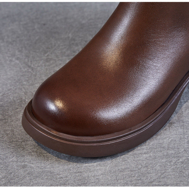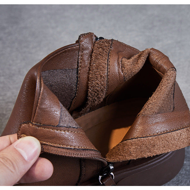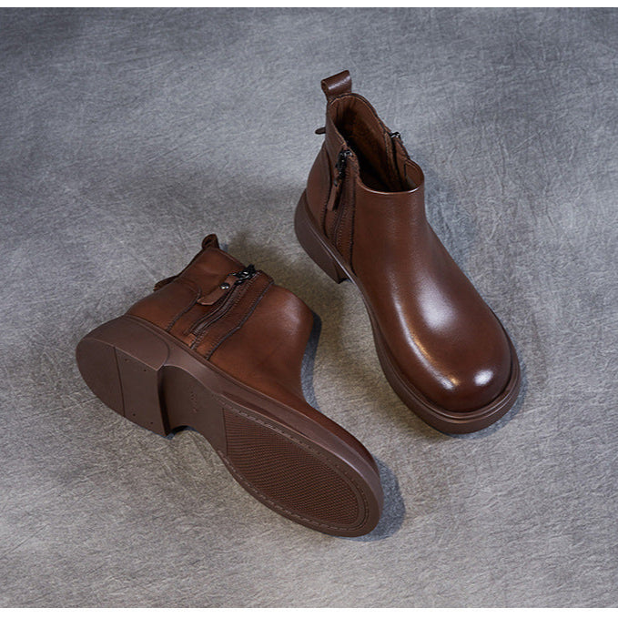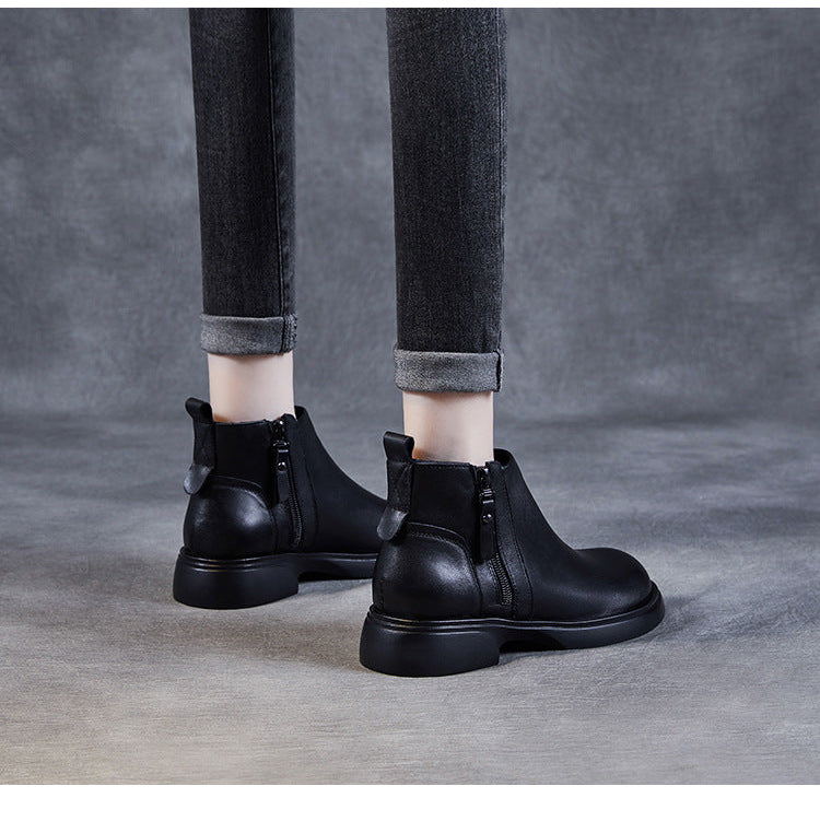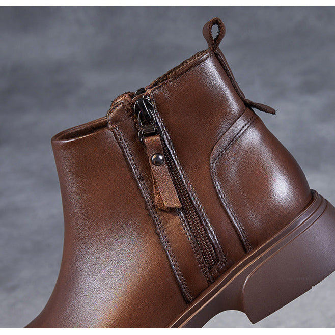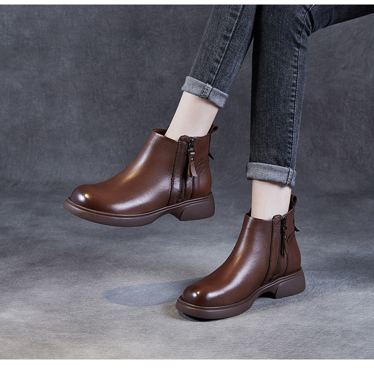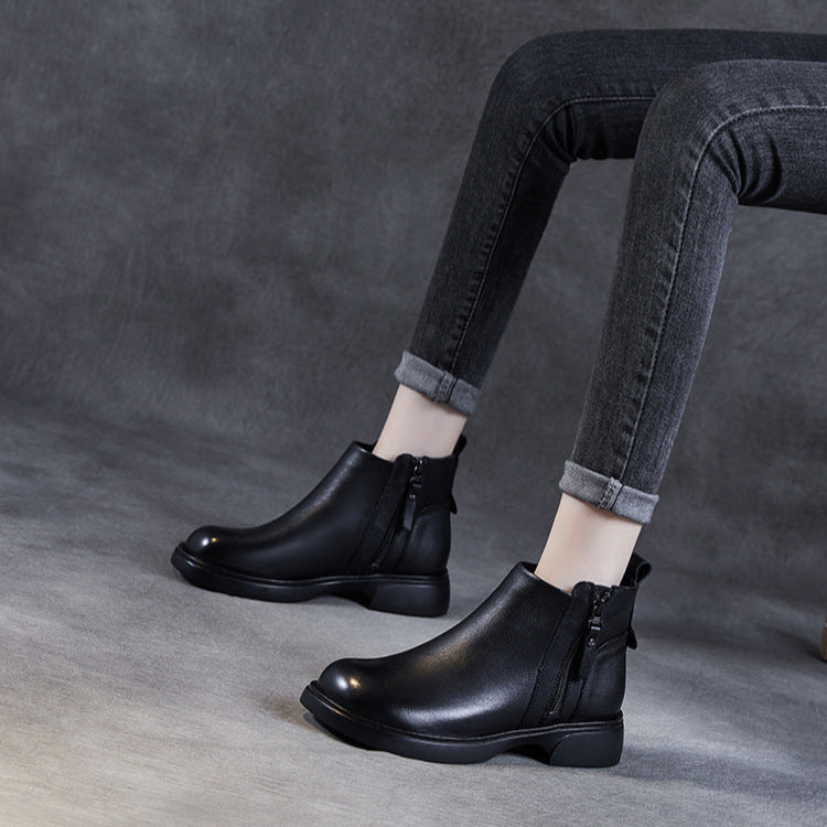 Women's Genuine Leather Casual Ankle Boots – Comfortable Double Zipper Design