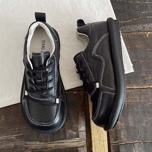 Women's Genuine Leather Casual Lace-Up Flat Shoes