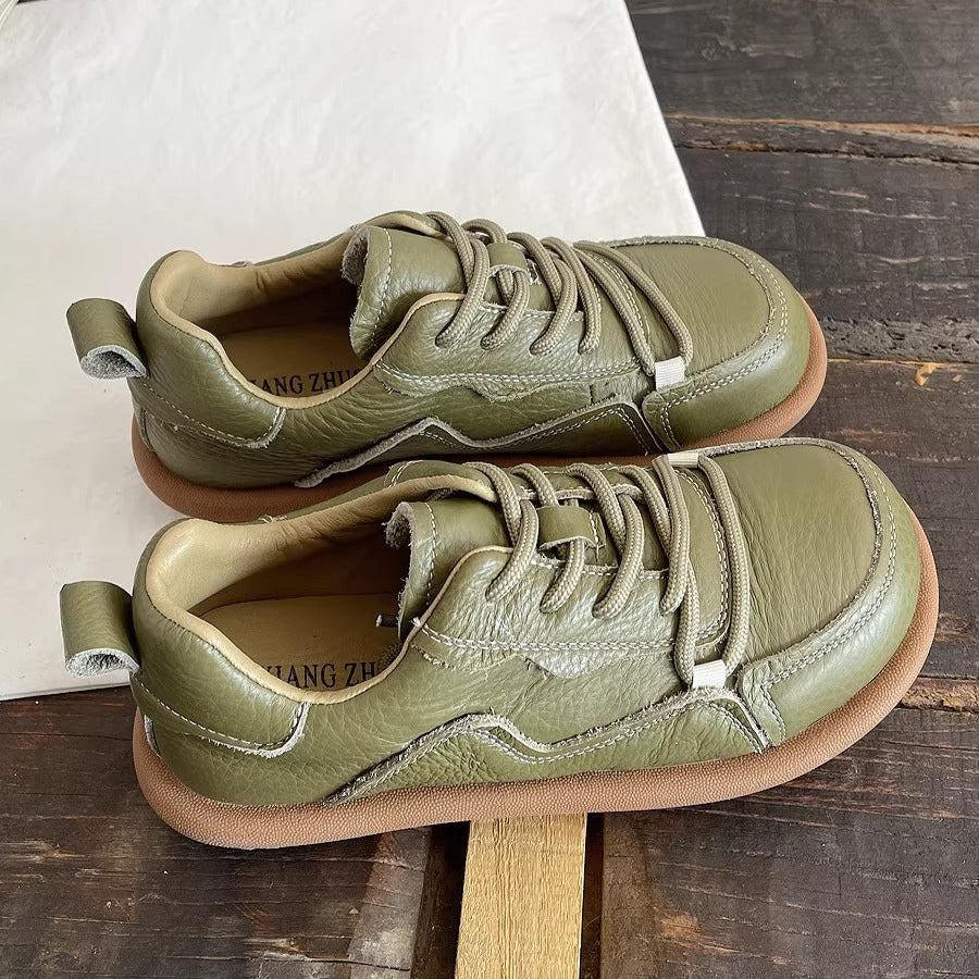Stay comfortable and stylish with these genuine leather lace-up flats. Made from soft second-layer cowhide with a cushioned latex insole and flexible rubber sole, they’re perfect for all-day wear. The 2.5cm low heel offers subtle lift, while the round toe and lace-up closure ensure a secure and casual fit. Available in Beige, Green, and Black—ideal for spring and autumn.