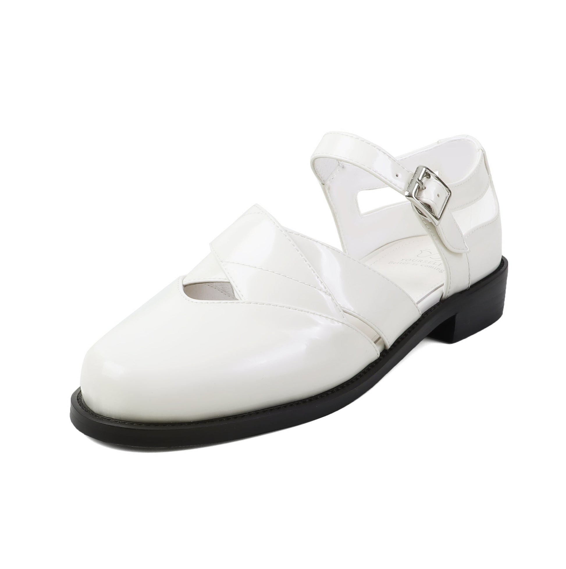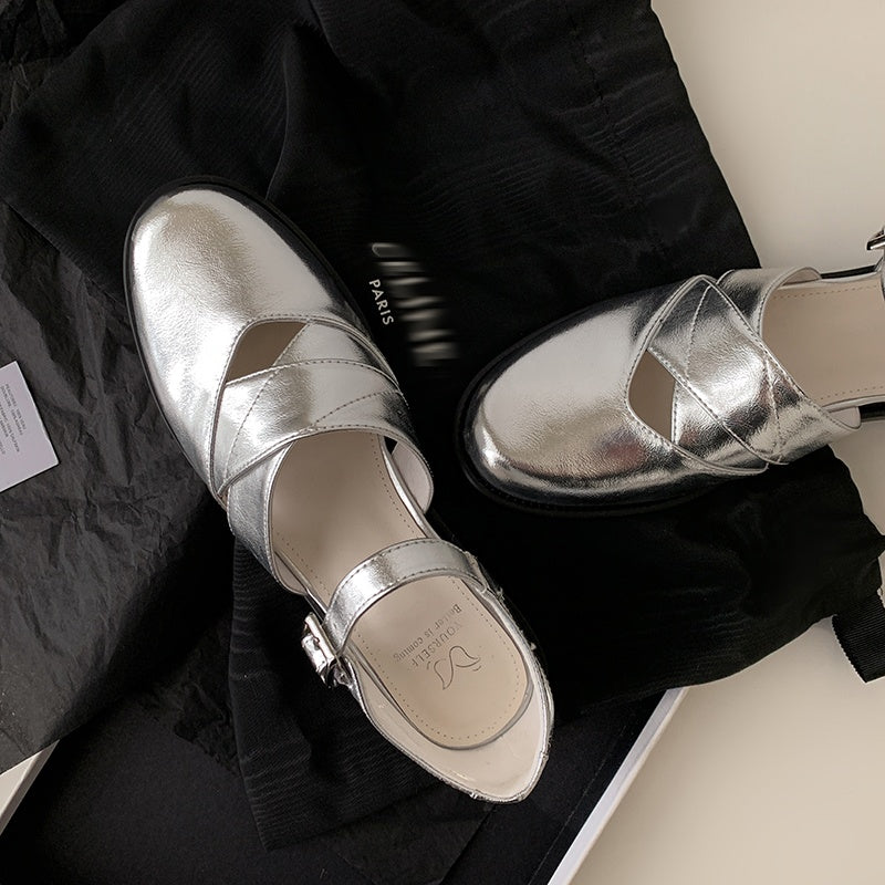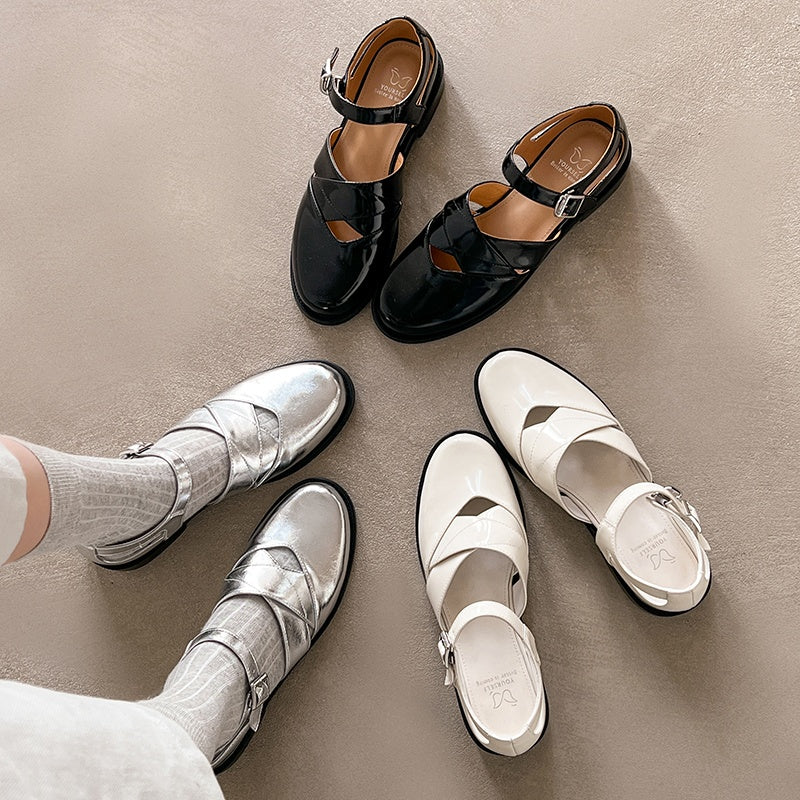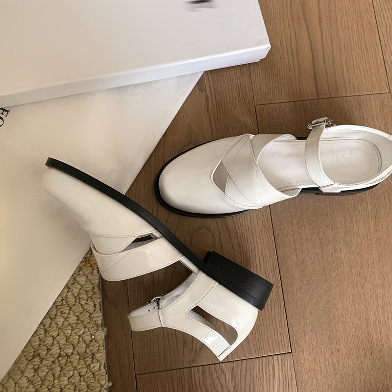 Experience artisanal craftsmanship with these exquisite leather flats, featuring a delicate hollow-out design and adjustable buckle strap. The 2.8cm heel offers subtle lift for all-day summer comfort.