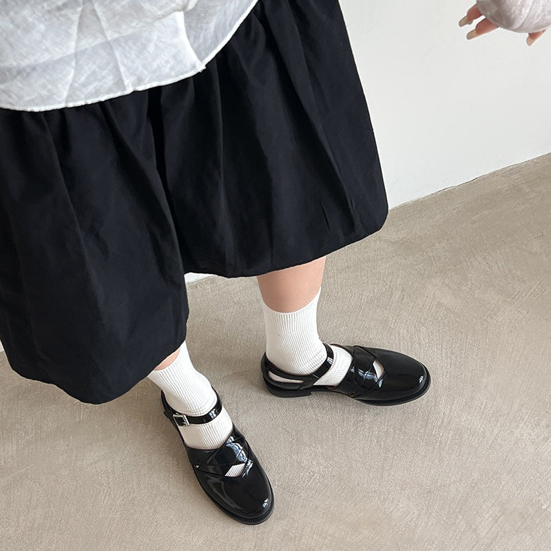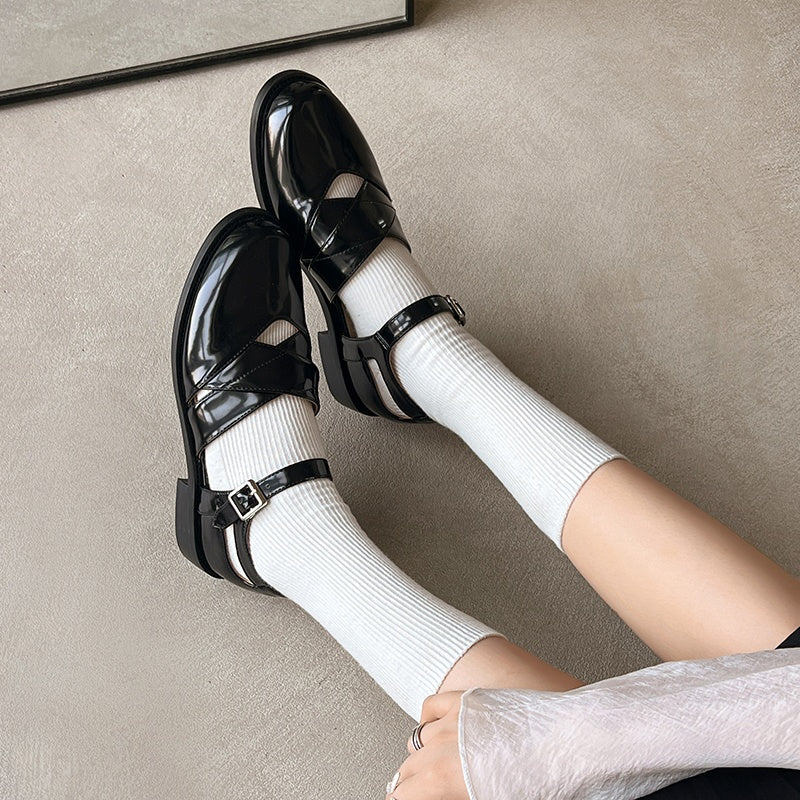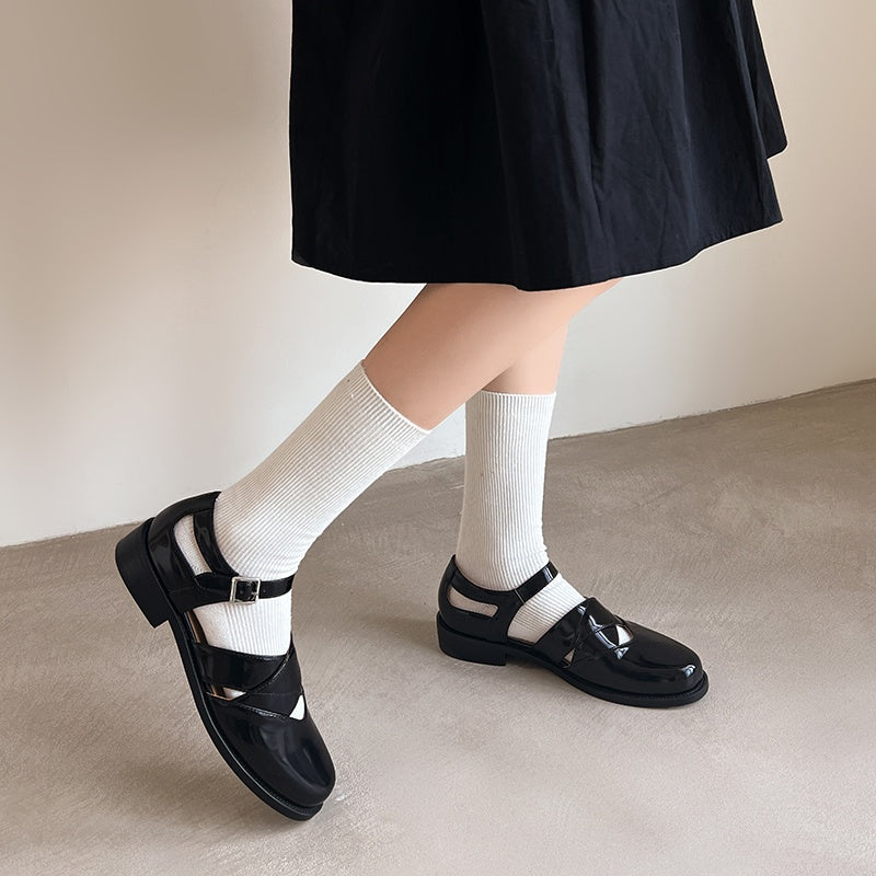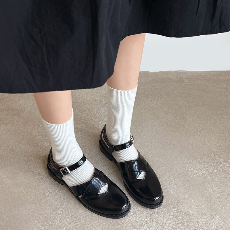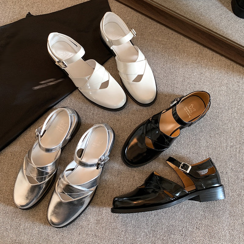 Women's Handmade Genuine Leather Buckle Hollow out Mary Jane Flats