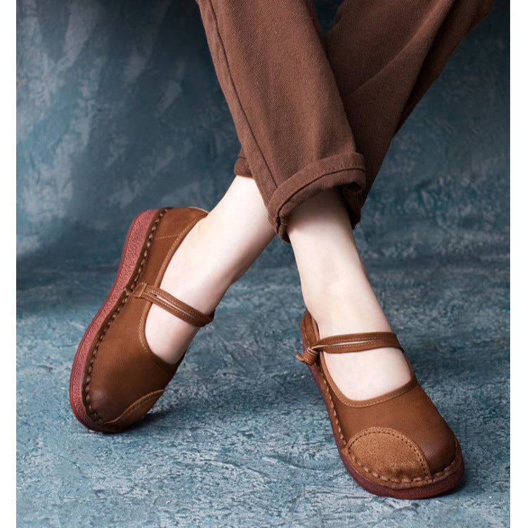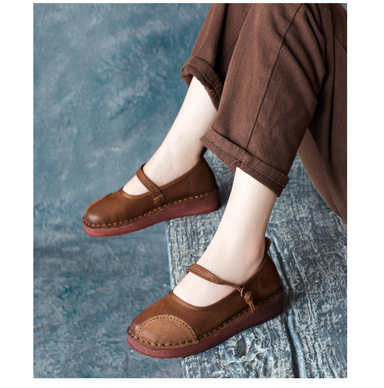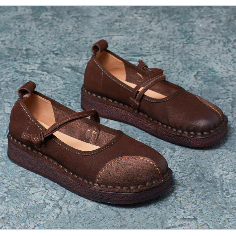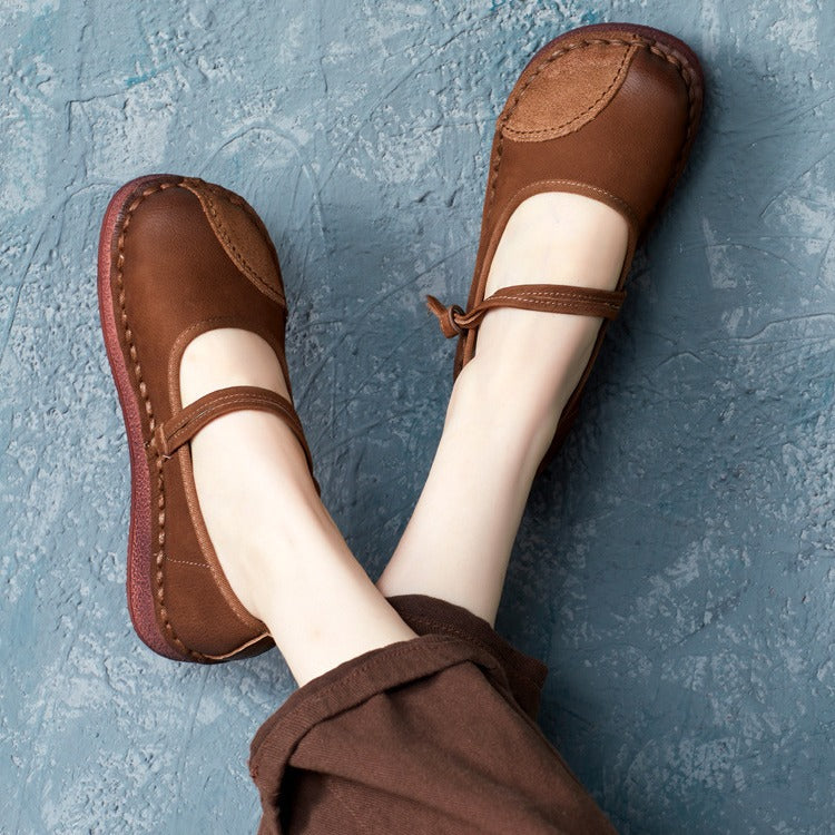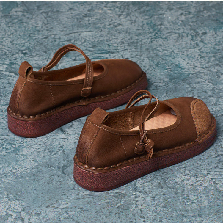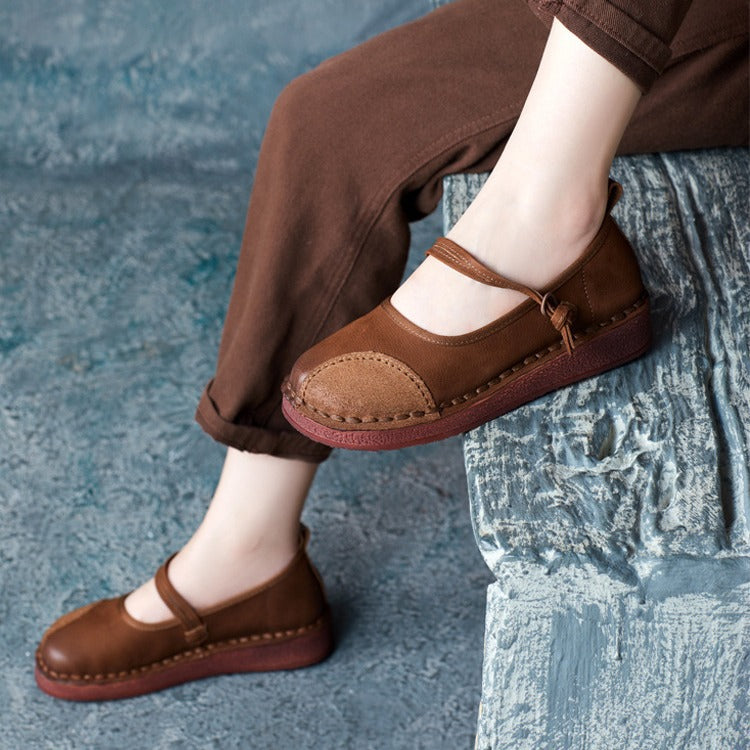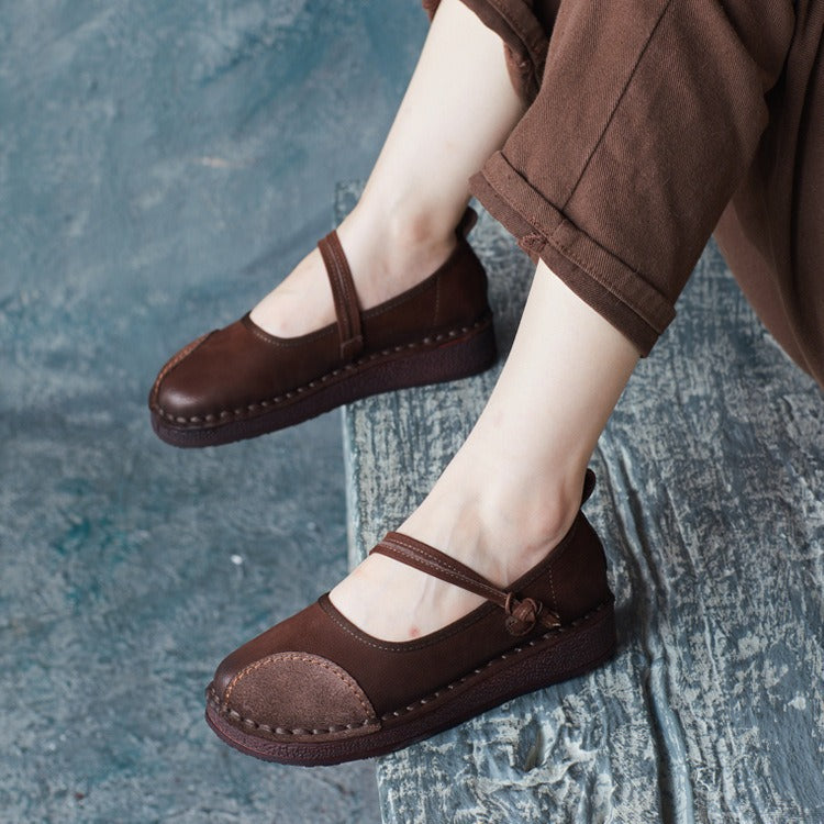 Women's Handmade Leather Patchwork Durable Daily Mary Jane Shoes