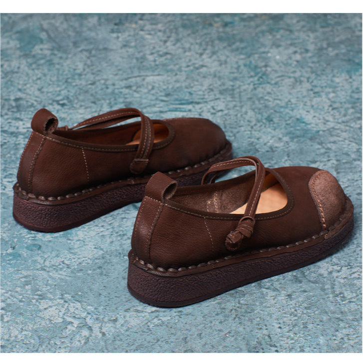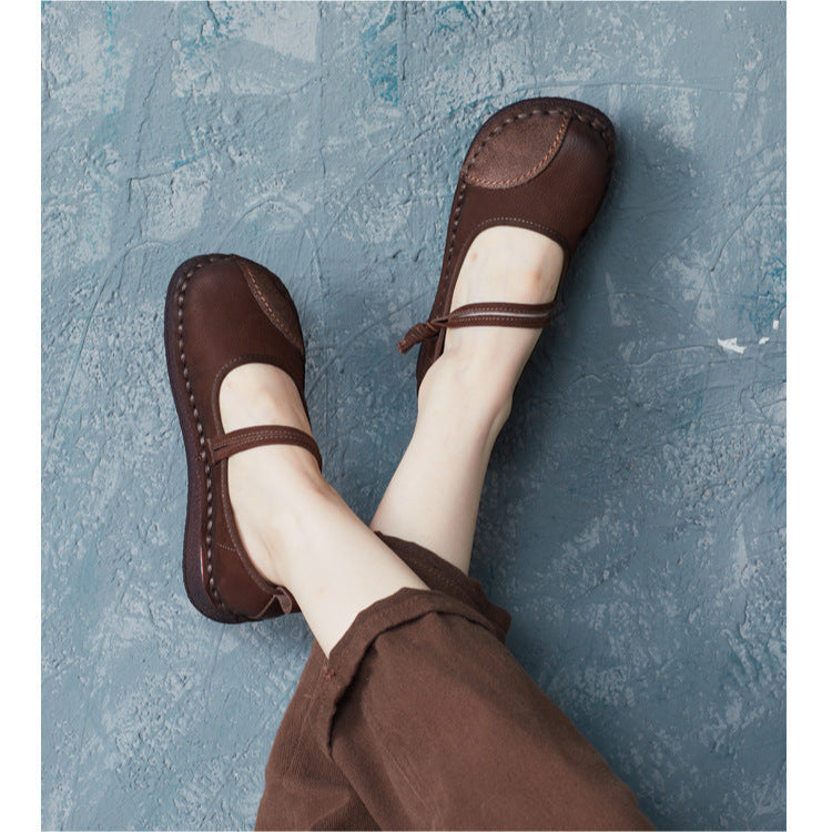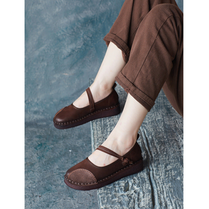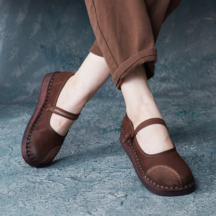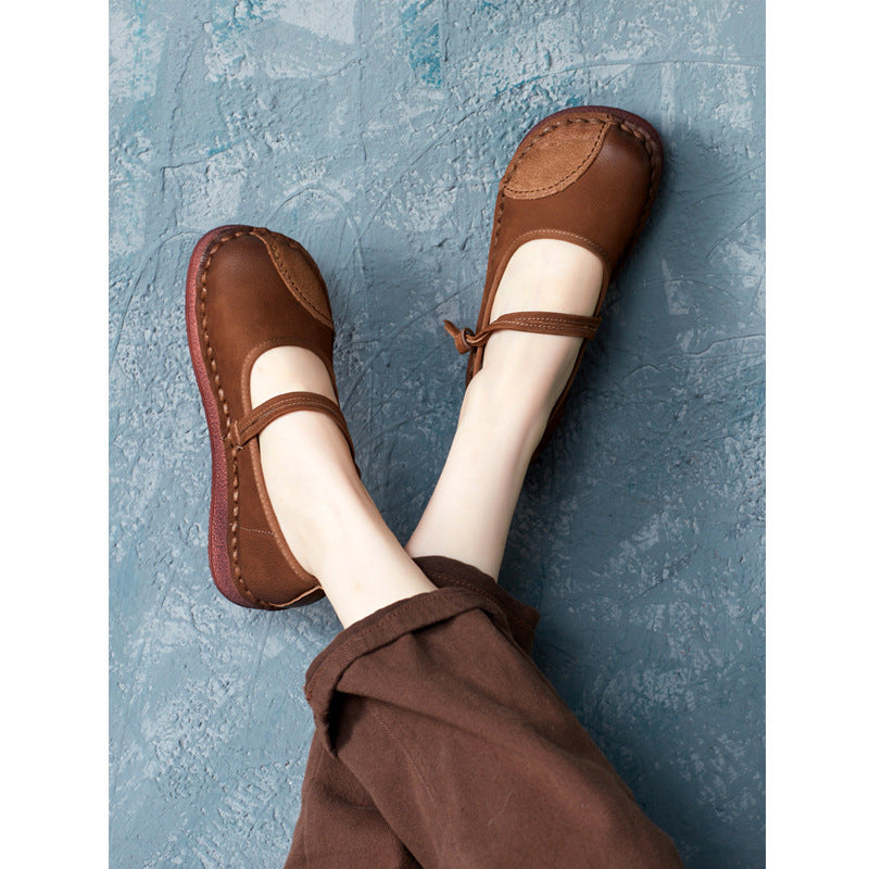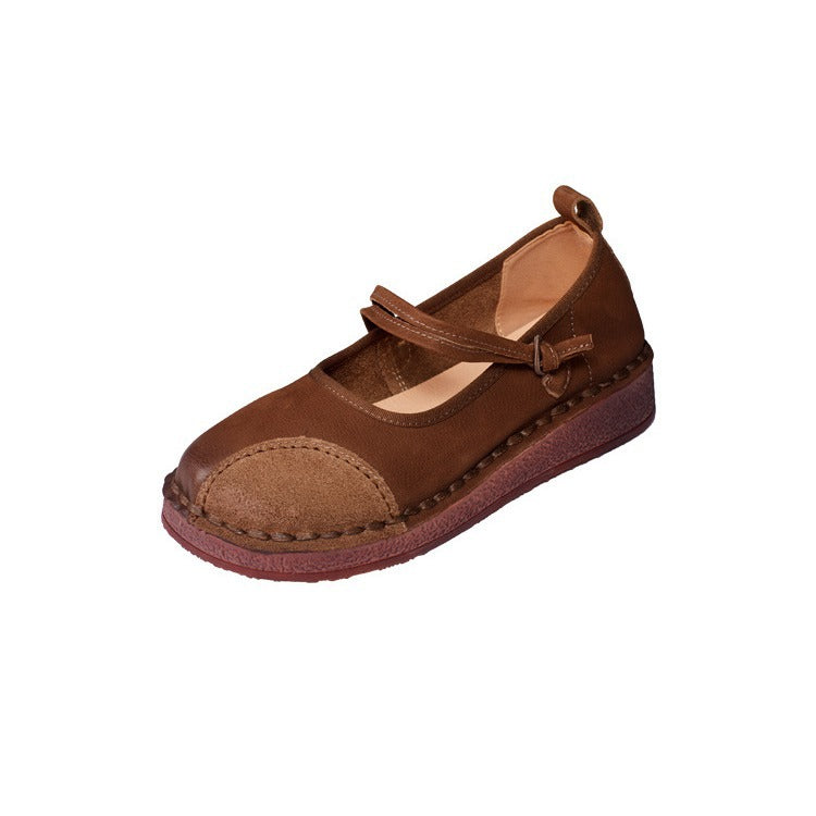 Women's Handmade Leather Patchwork Durable Daily Mary Jane Shoes