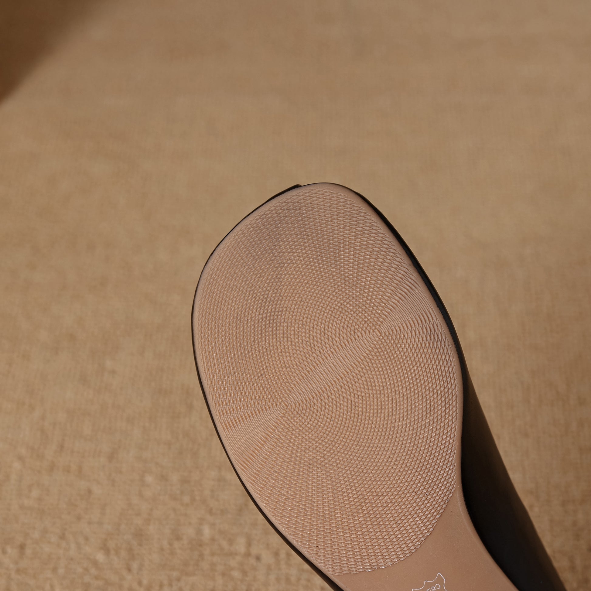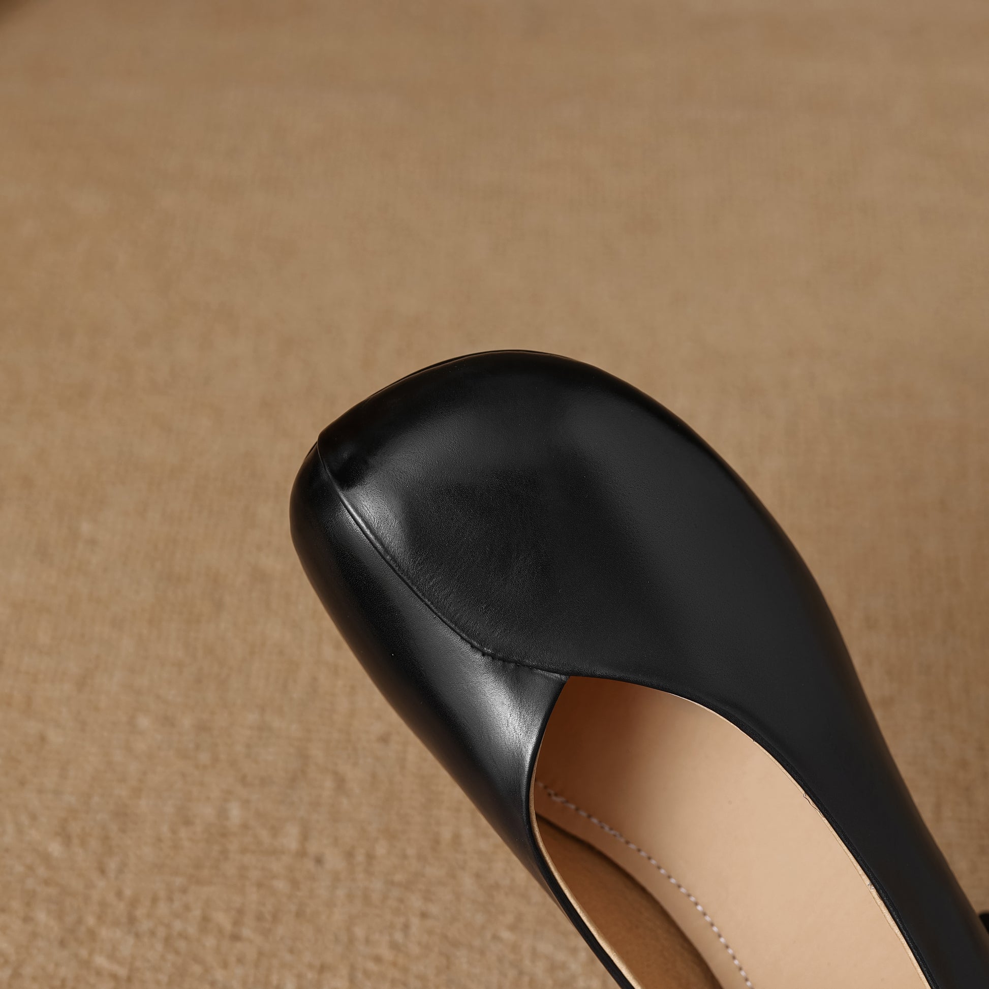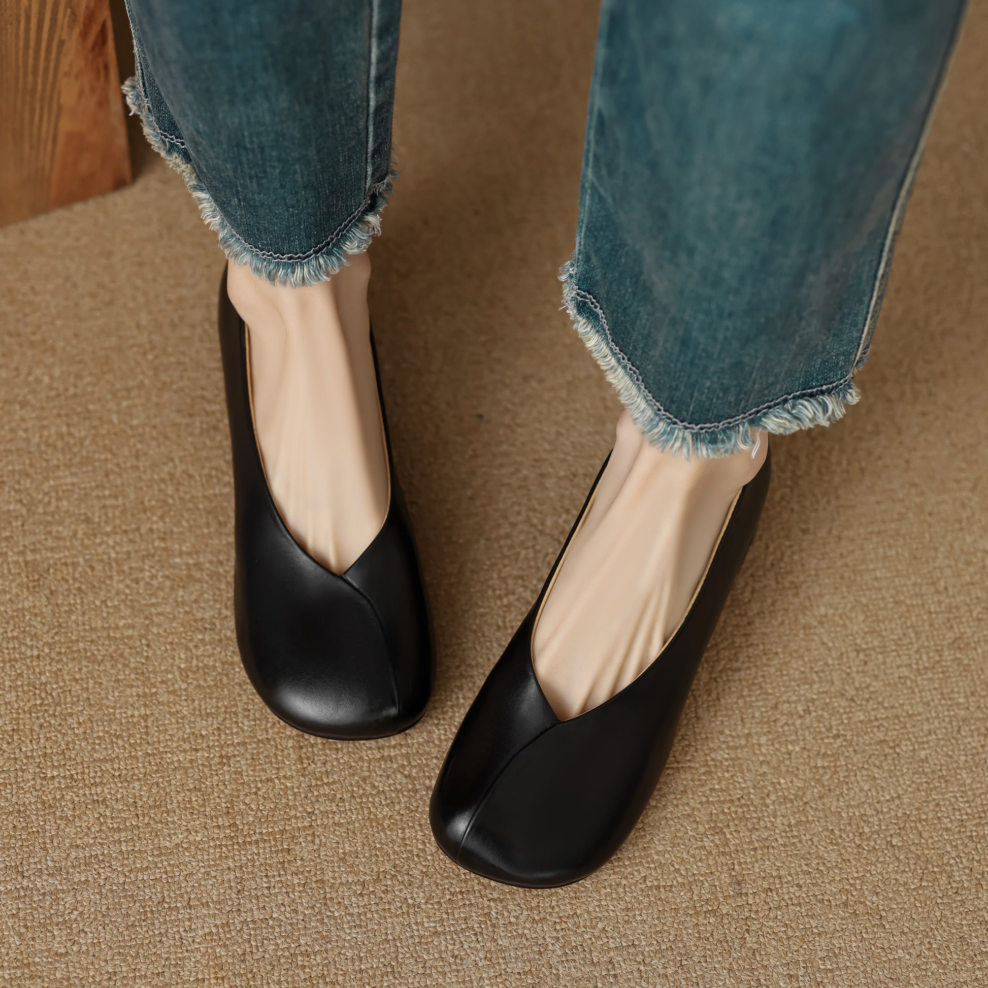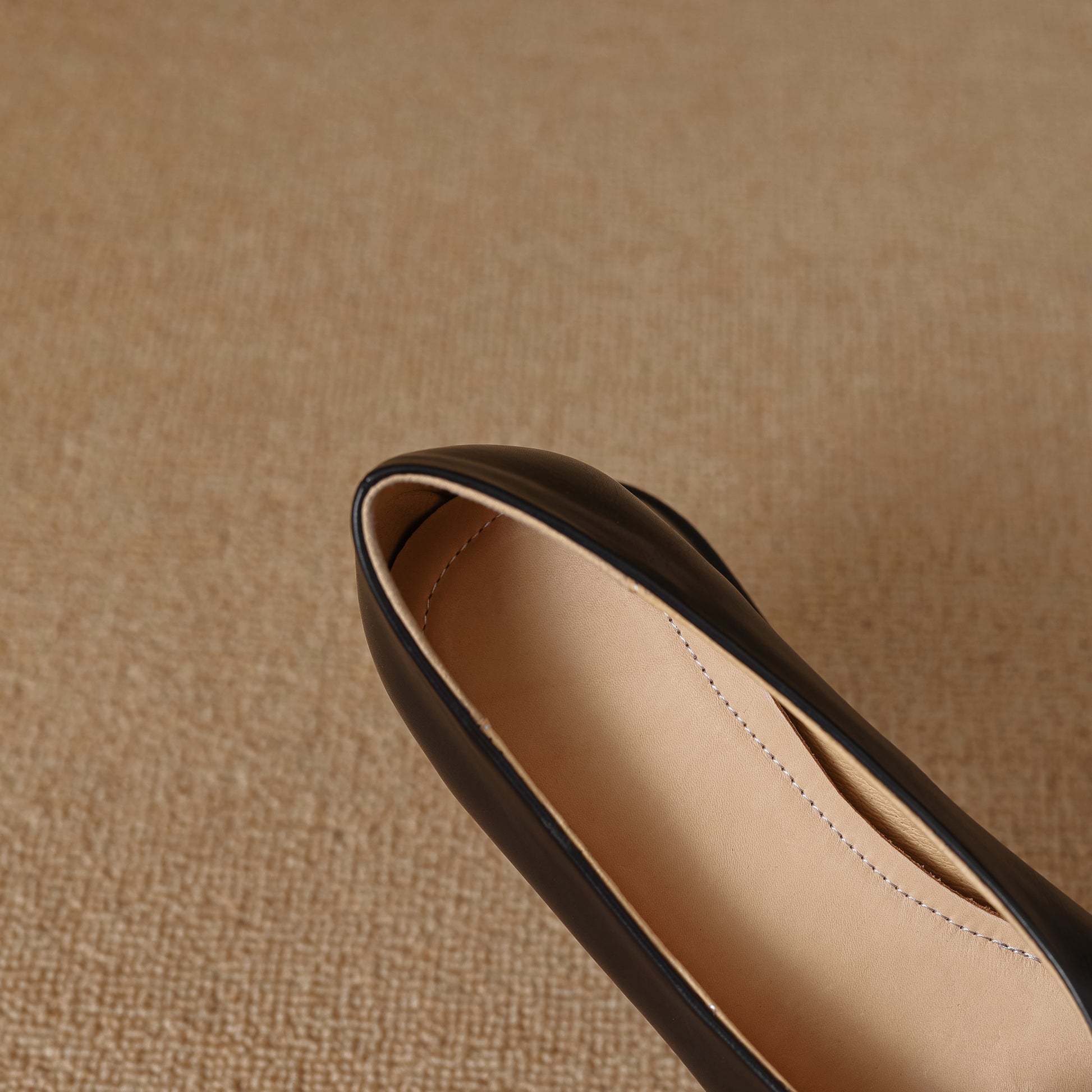 Women's Handmade Leather Slip-on Round Toe Low Heel Block Pumps