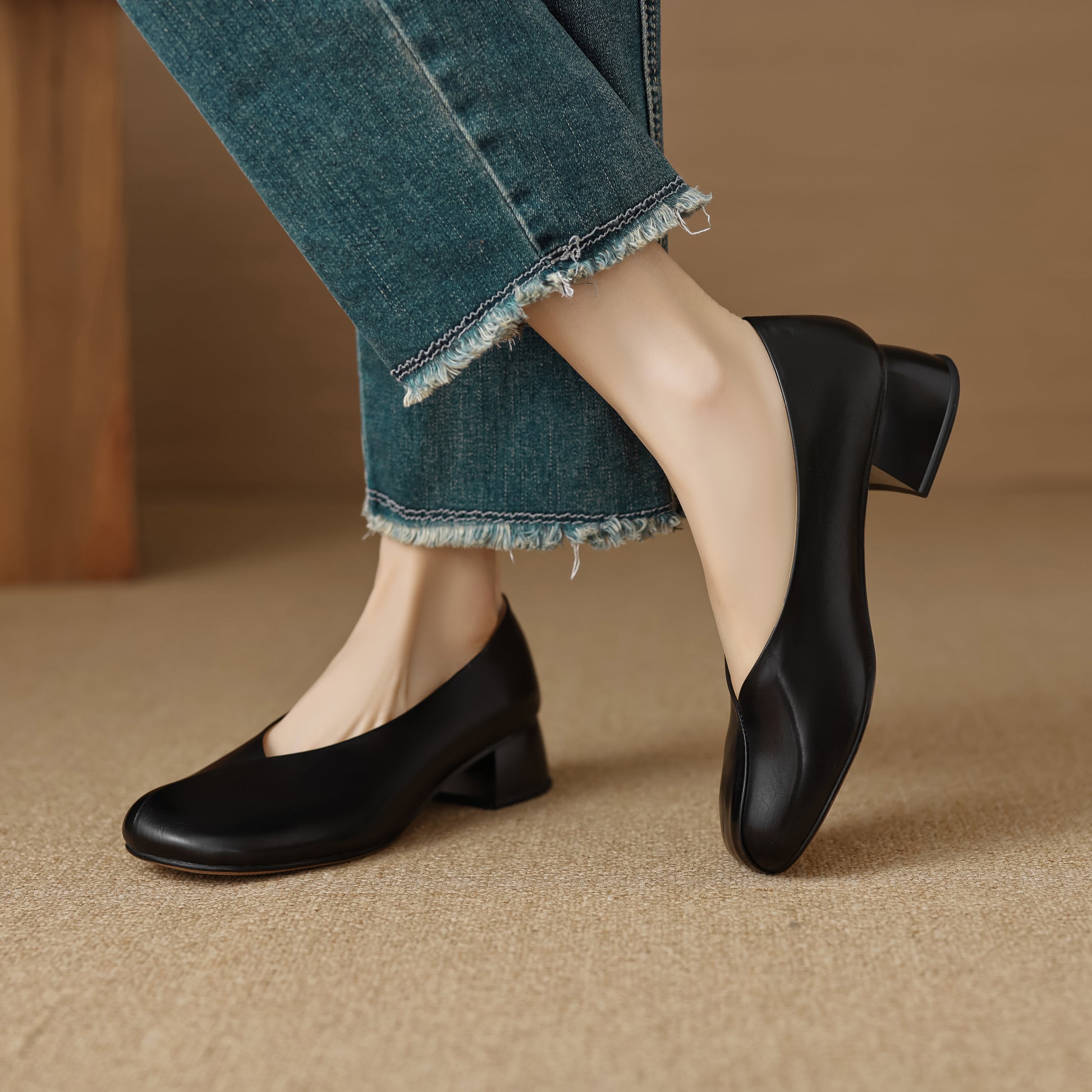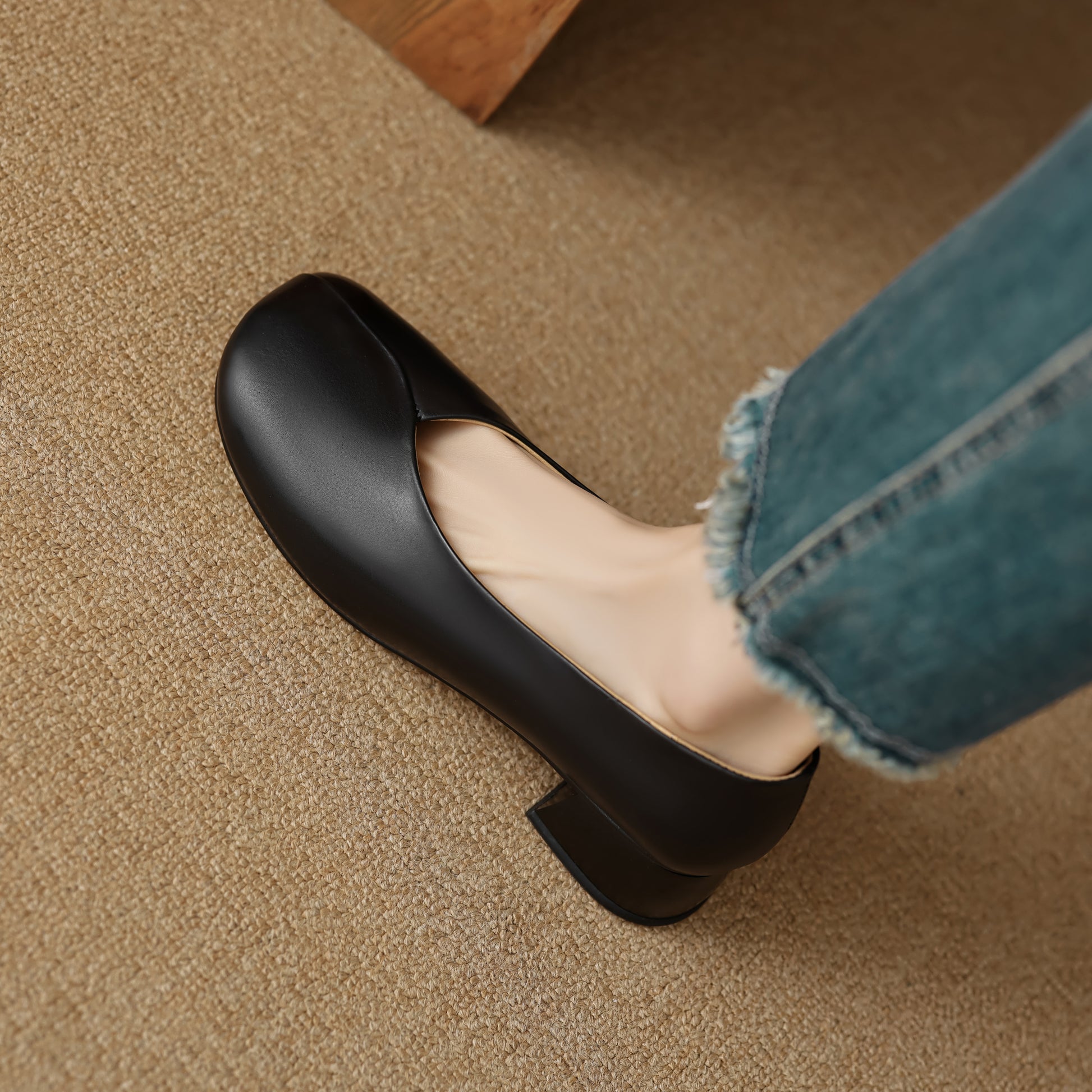 The ClassicStep PumpLuxe is an elegant women's pump that combines timeless style with modern comfort. Handcrafted from premium cowhide, this versatile design features a breathable pigskin lining and durable cowhide insole for all-day wearability. The 4cm block heel and flexible TPR sole provide stable elevation, while the round toe and slip-on design offer effortless sophistication.