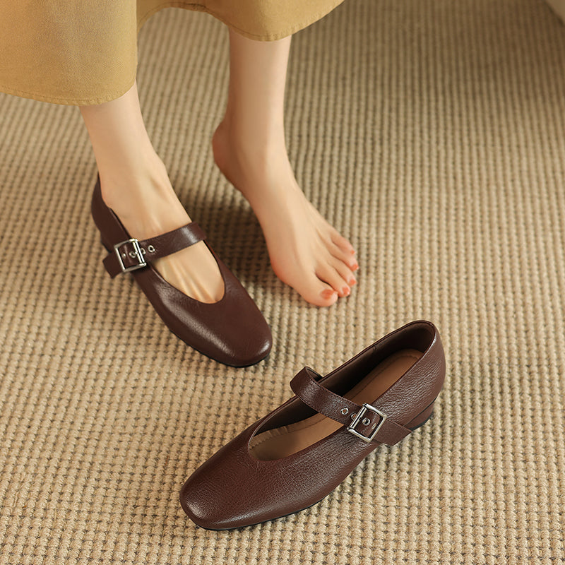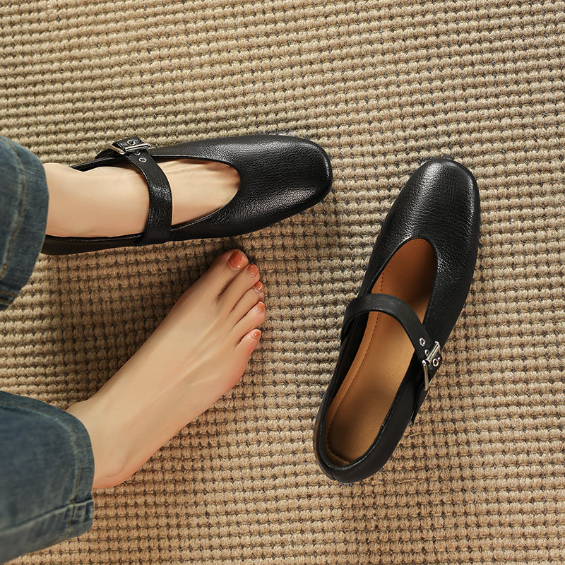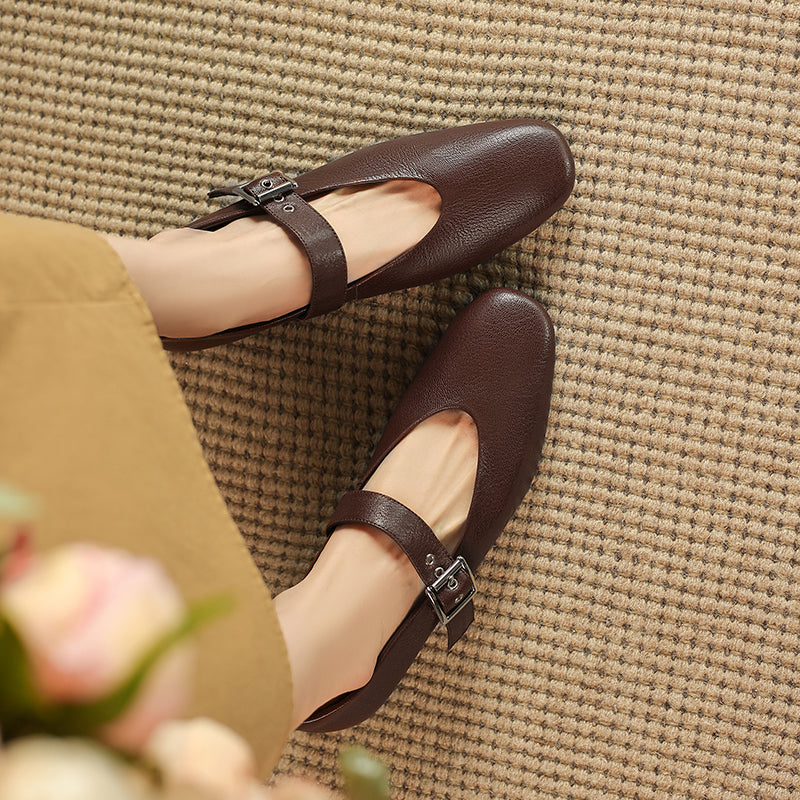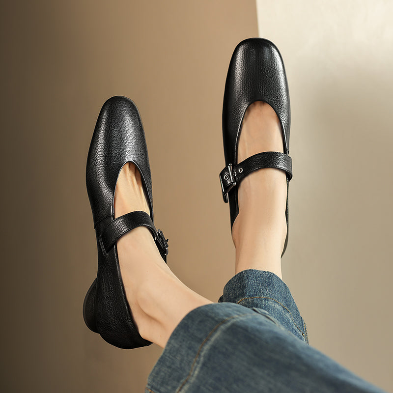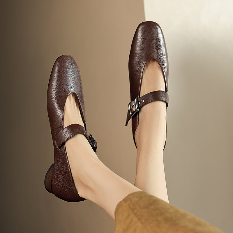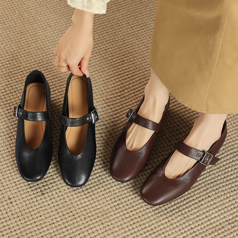 Women's Handmade Leather Vintage Ballet Mary Jane Flats