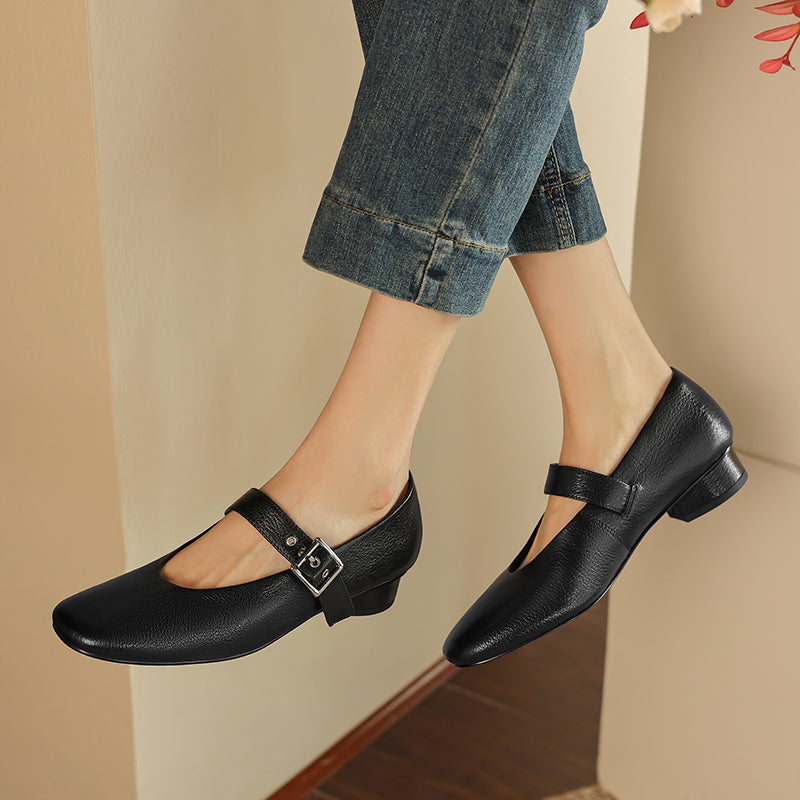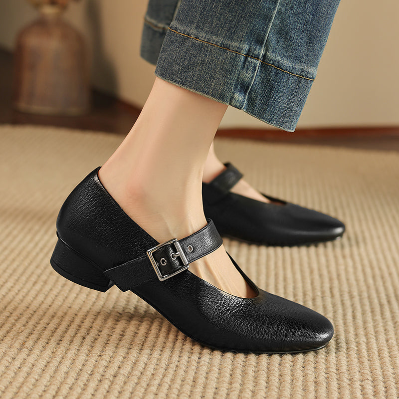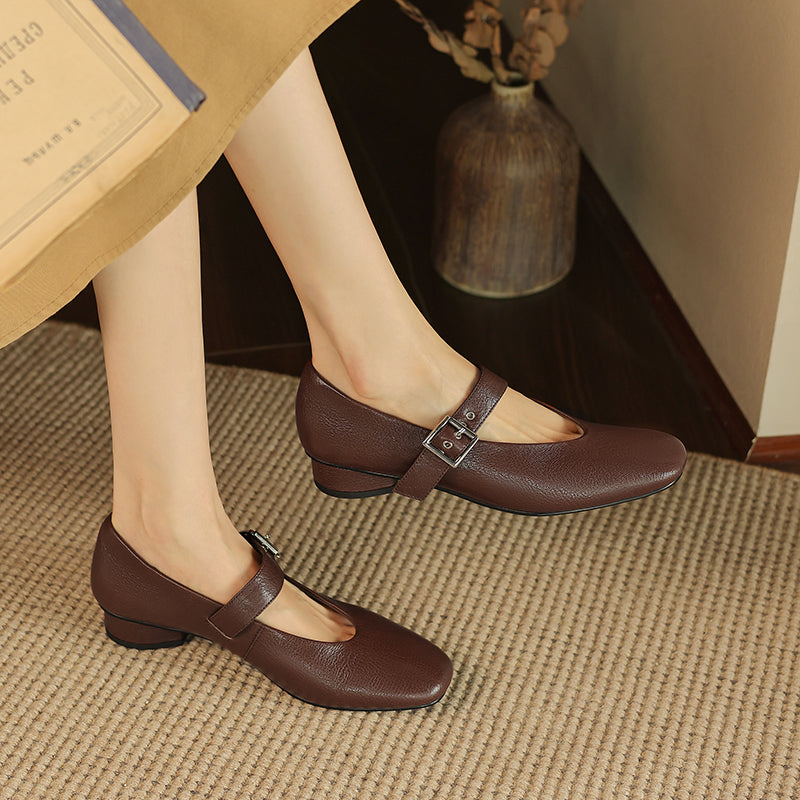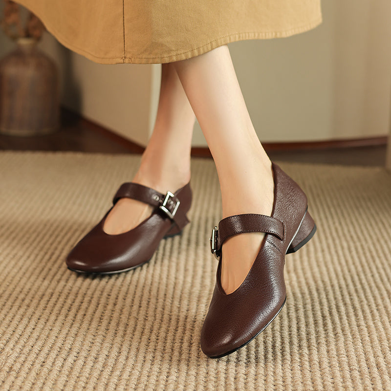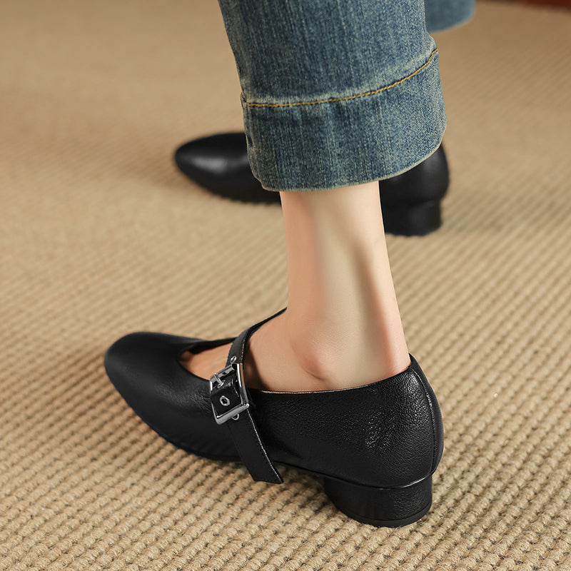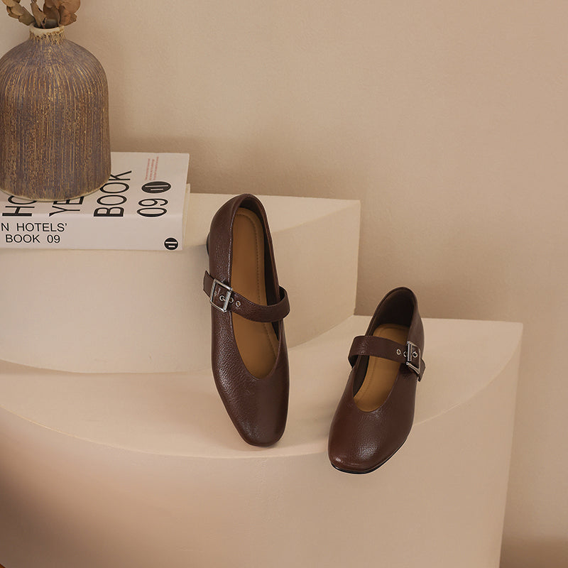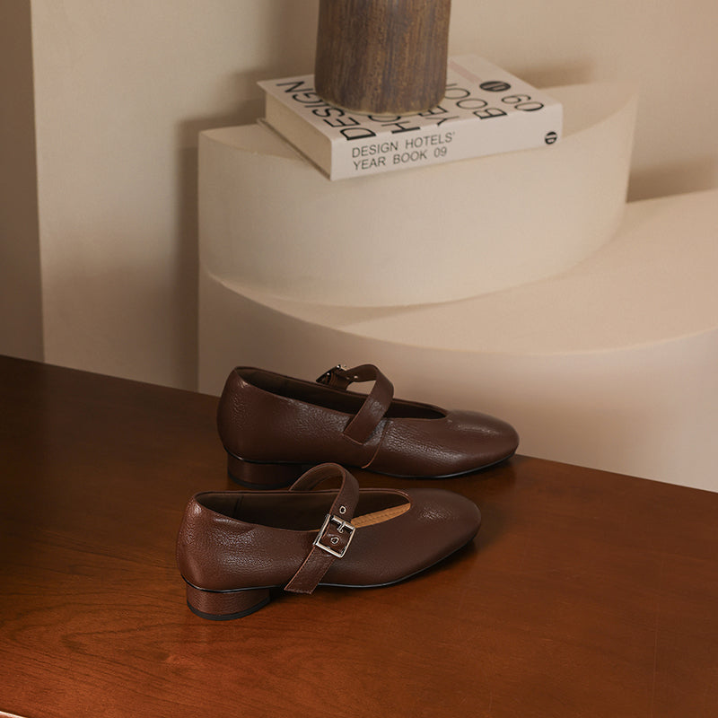Women's Handmade Leather Vintage Ballet Mary Jane Flats
