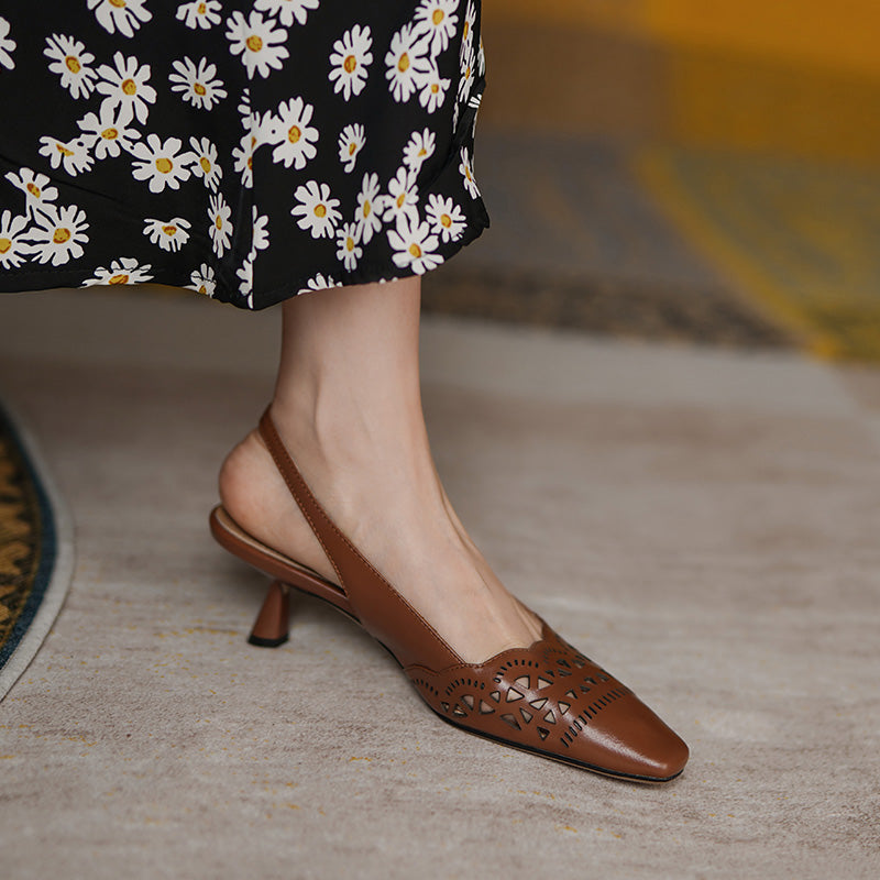 Women's Handmade Retro Hollow Out Slingback Kitten Heel Sandals
