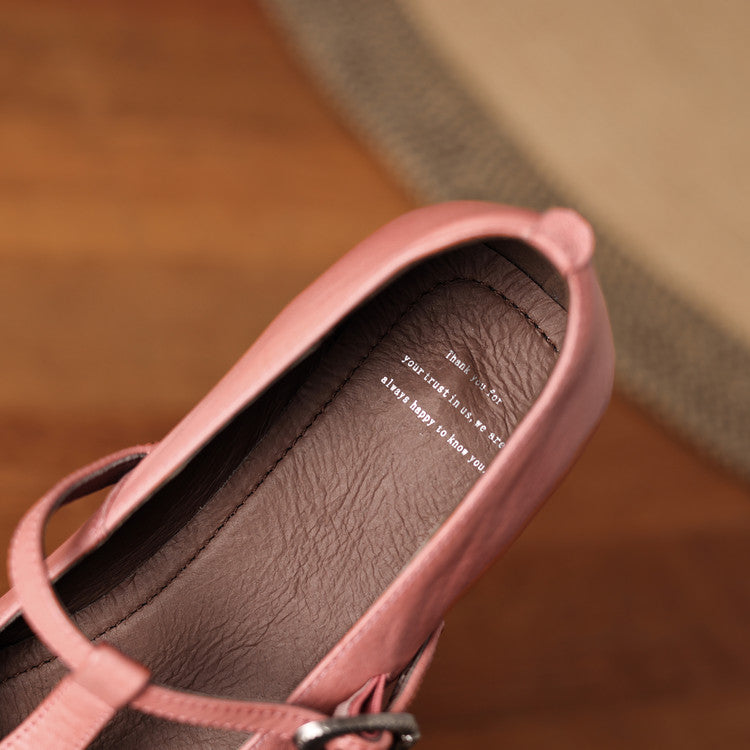 Women's Handmade Vintage Cowhide T-Strap Mary Jane Low Heel Buckle Shoes
