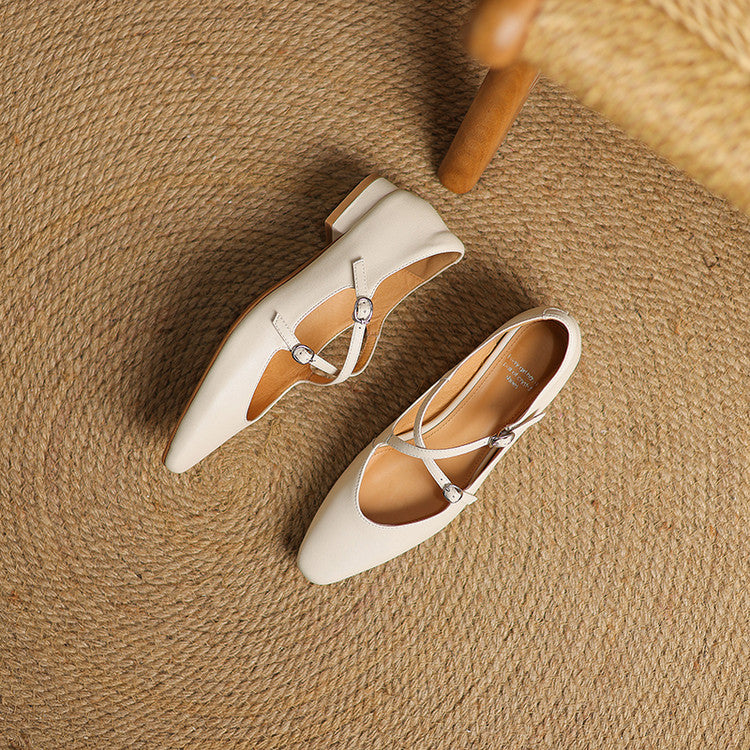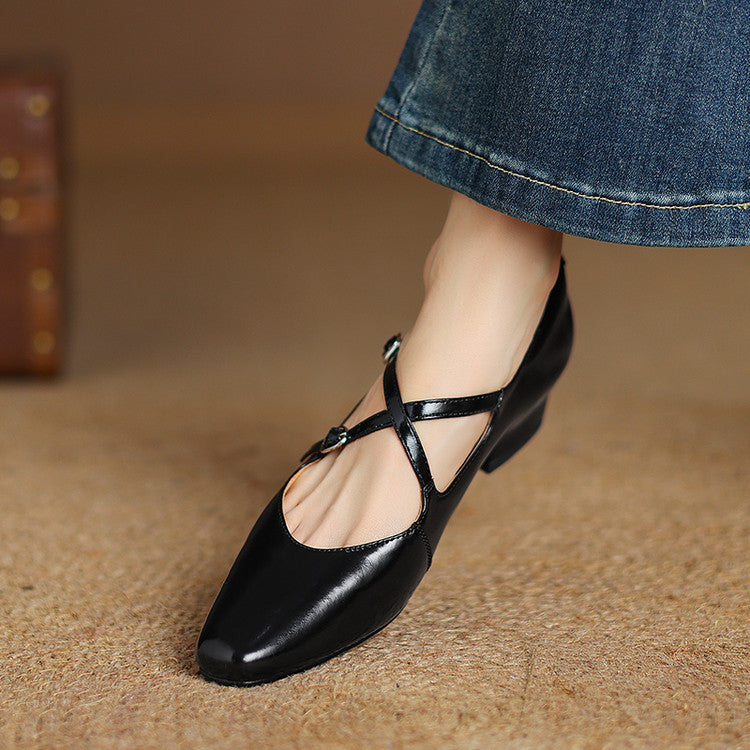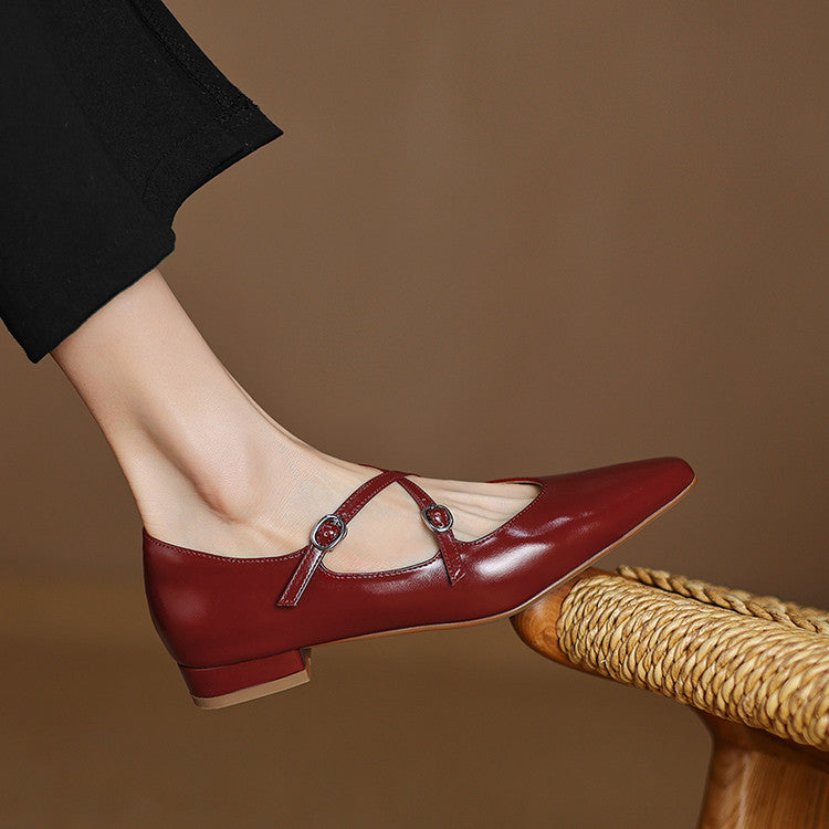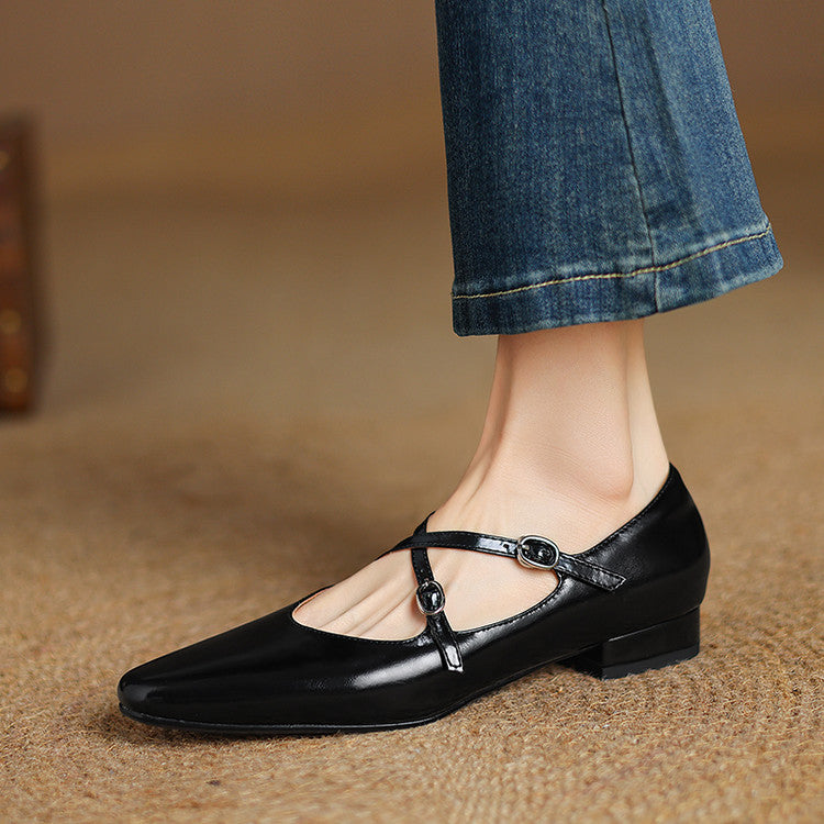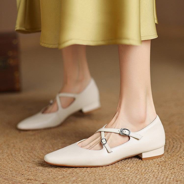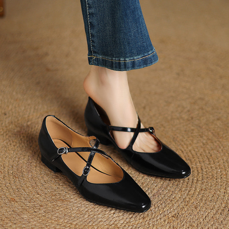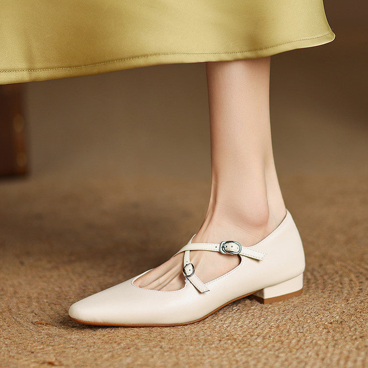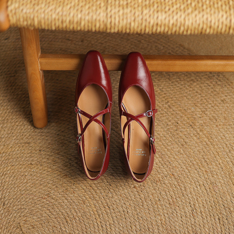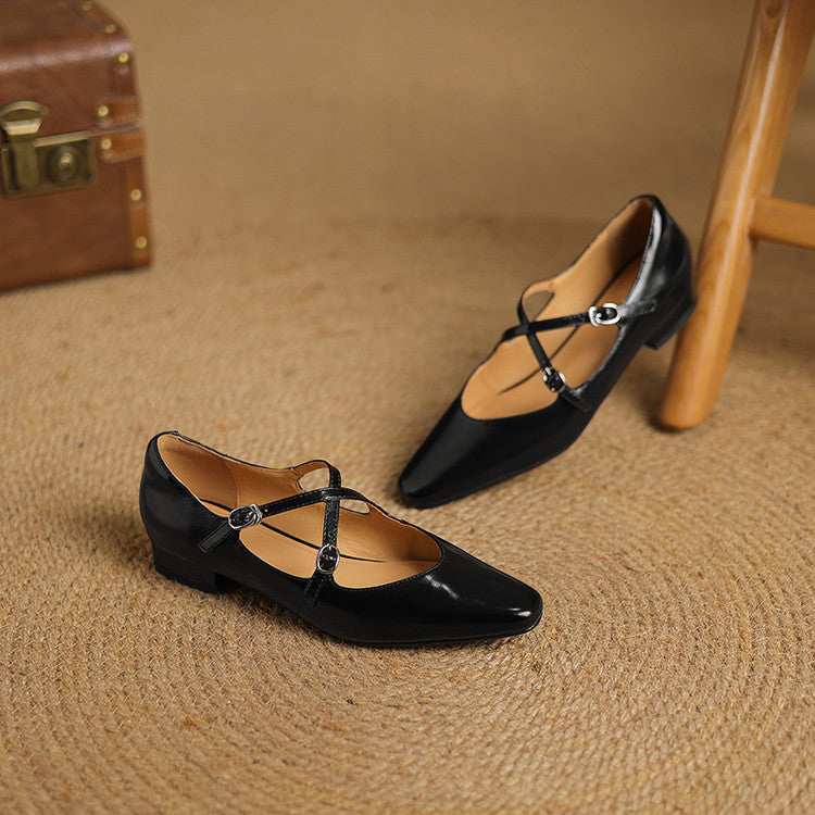 Women's Handmade Vintage Cross Strap Buckle With Elegant Low Heel Mary Jane Shoes