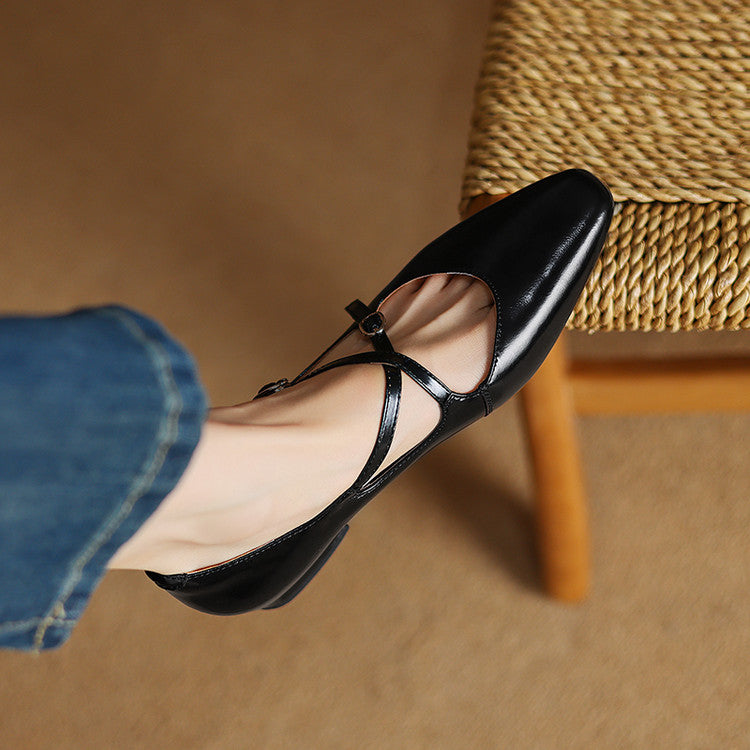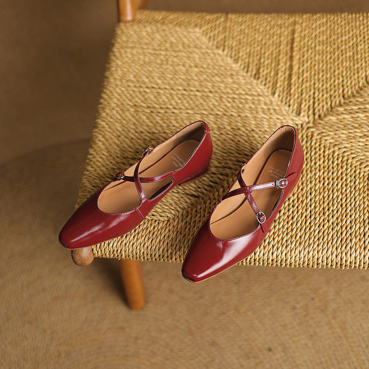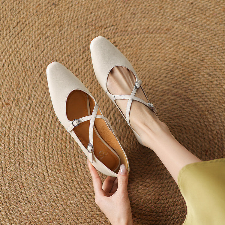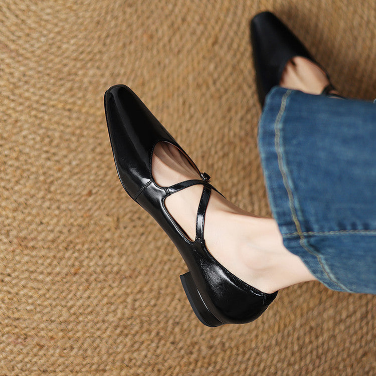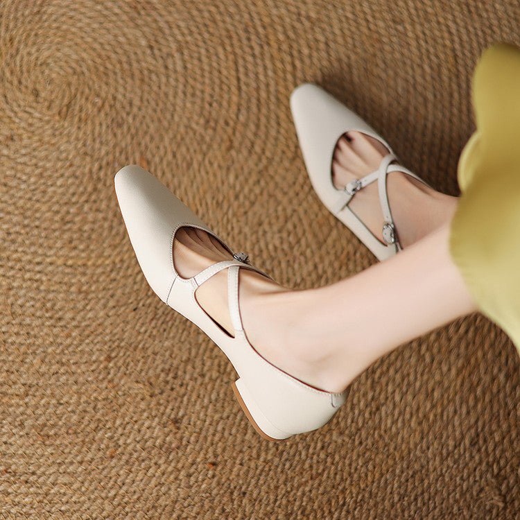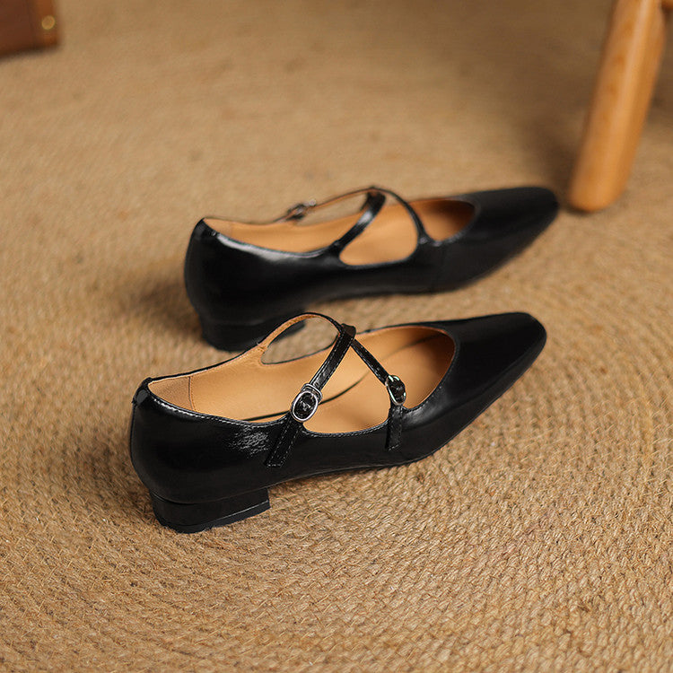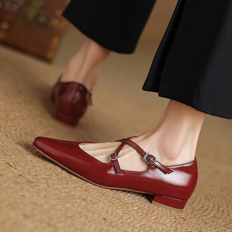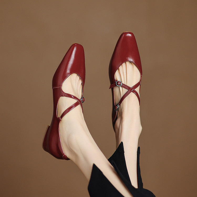 Women's Handmade Vintage Cross Strap Buckle With Elegant Low Heel Mary Jane Shoes