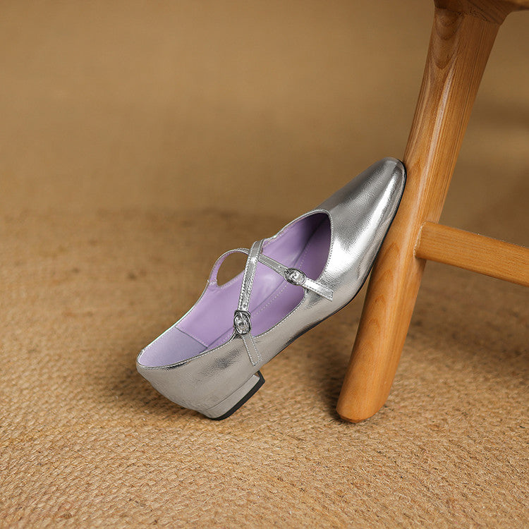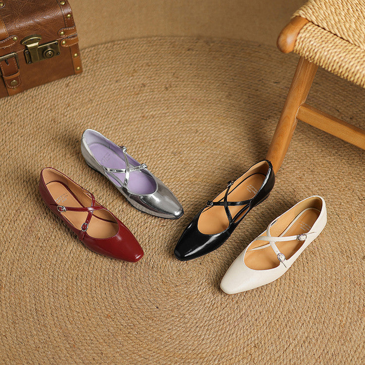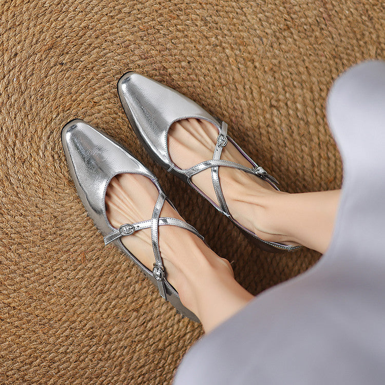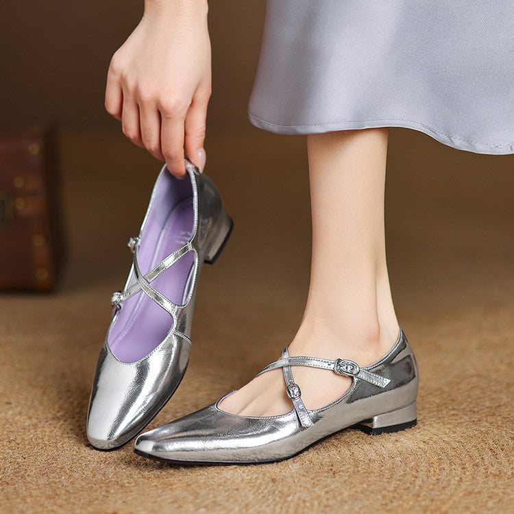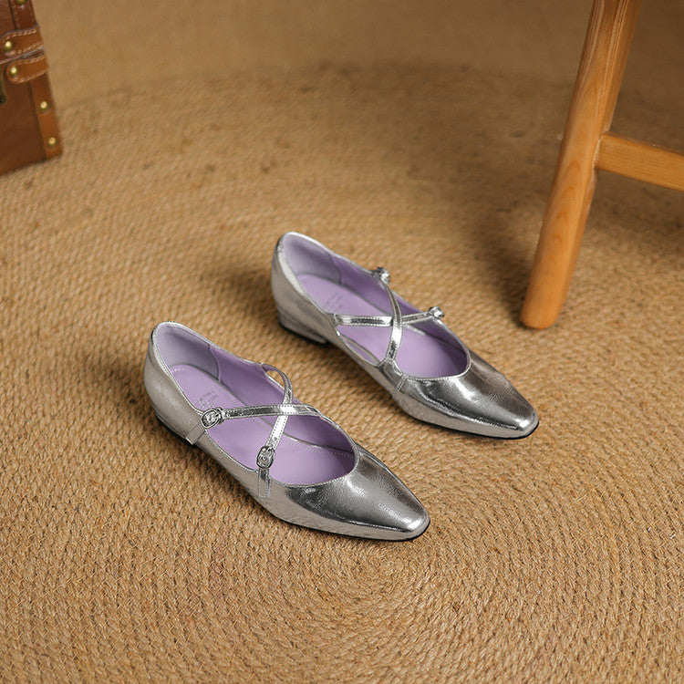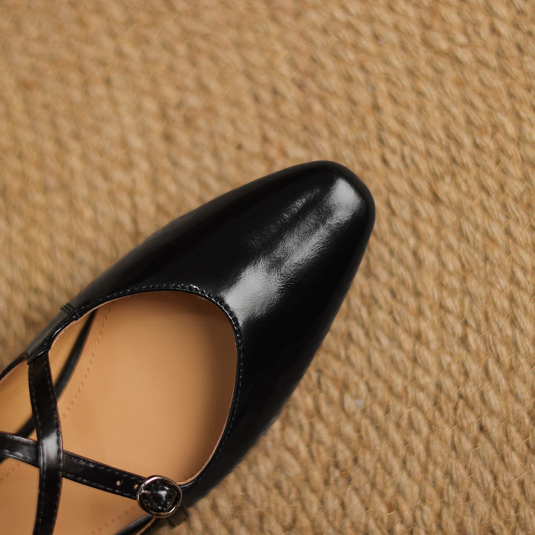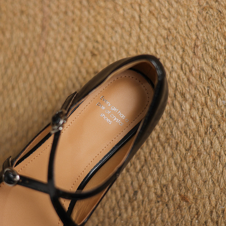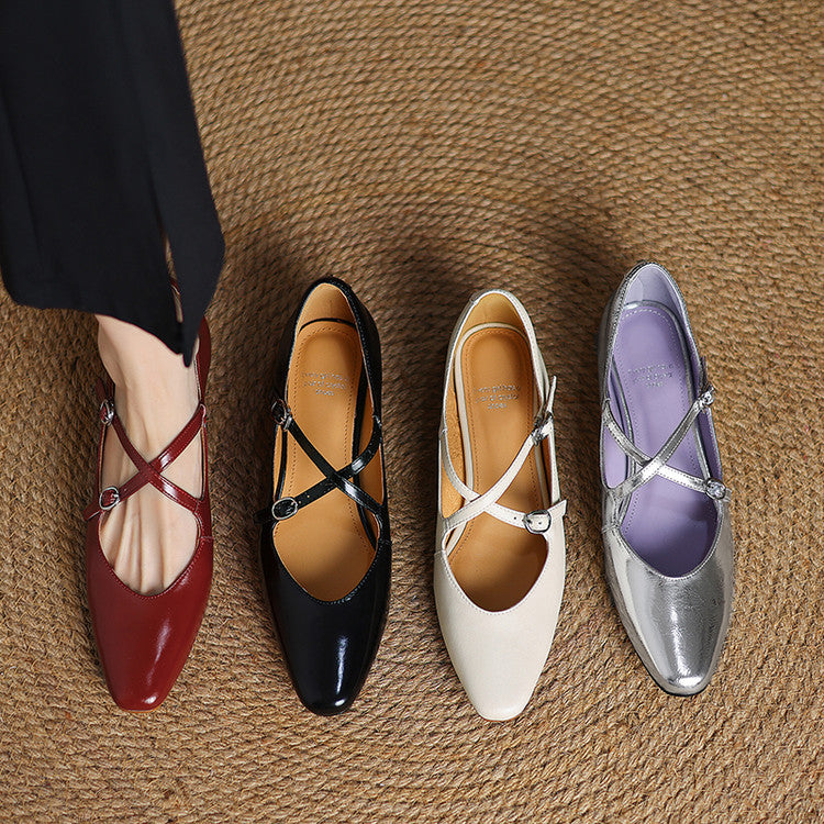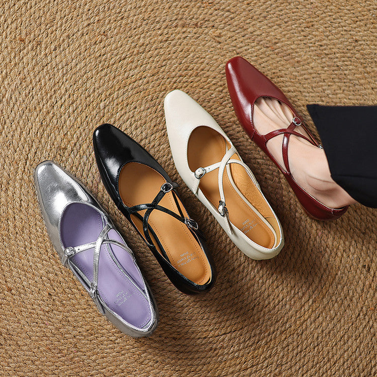 Women's Handmade Vintage Cross Strap Buckle With Elegant Low Heel Mary Jane Shoes
