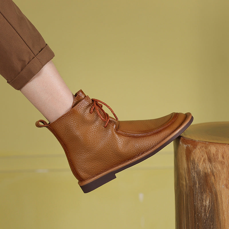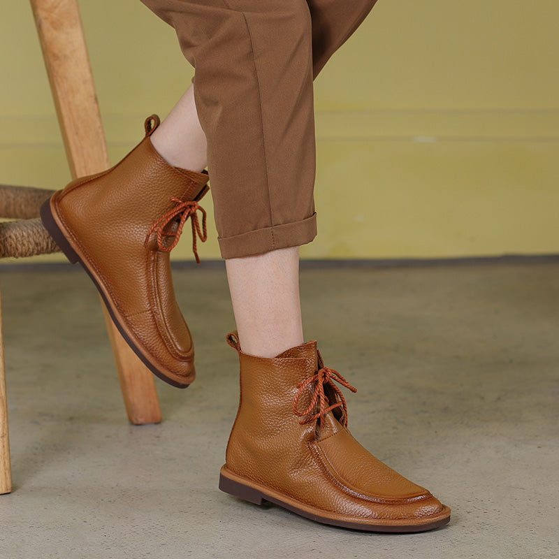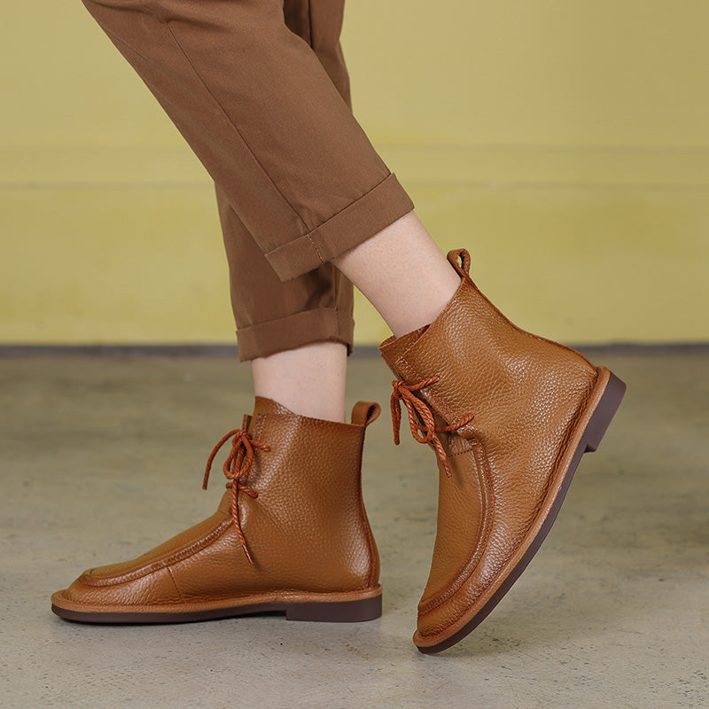 Women's Handmade Vintage Soft Leather Flat Lace-Up Ankle Boots Comfort Fit