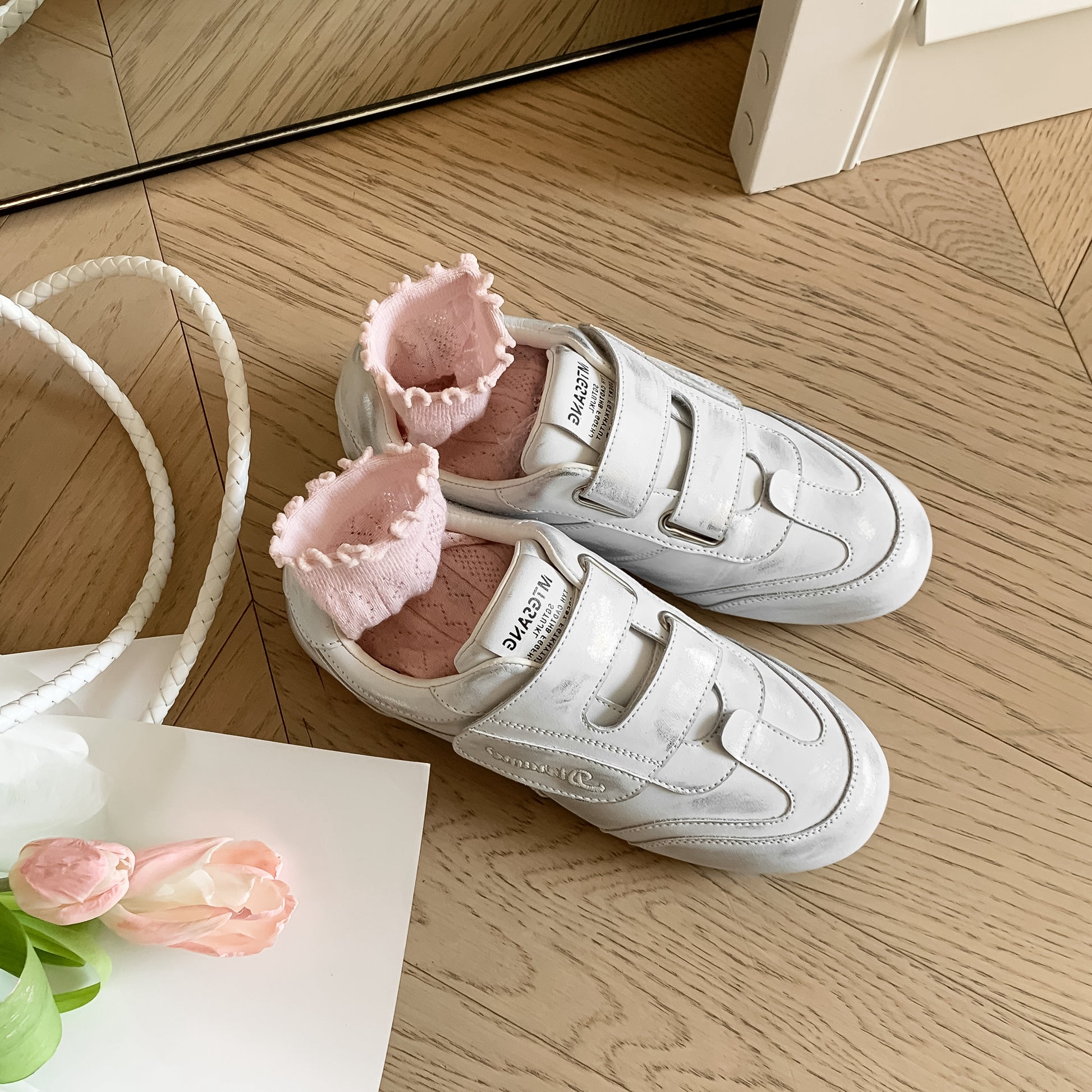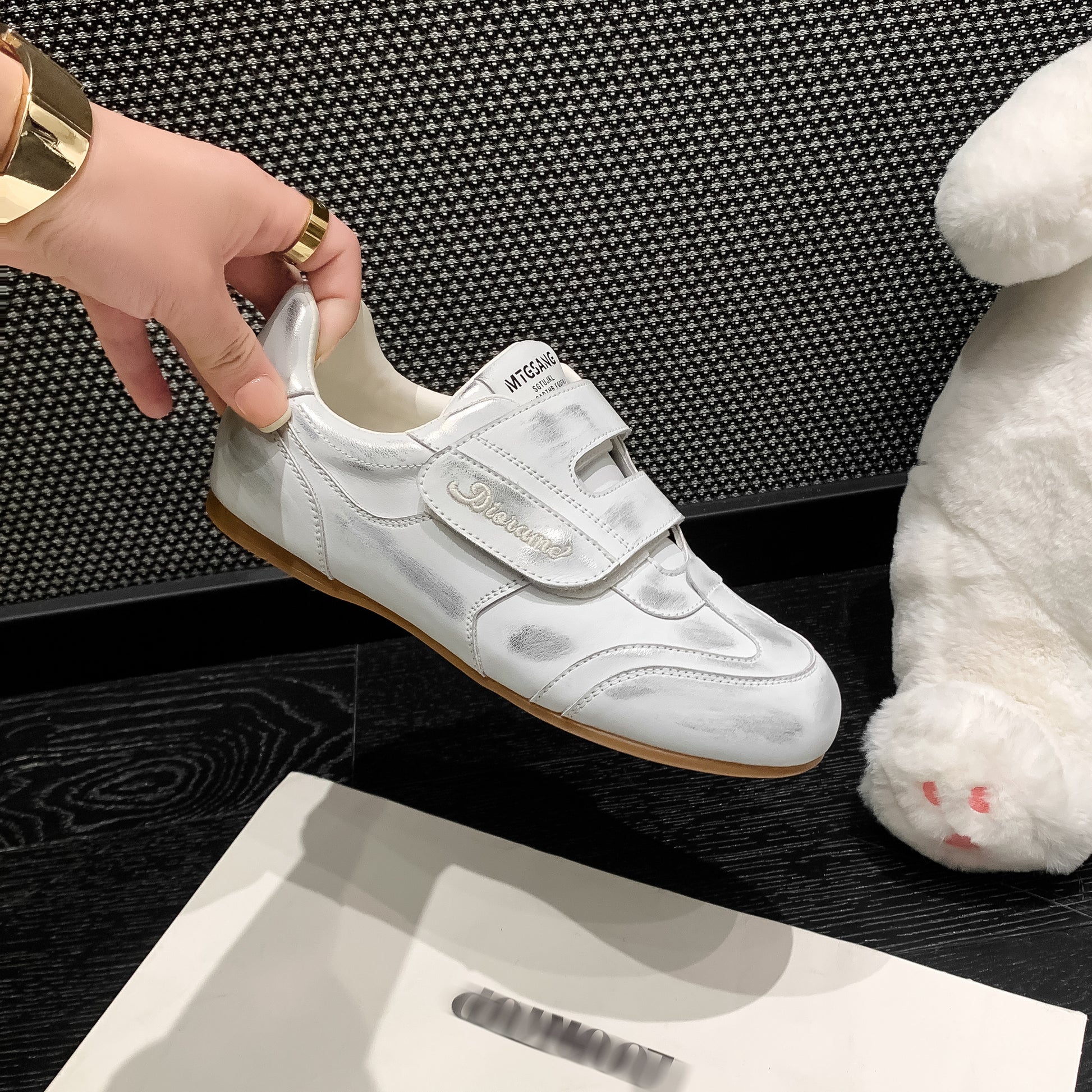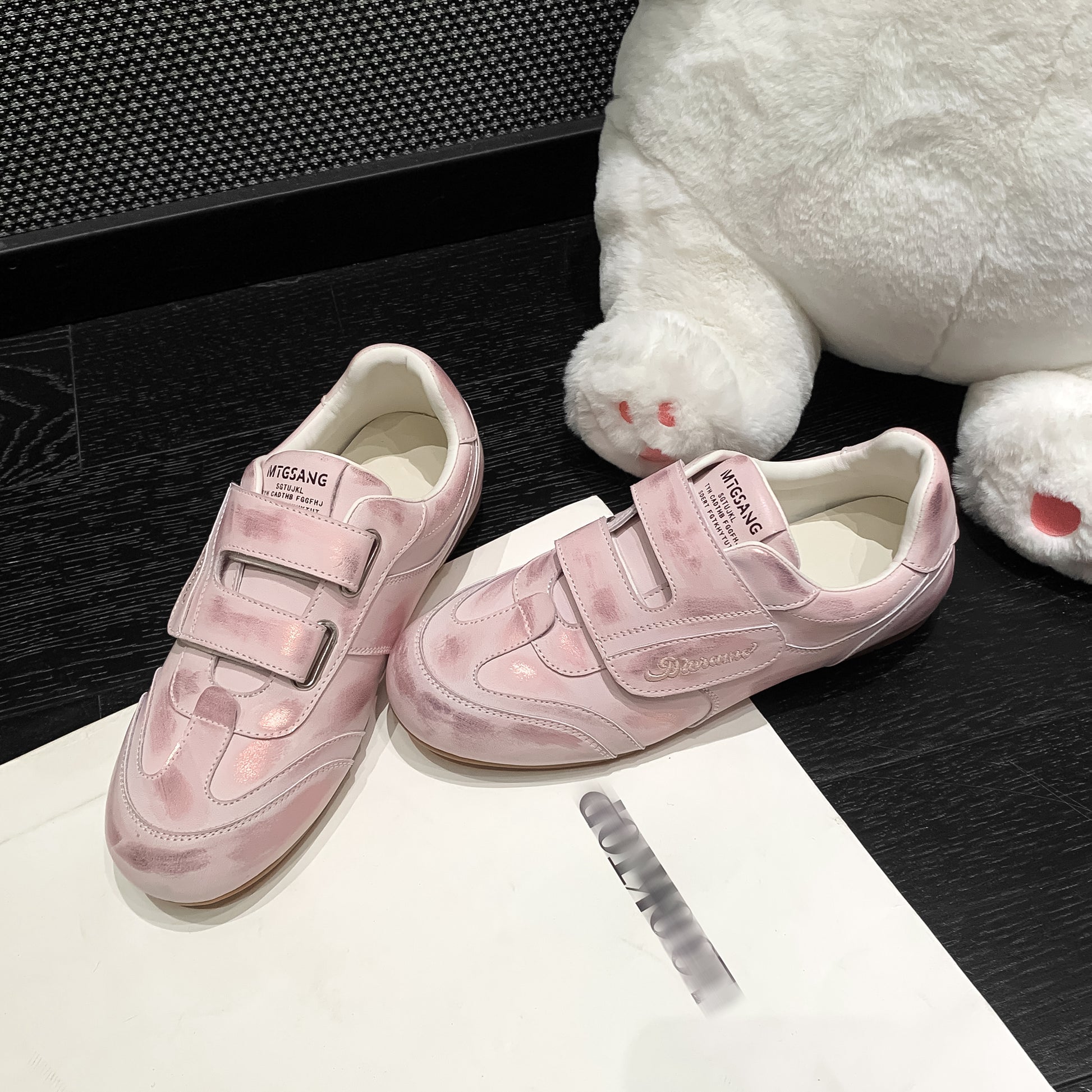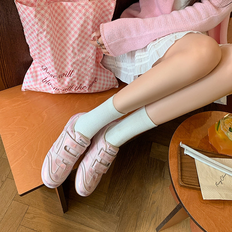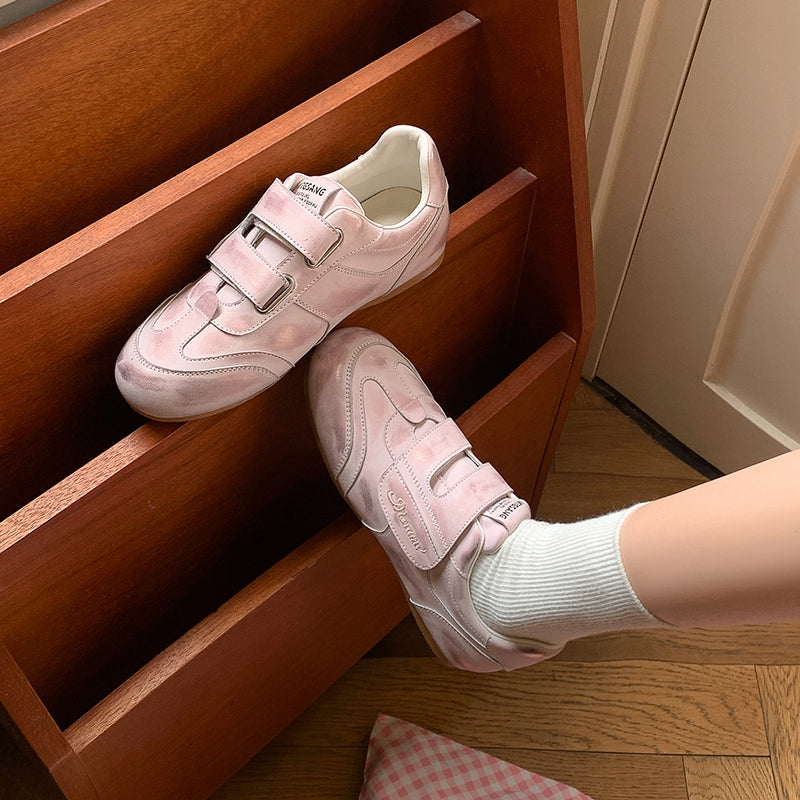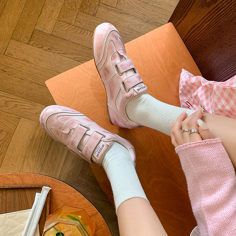 Stay comfy and stylish with these hidden wedge sneakers. Made from soft cowhide leather with a breathable pigskin insole, they feature a subtle 2cm internal lift plus 1cm sole for added height. The Velcro closure makes them easy to slip on, while the rubber outsole offers all-day support. Available in Pink, Gold, and Silver—perfect for casual looks with a sporty twist.