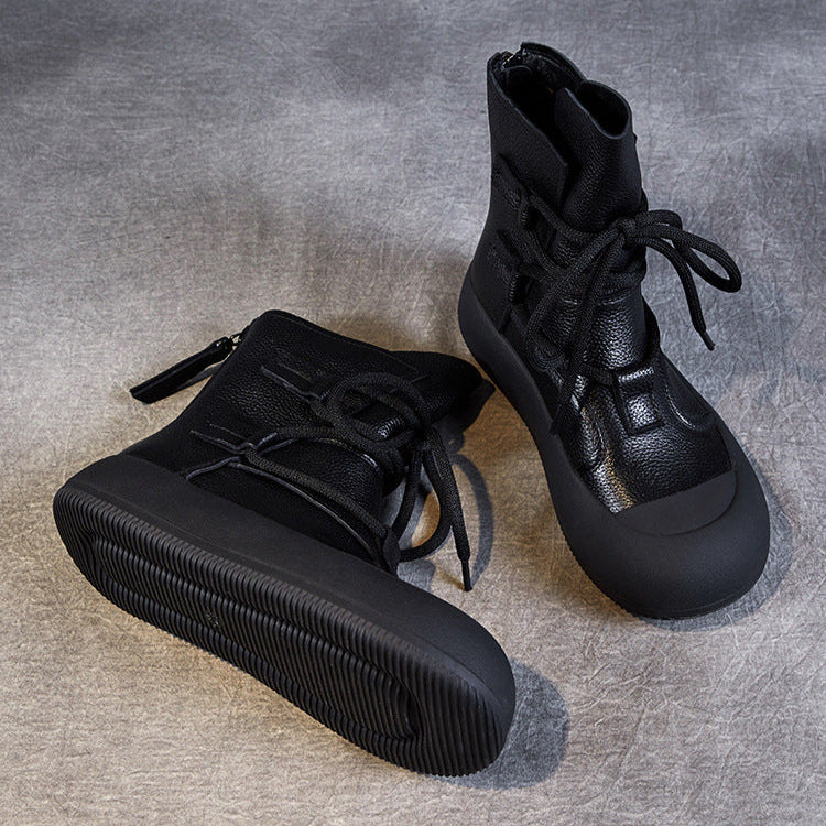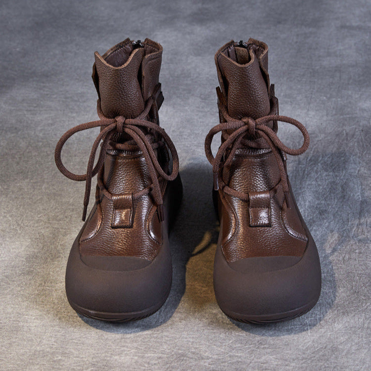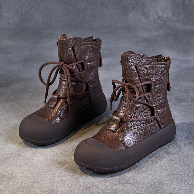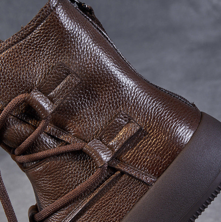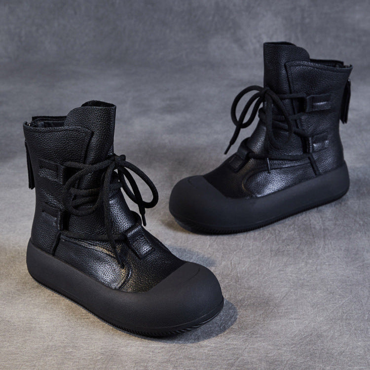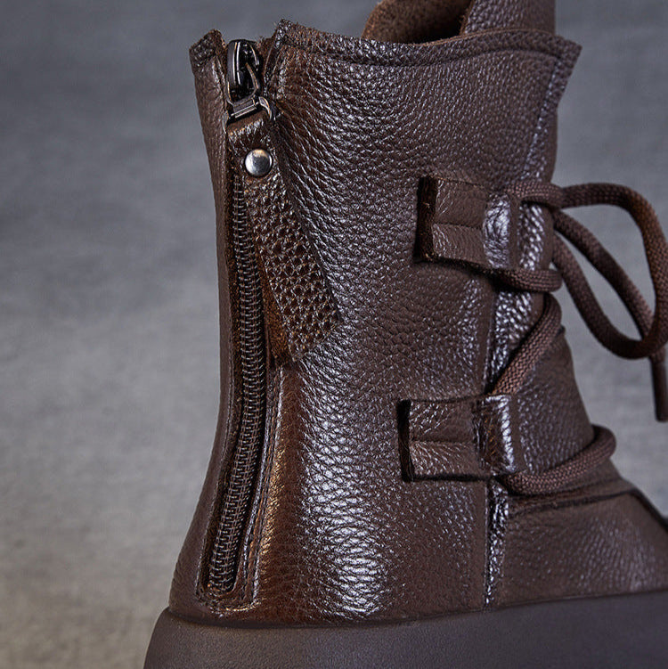 Women's Lace-Up Platform Boots – Genuine Leather Casual Back Zipper Boots