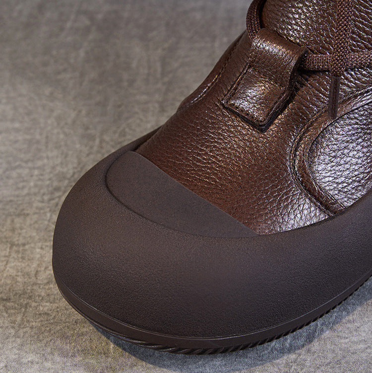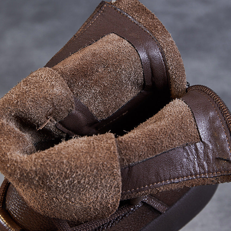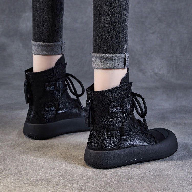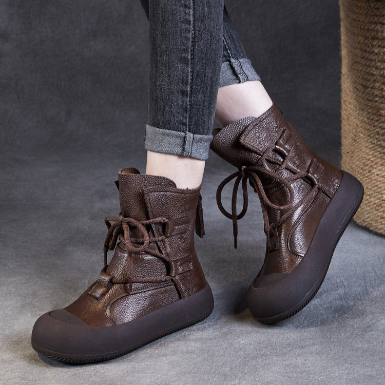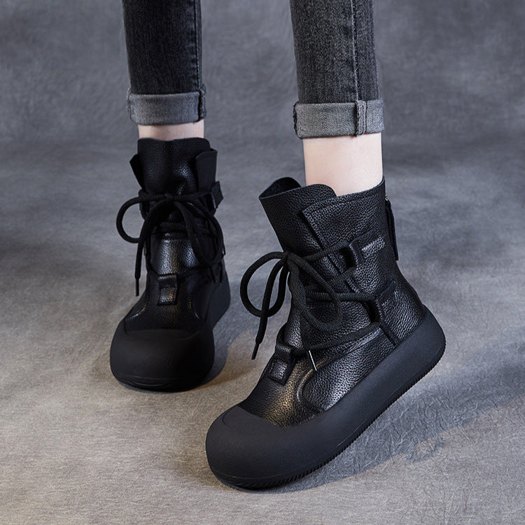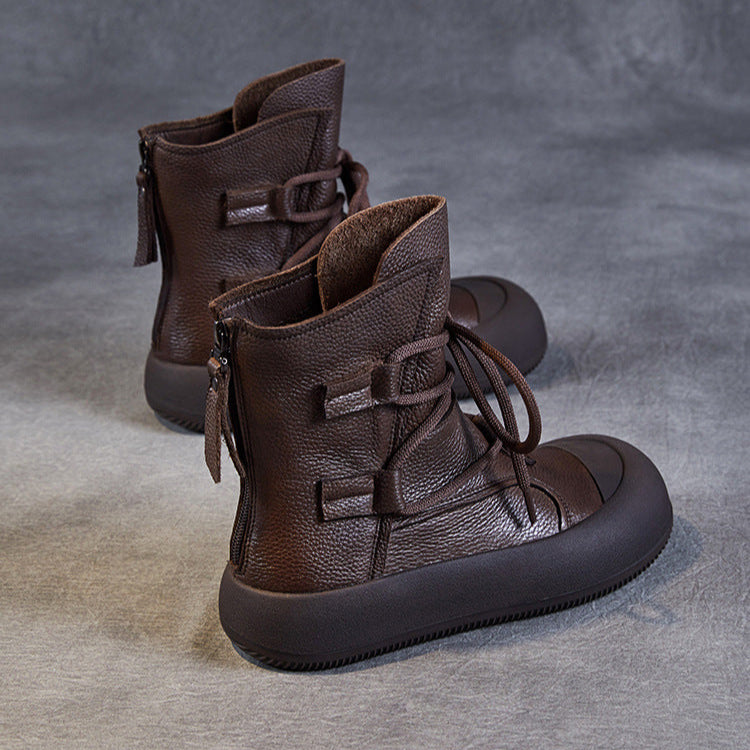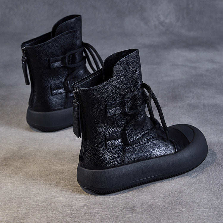 Women's Lace-Up Platform Boots – Genuine Leather Casual Back Zipper Boots
