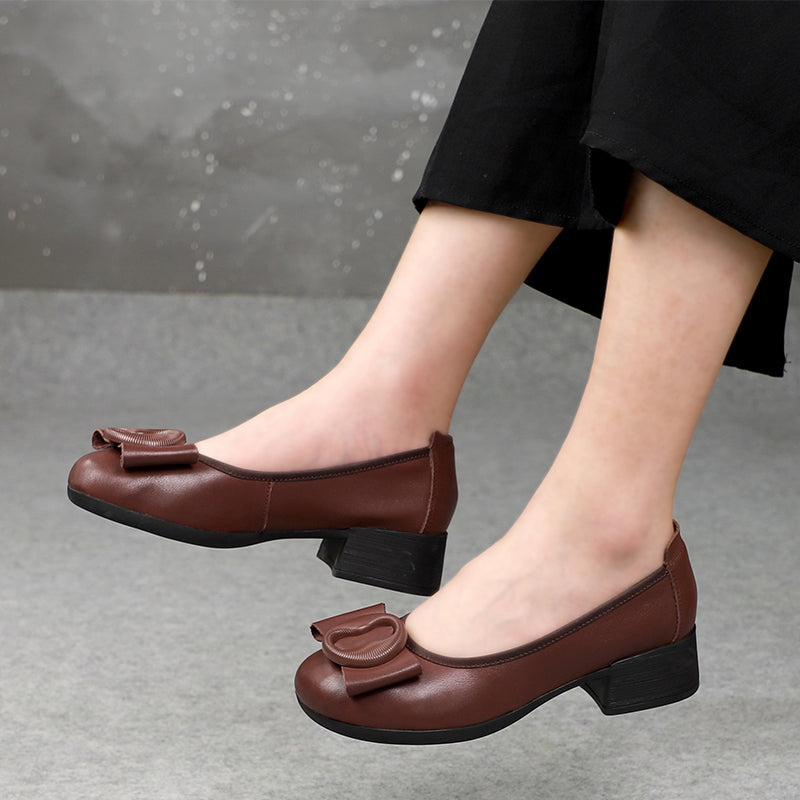 Elevate your style and boost your confidence with our Women's Leather Bow Ballet Low Heel Block Pump. Crafted with genuine leather and a charming bow detail, these pumps offer both comfort and elegance. Perfect for work or any special occasion, these pumps will add a touch of sophistication to any outfit.