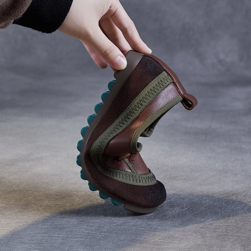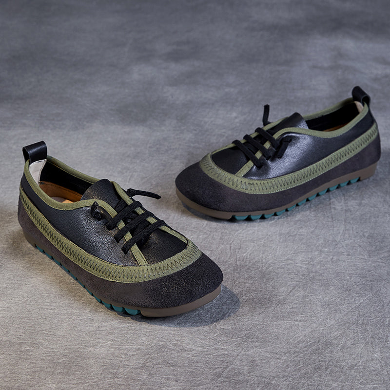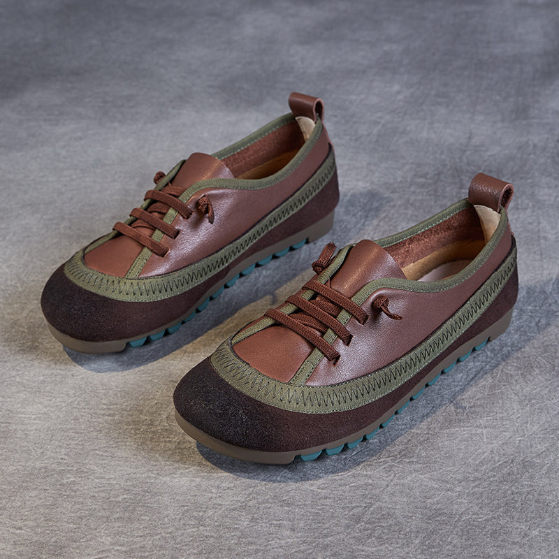 Women's Leather Casual Daily Walking Lace Up Flat Shoes