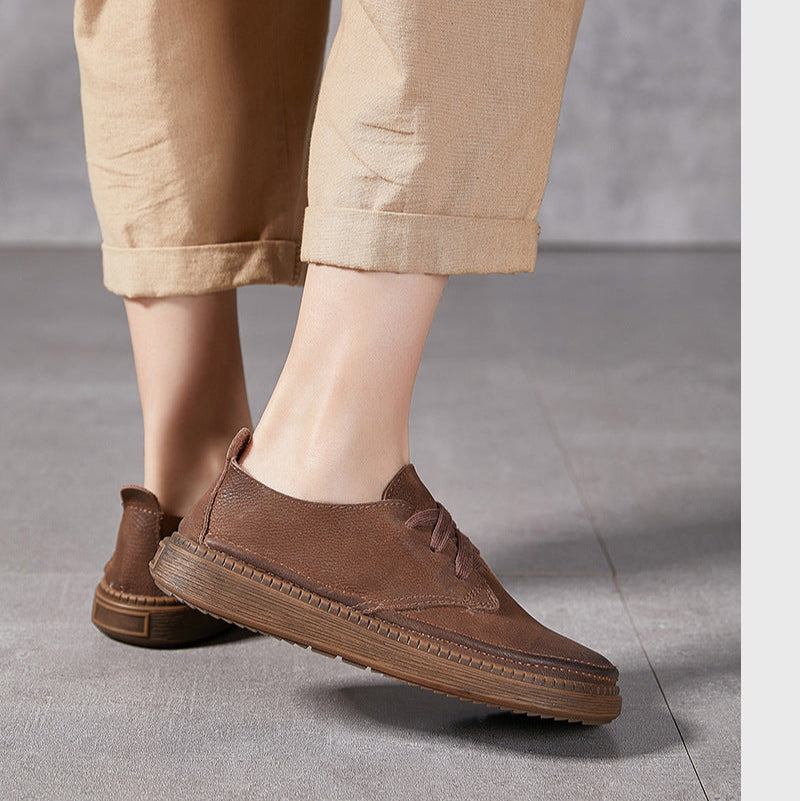 Indulge in comfort and style with our Women's Leather Casual Lace-up Flat Shoes! Crafted with genuine leather, these flats provide lasting durability. The lace-up design adds a touch of elegance, making them perfect for any occasion. Walk confidently and fashionably with these versatile shoes.
