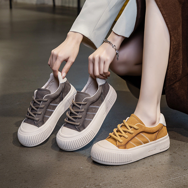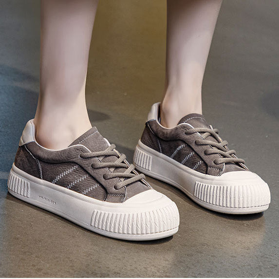 Women's Leather Casual Platform Walking Shoes Tennis Shoes