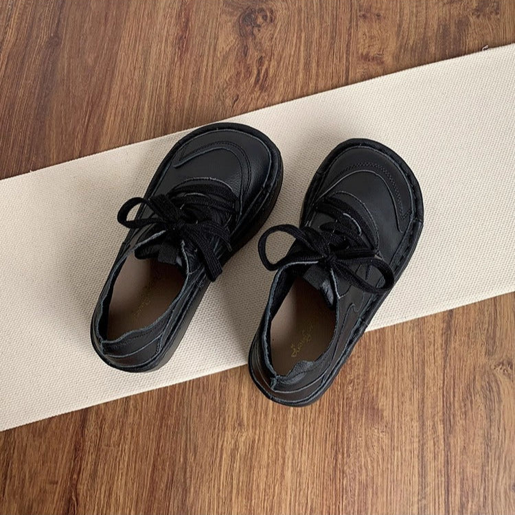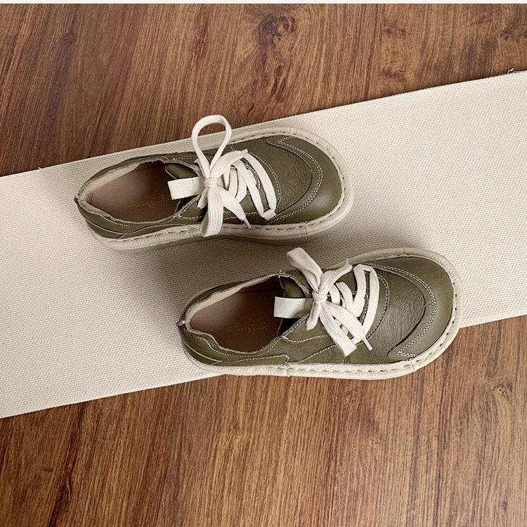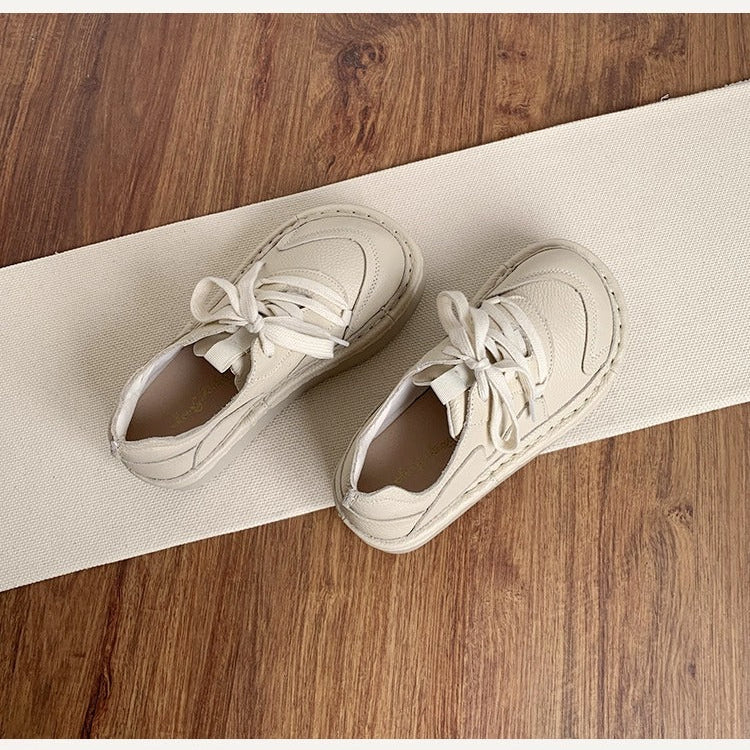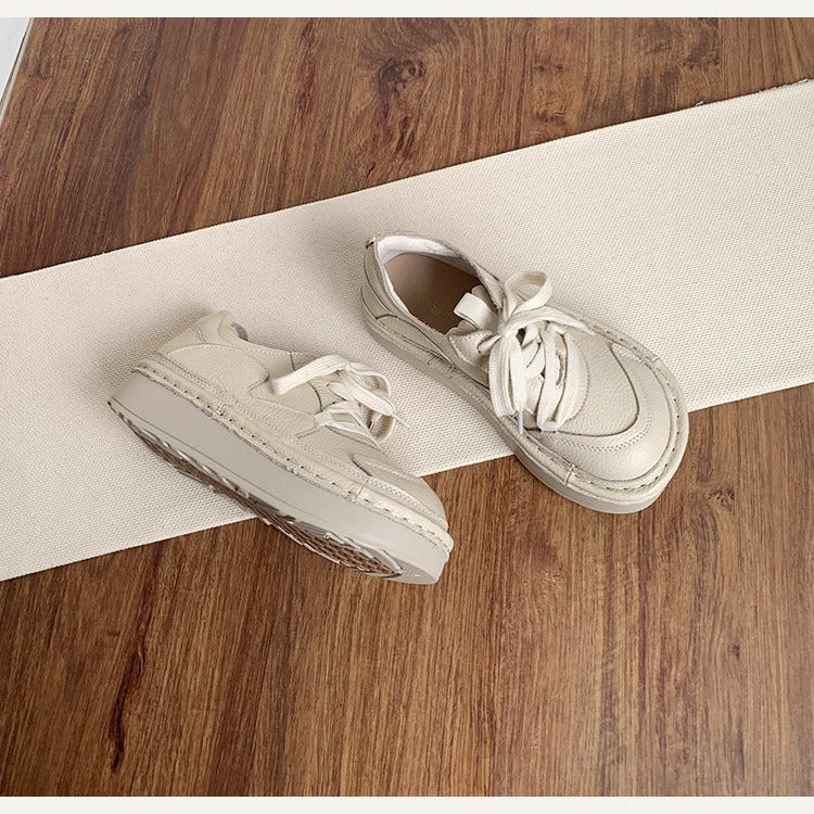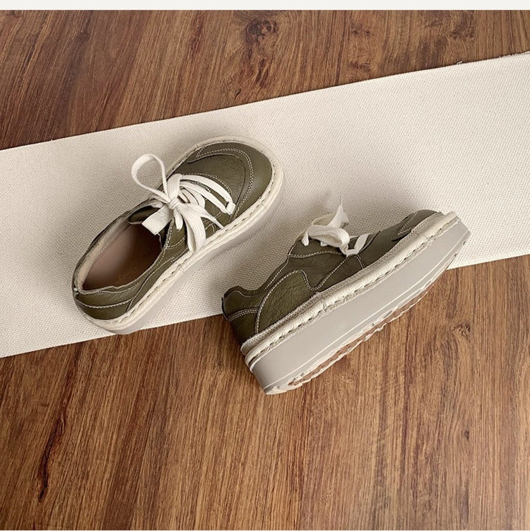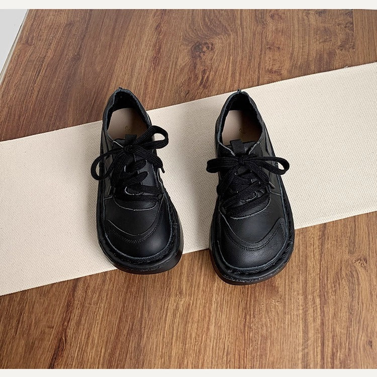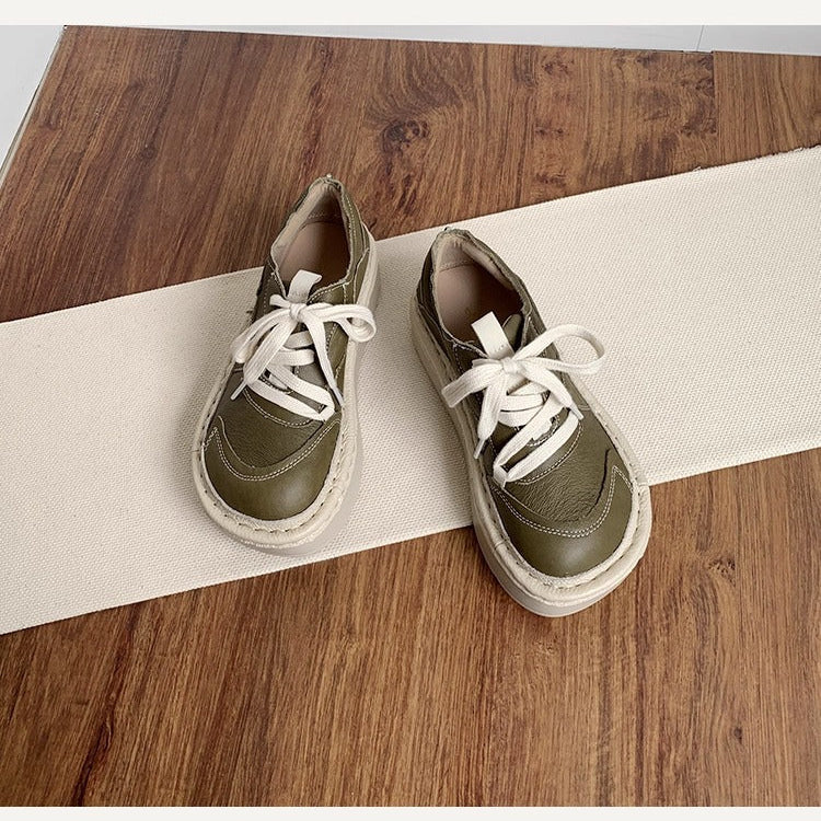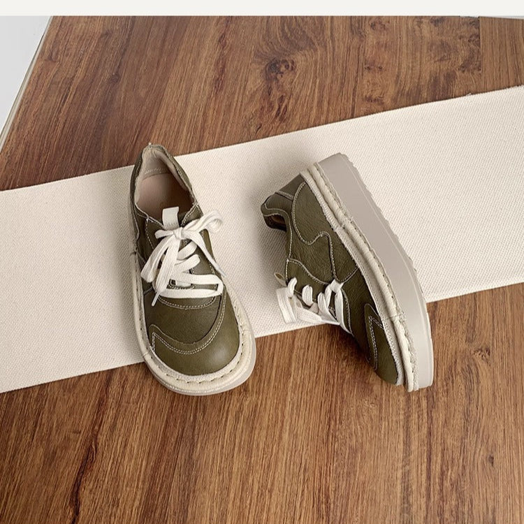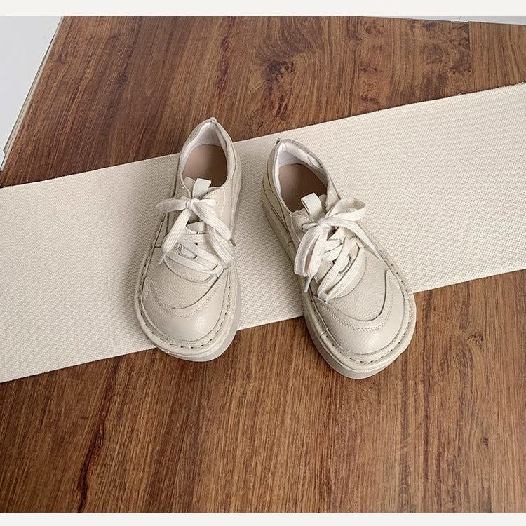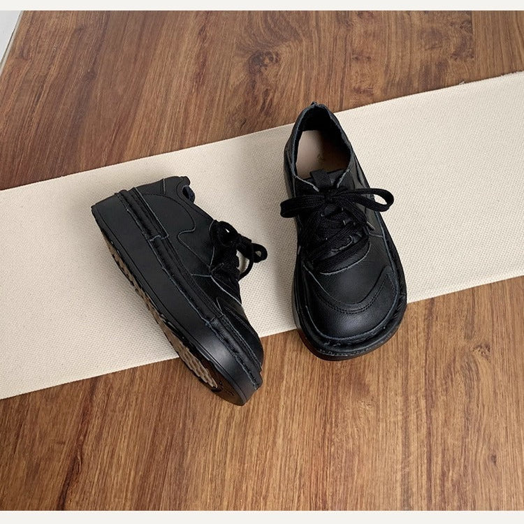 Women's Leather Chunky Platform Lace-Up Casual Shoes – Ugly-Cute Style
