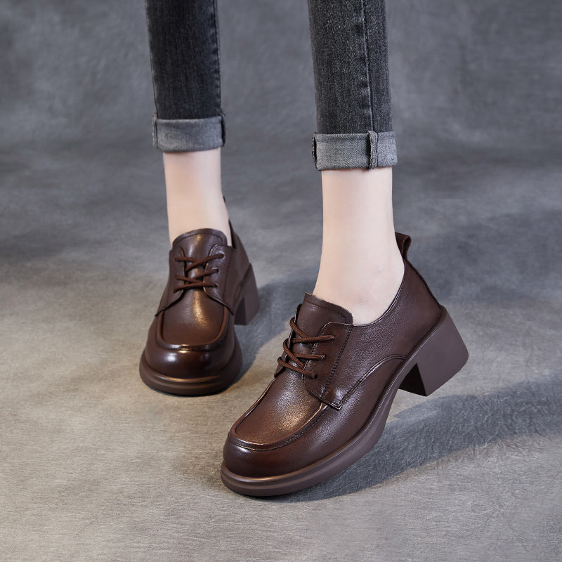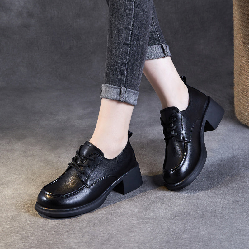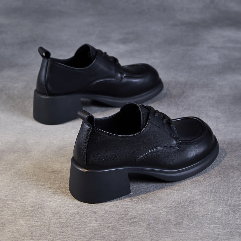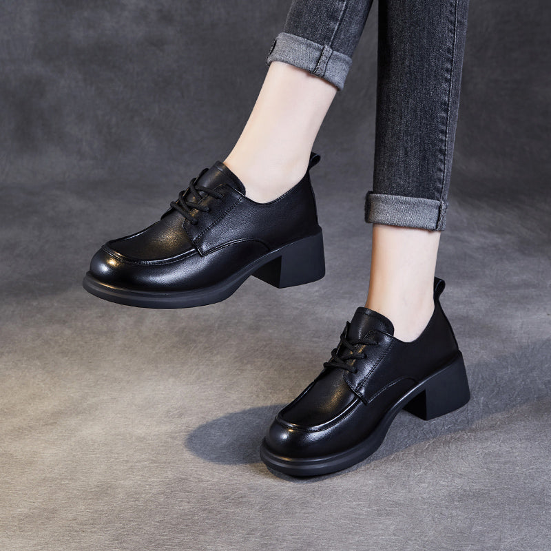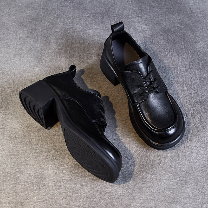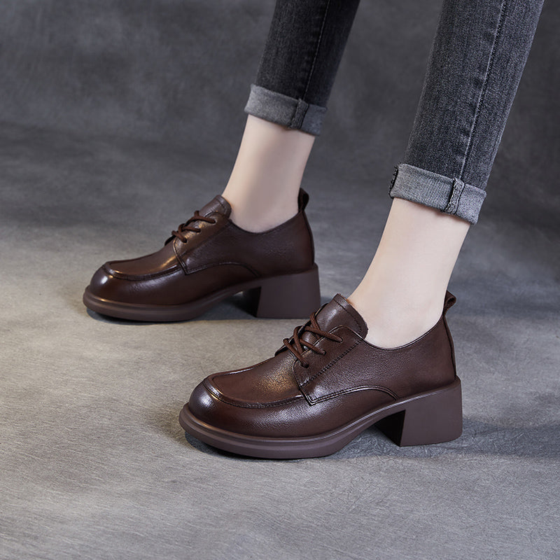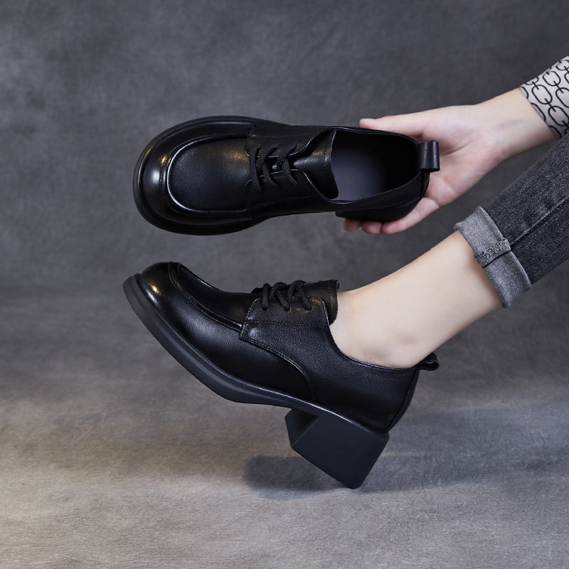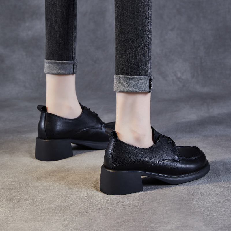 Women's Leather Comfortable Low Heel Block Oxford Shoes